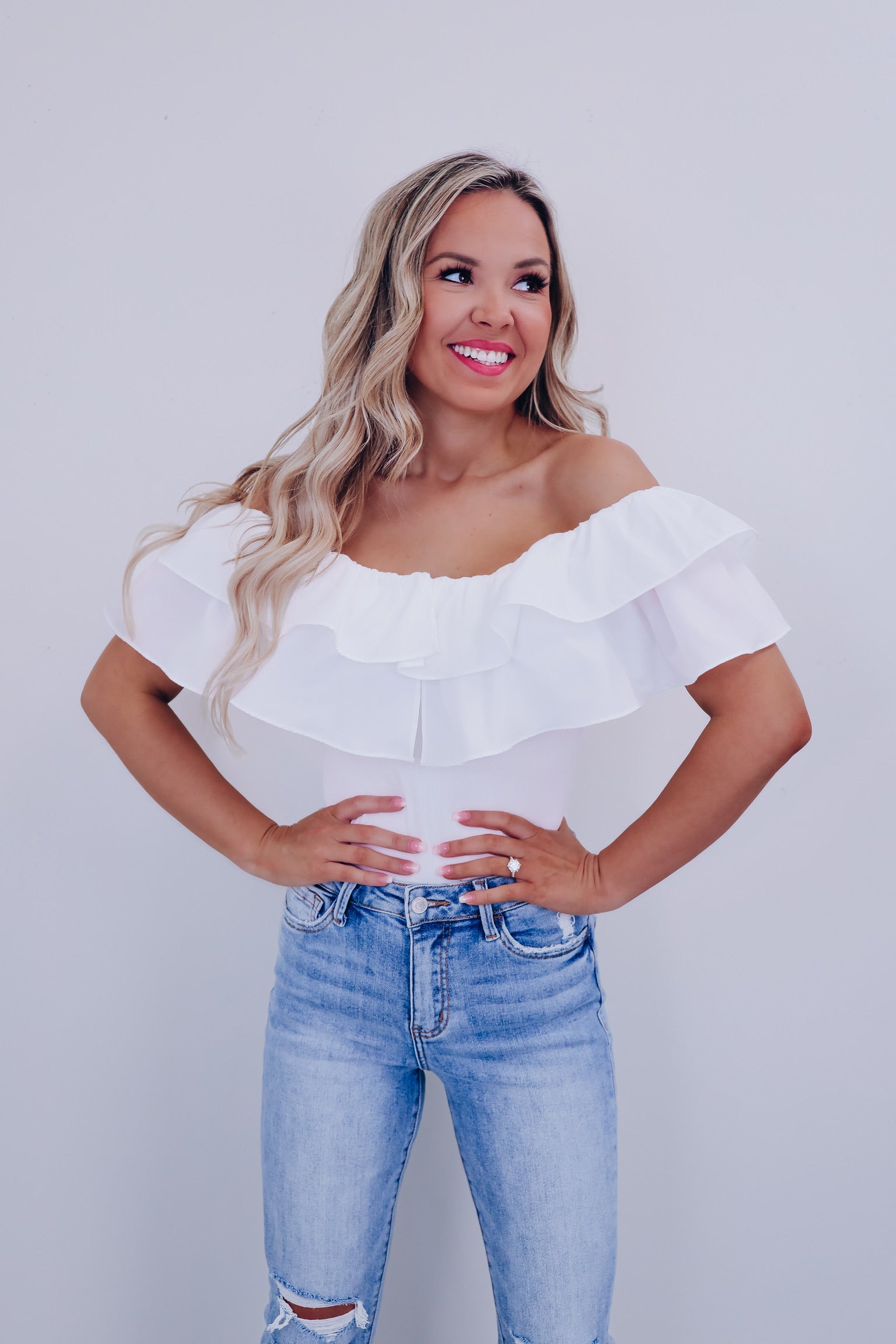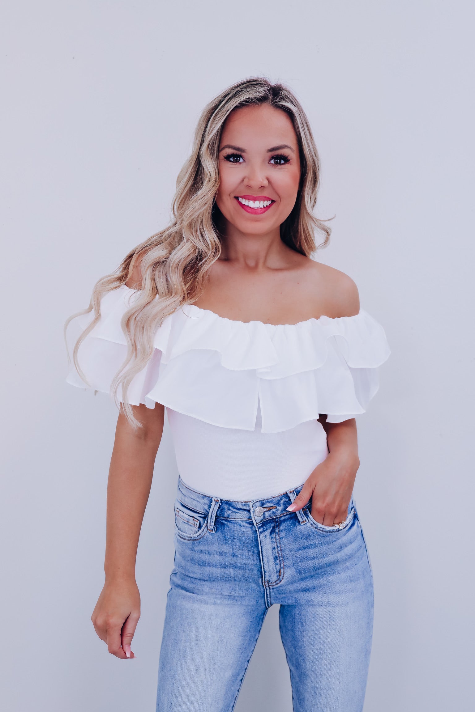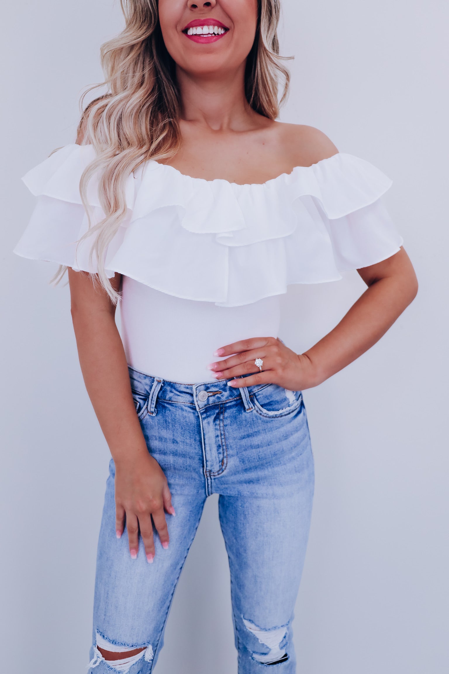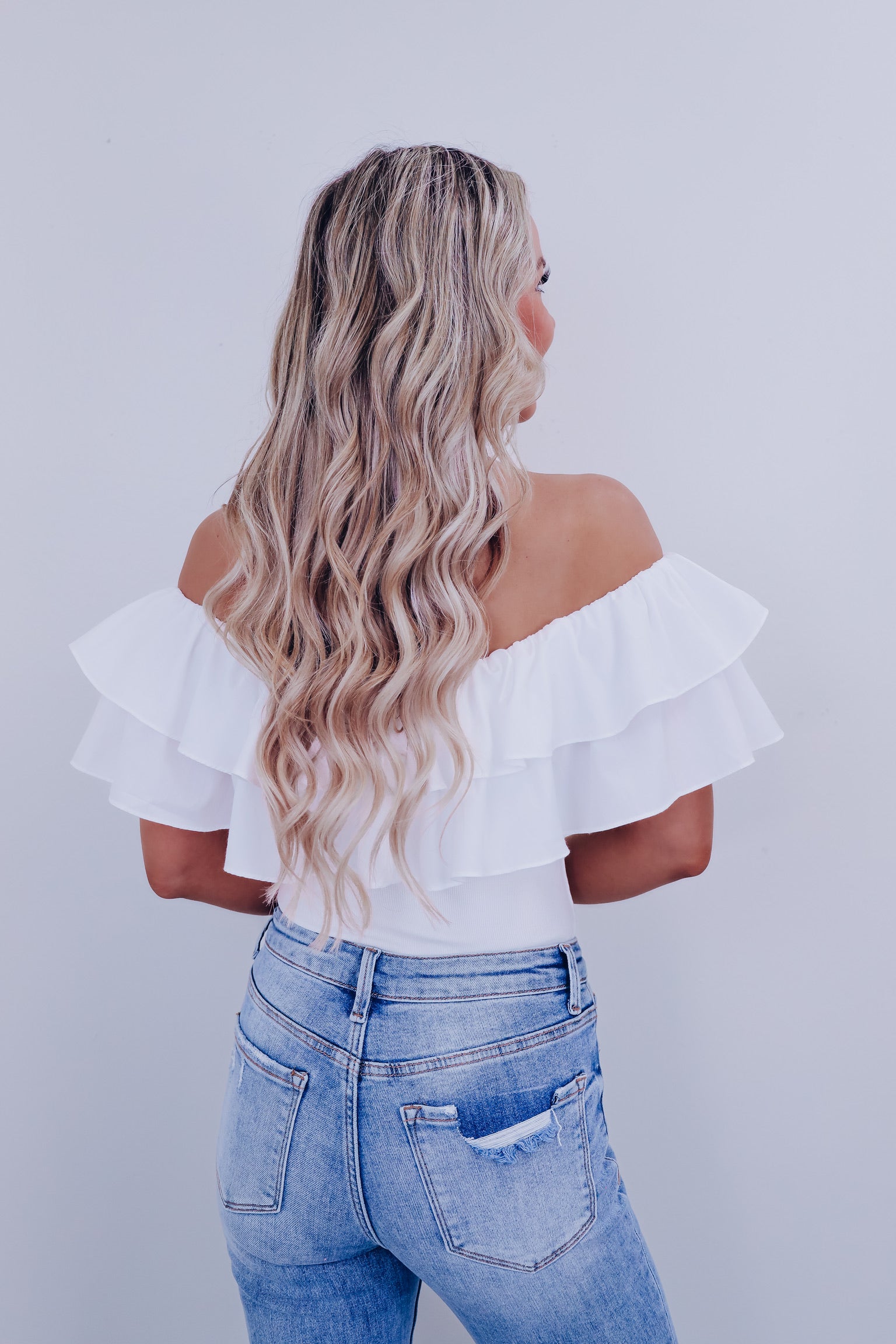 Radiant Ruffled Off Shoulder Bodysuit - White