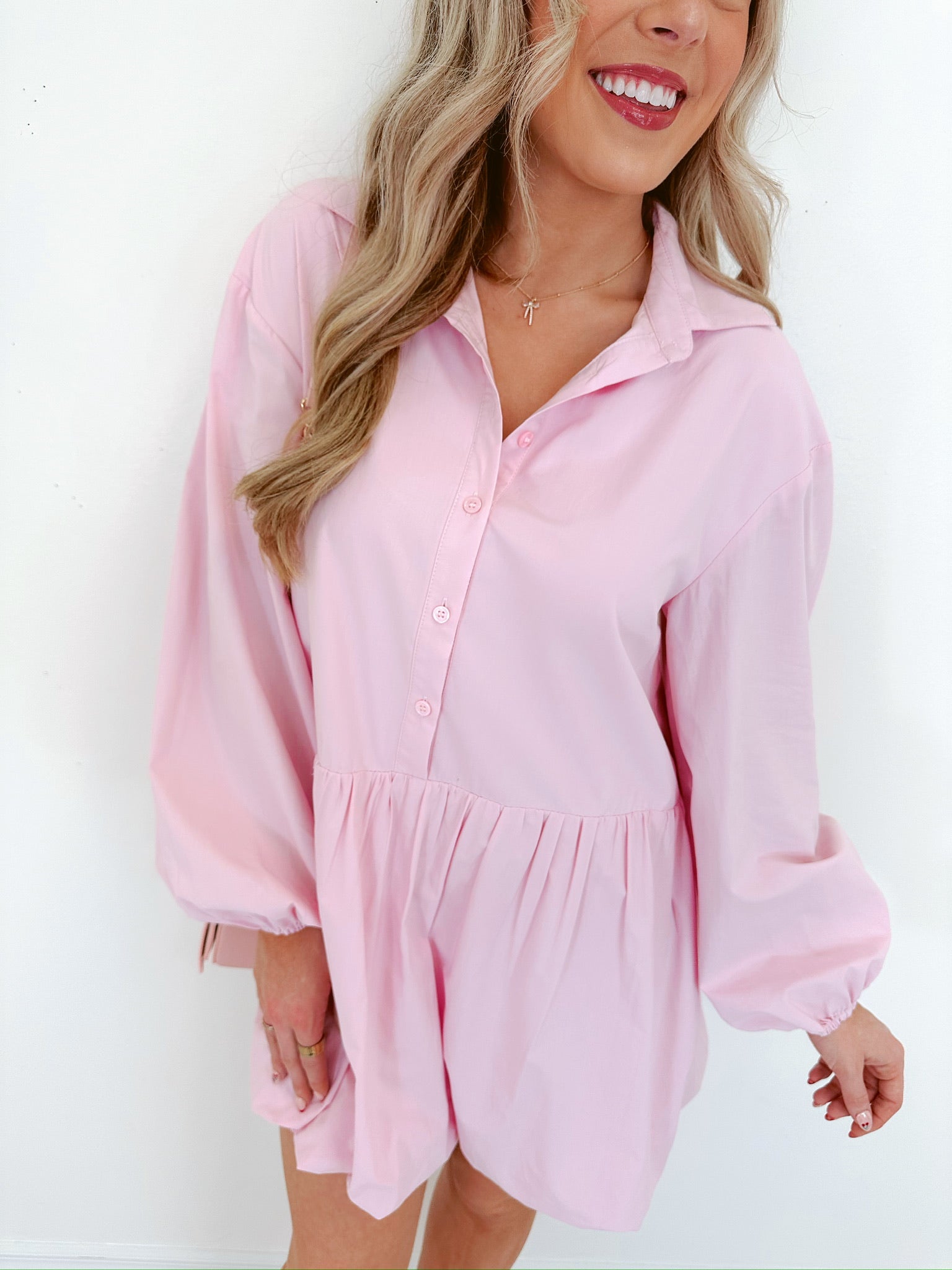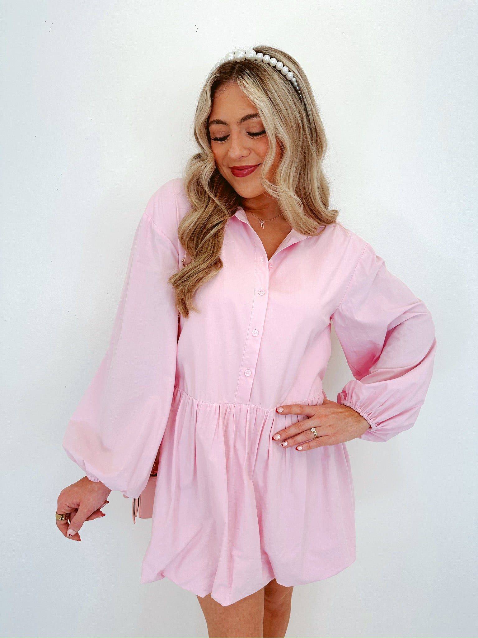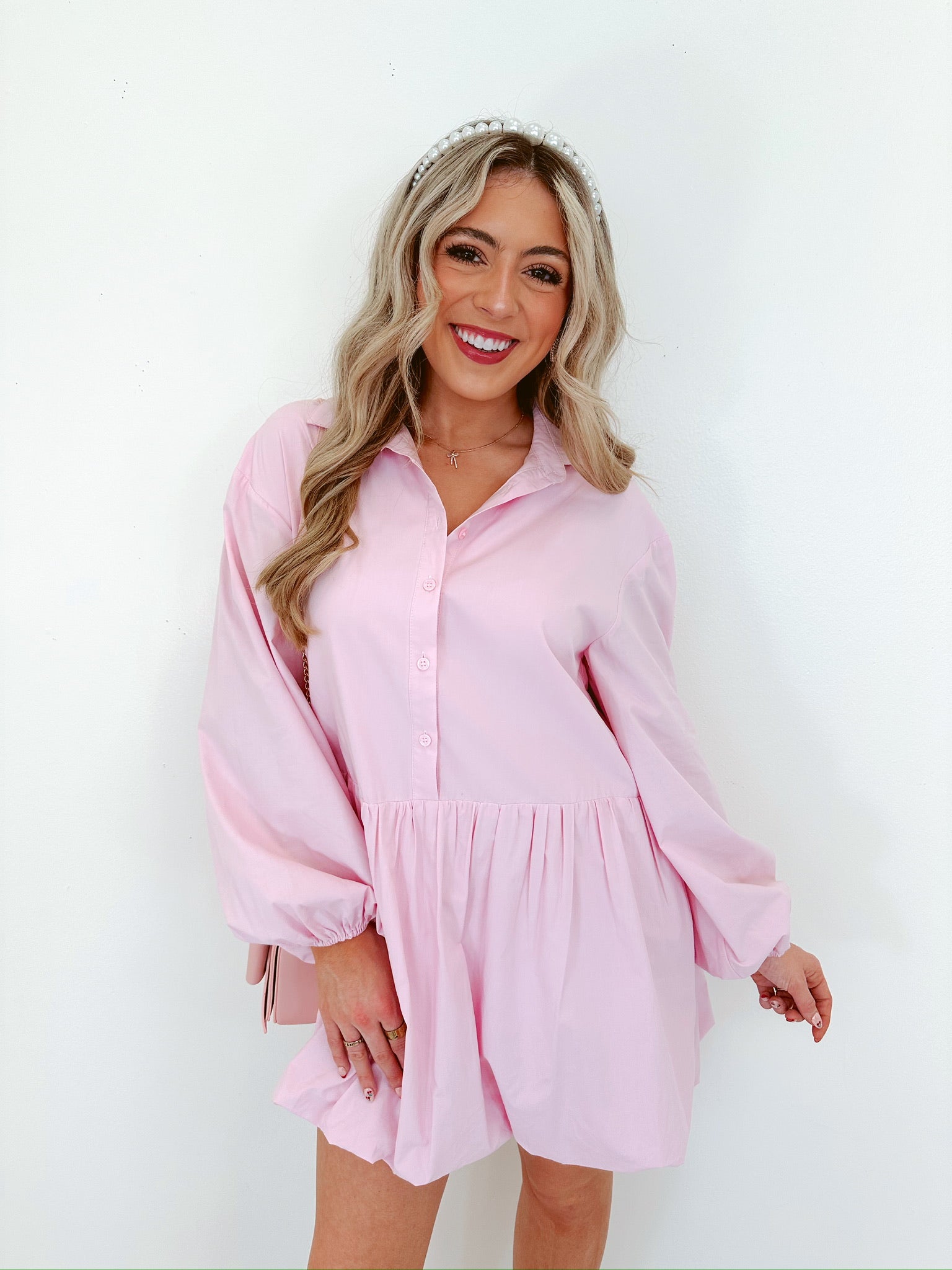 Blissful Sophistication Bubble Hem Mini Dress - Light Pink