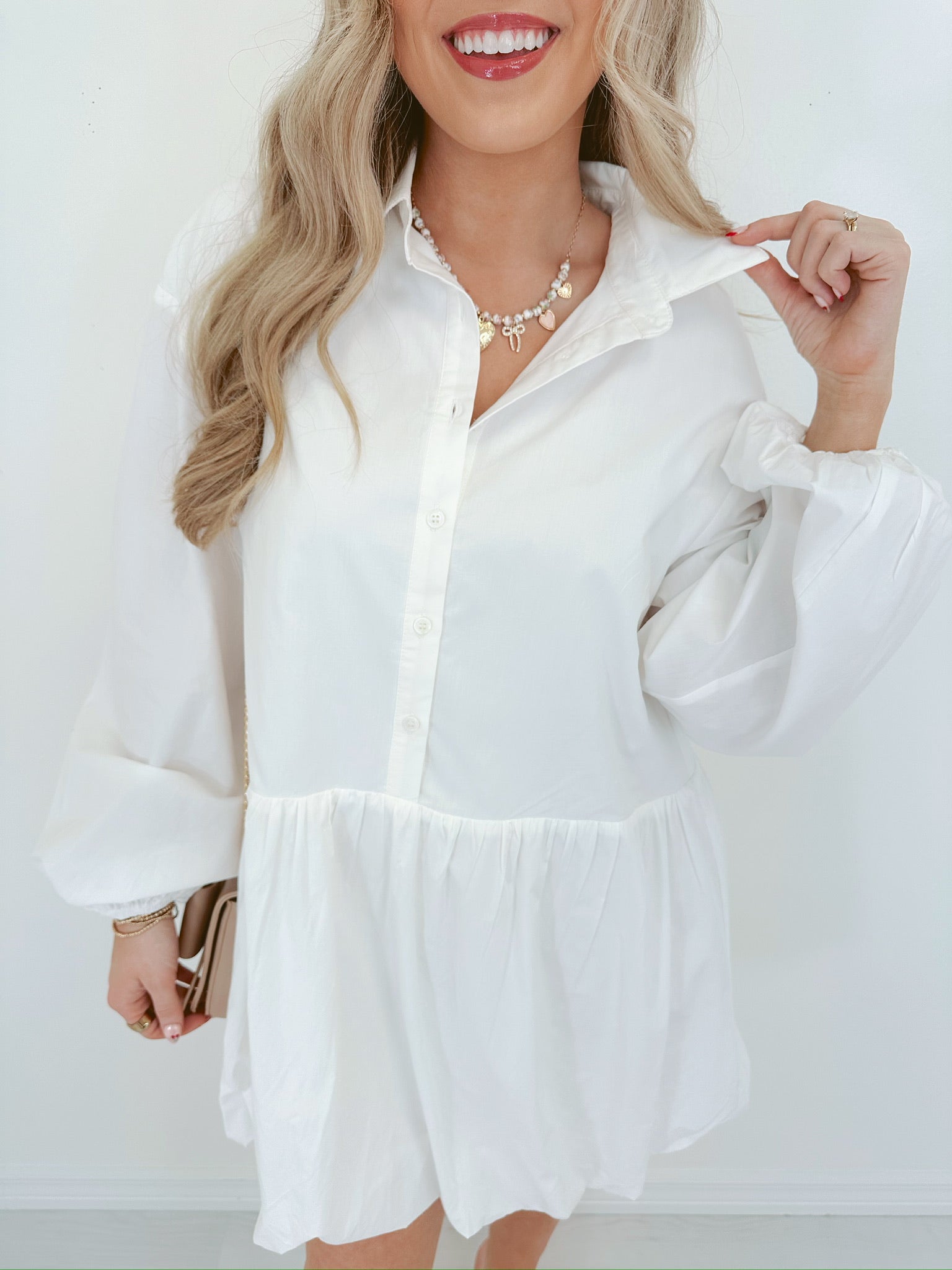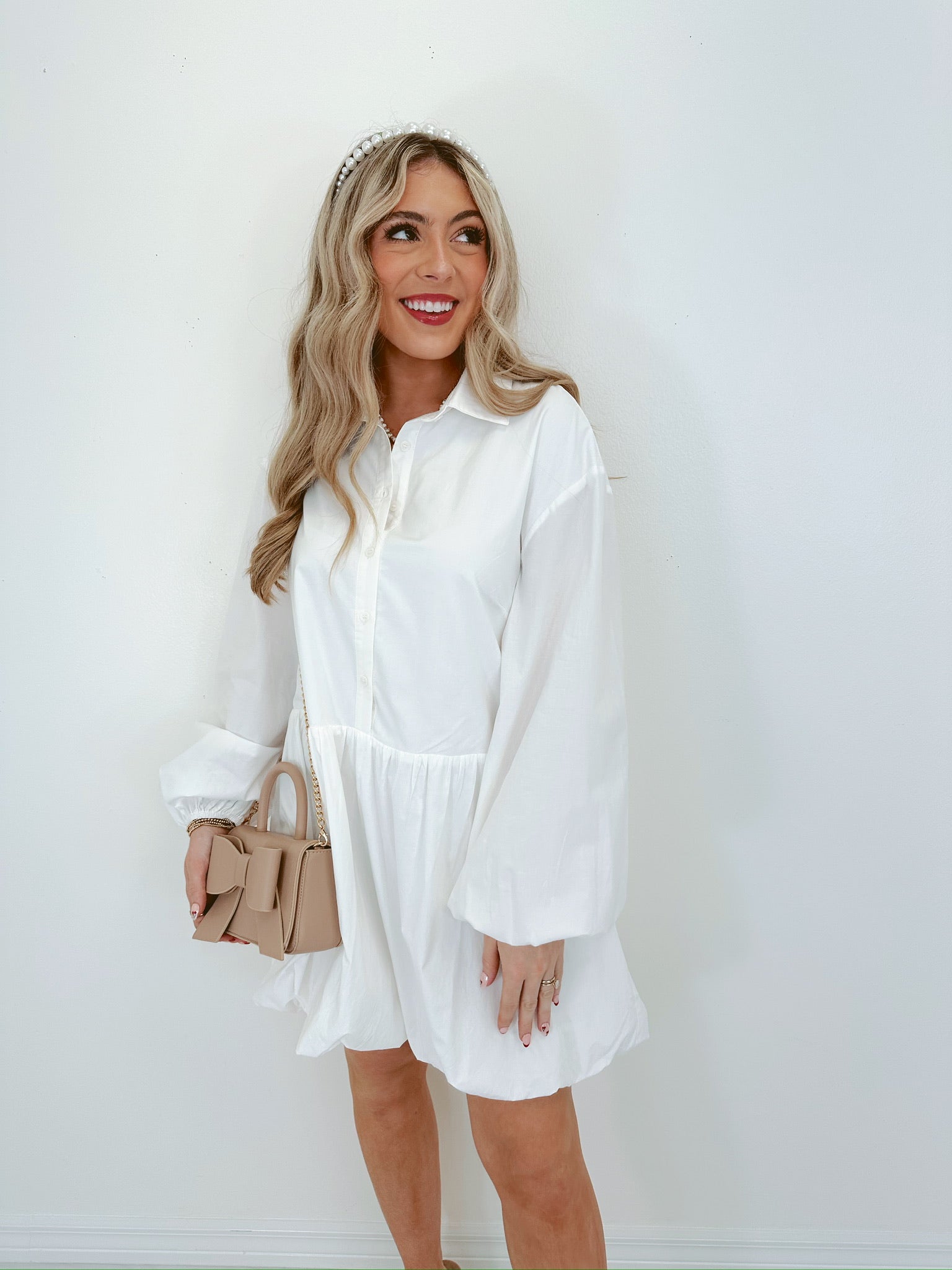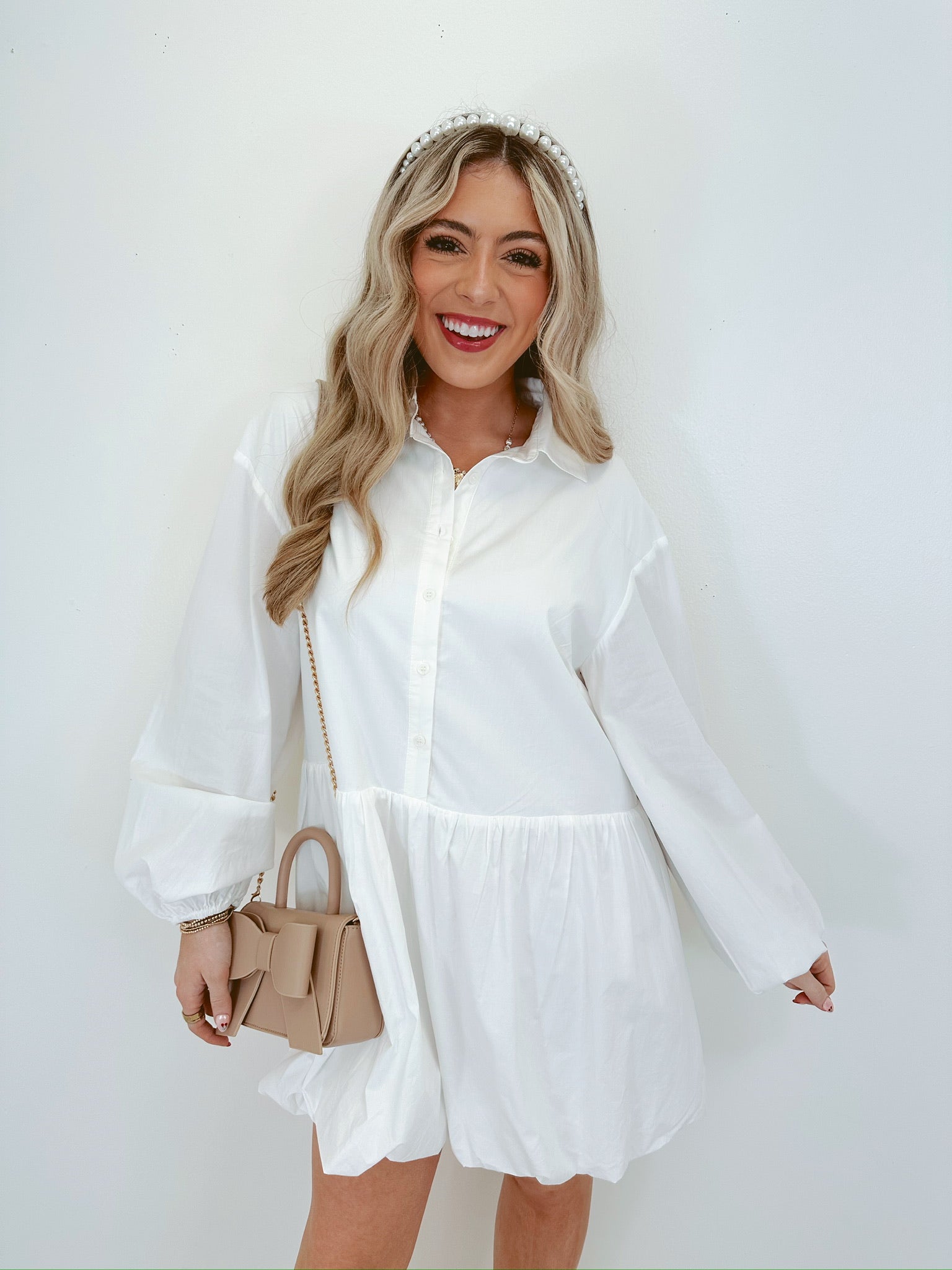 Blissful Sophistication Bubble Hem Mini Dress - White