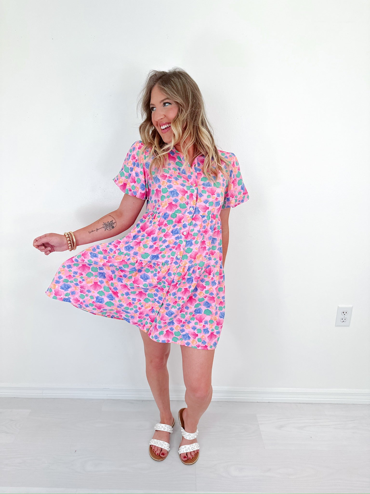 Summer Rainbows Smocked Mini Dress - 2 Colors