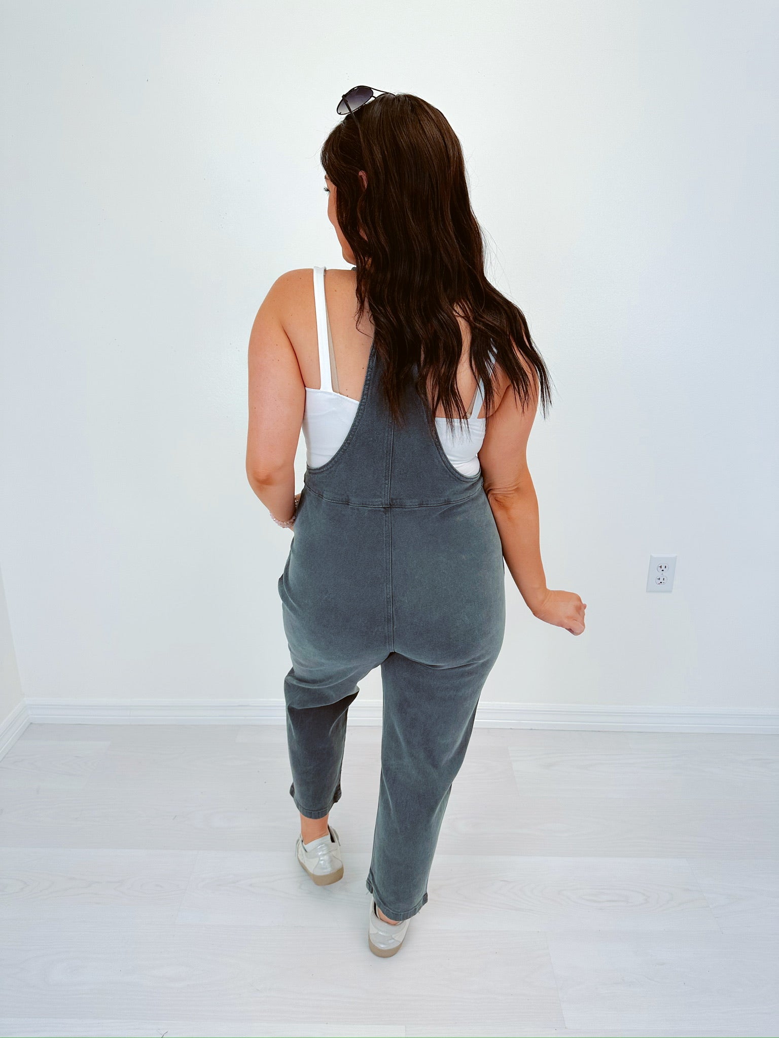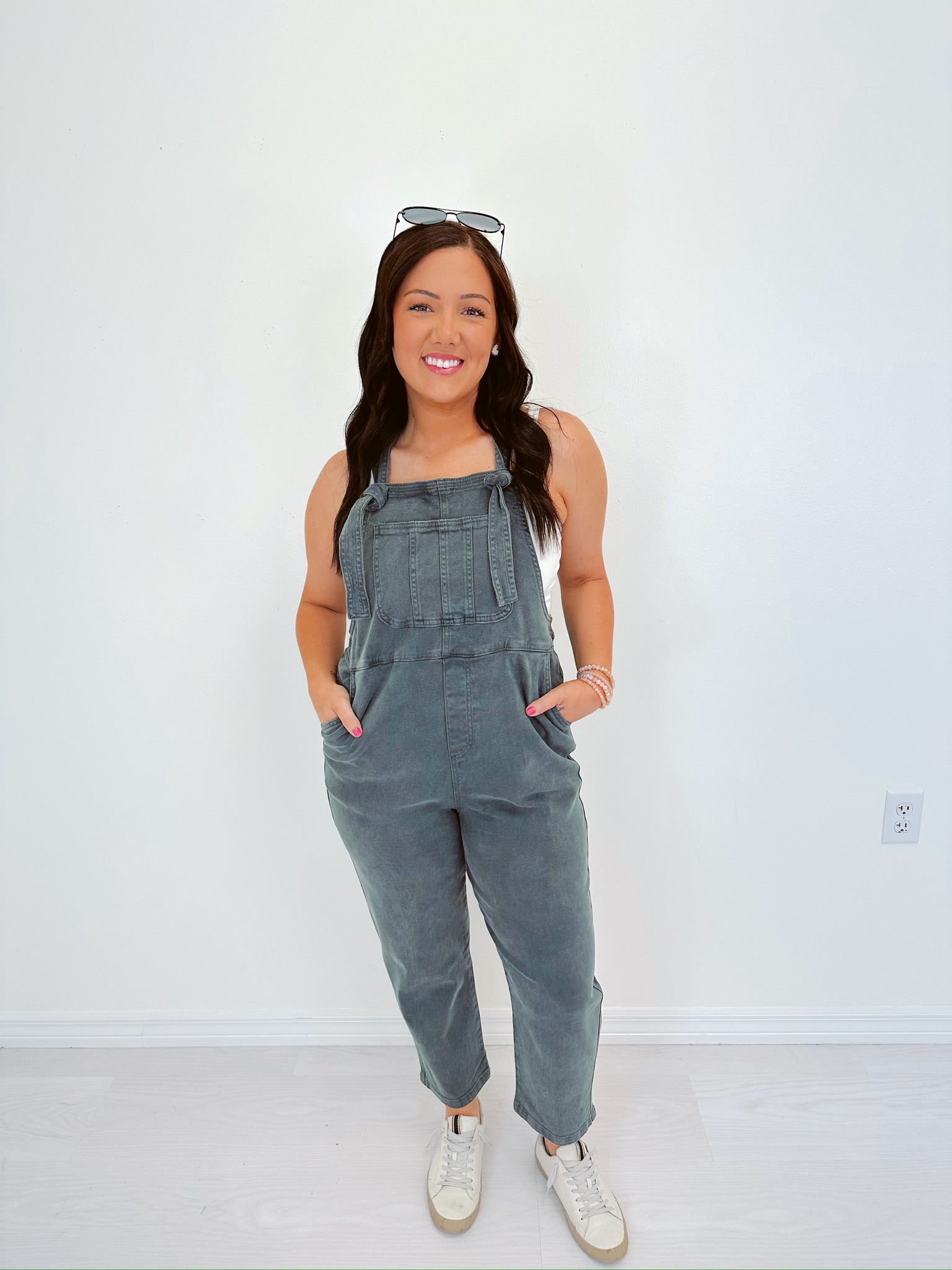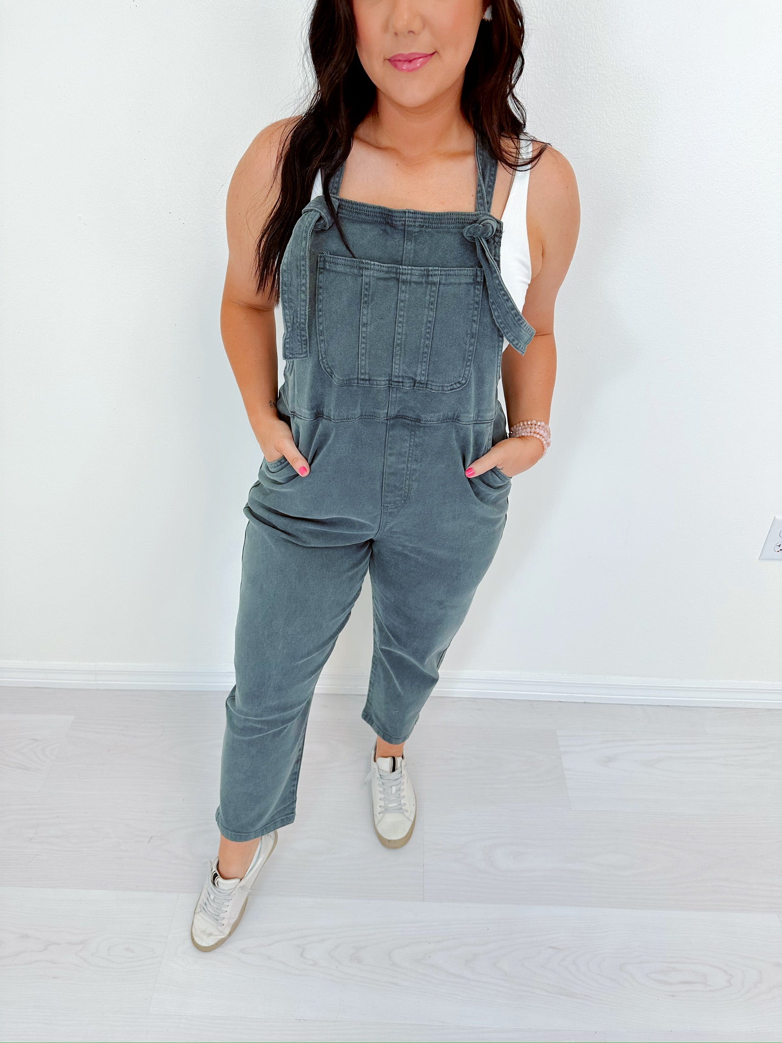 Kamryn Comfy Cropped Tie Knot Overalls - Ash Black