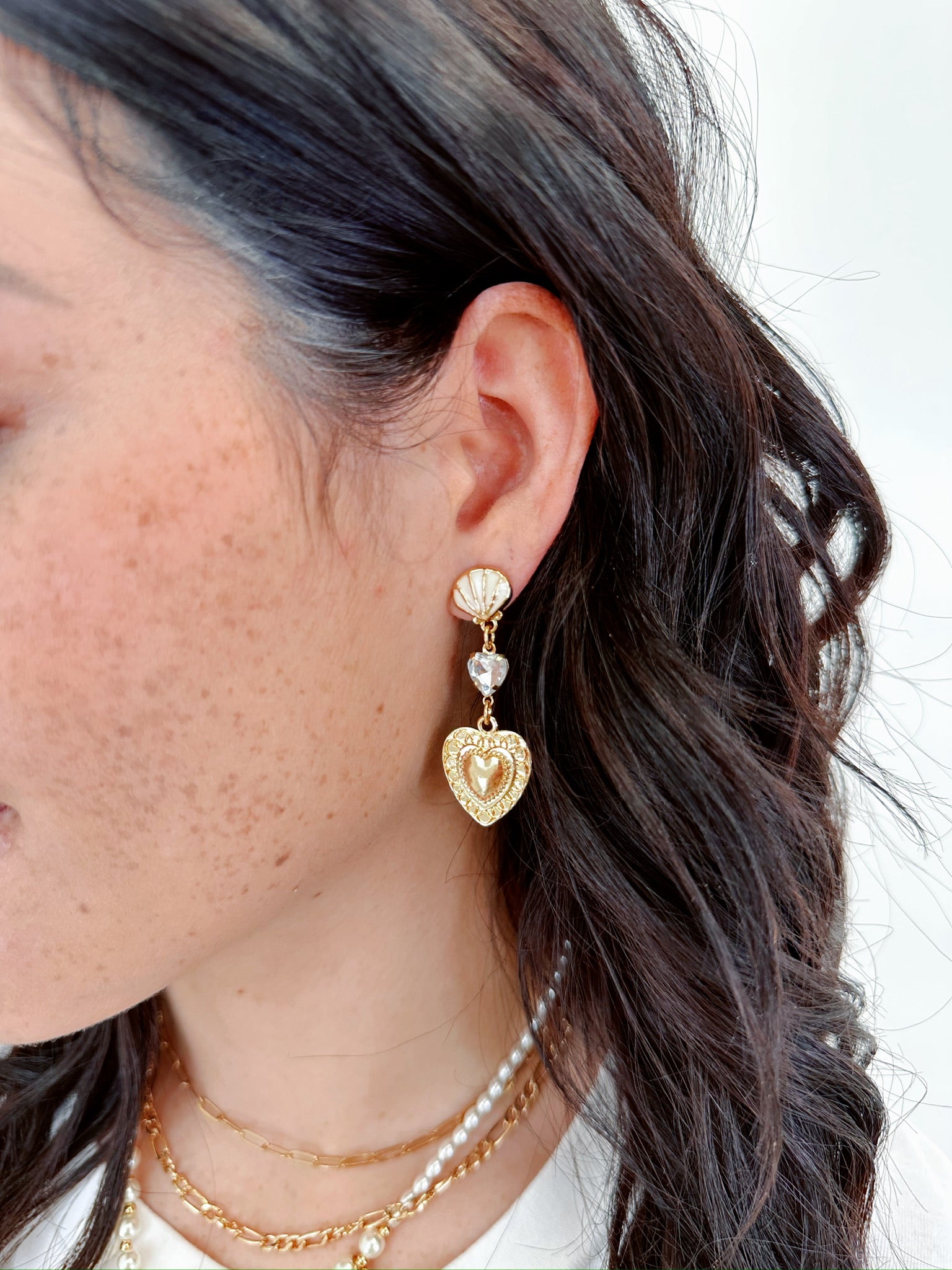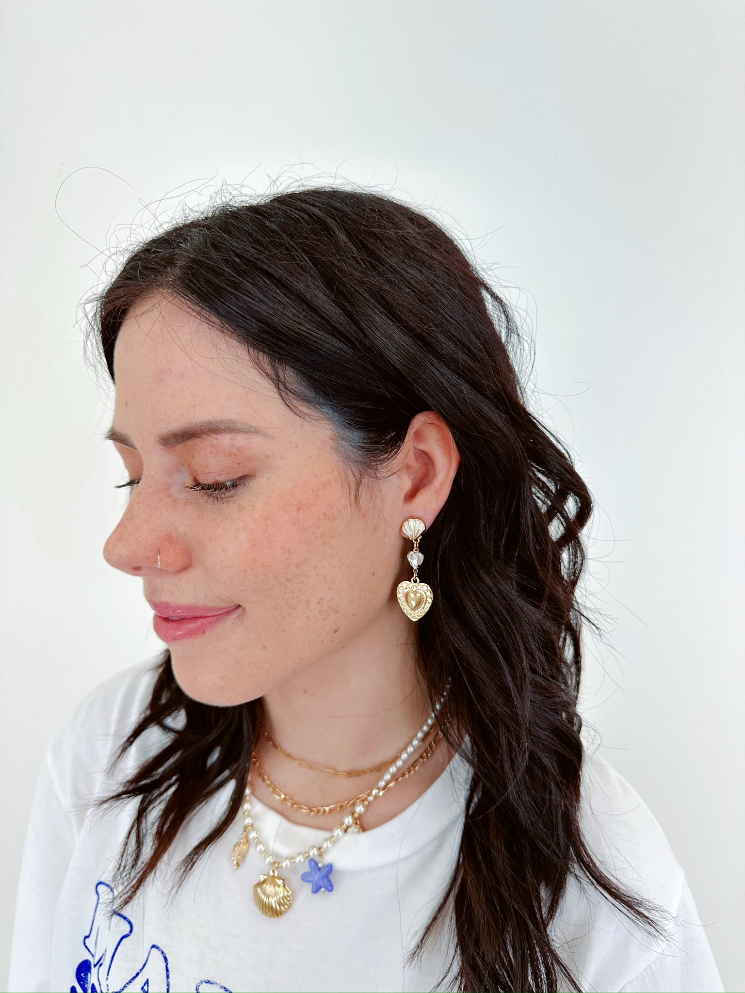 Beach Love Shell Post Heart Dangle Earrings