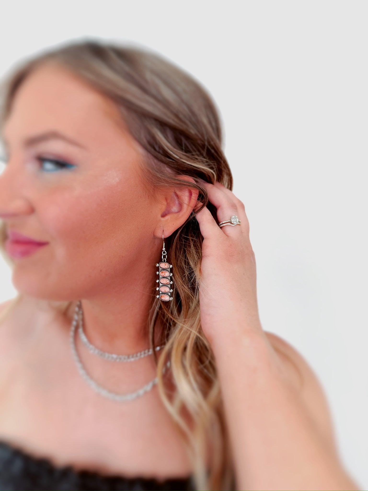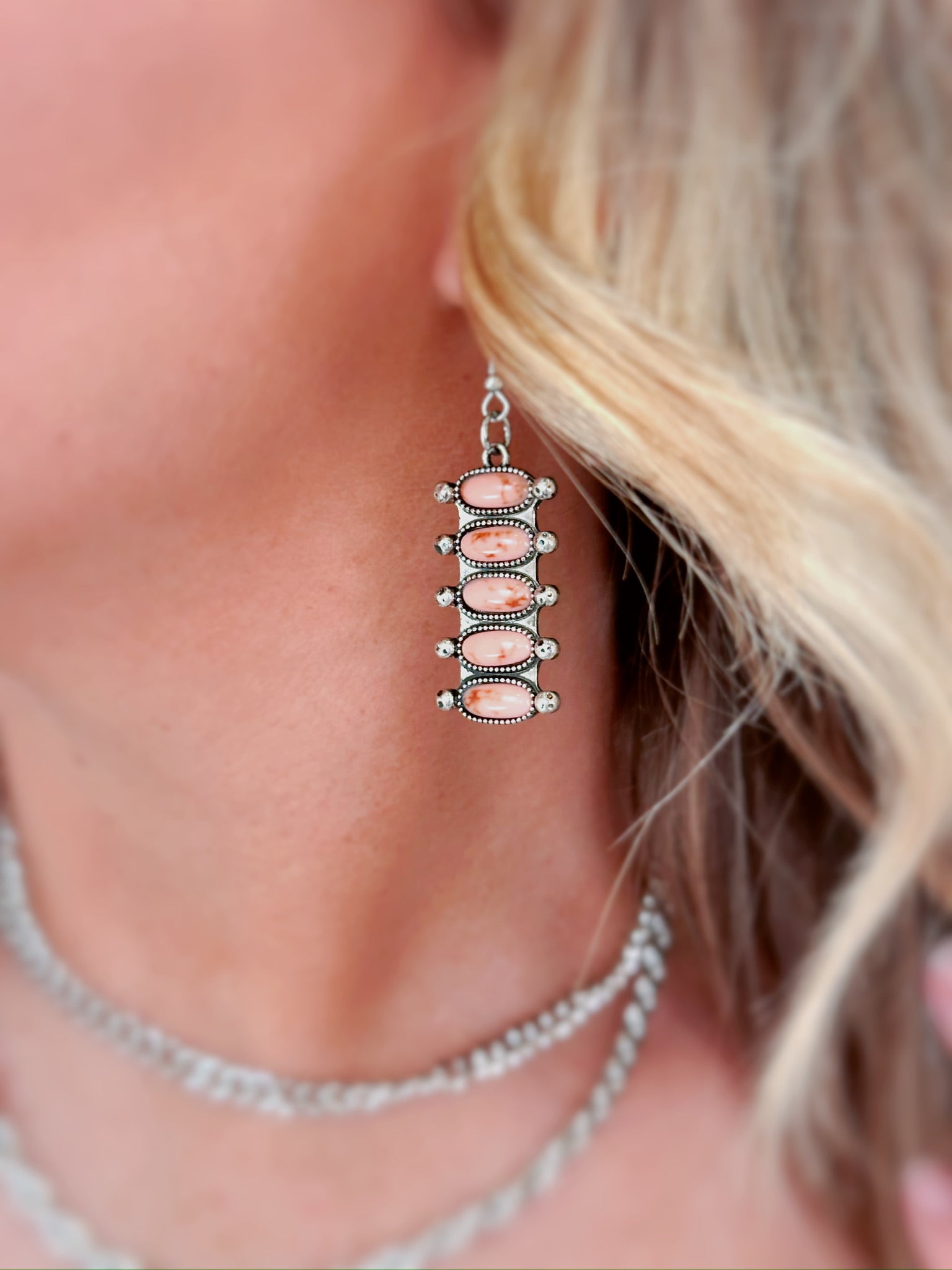 Zuni Tiered Stone Earrings - Mauve
