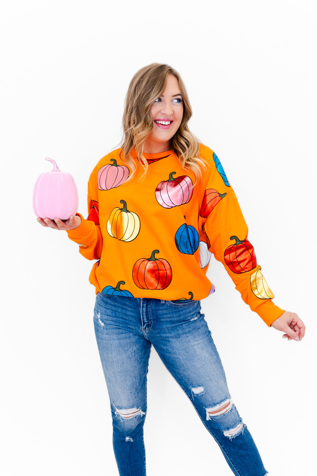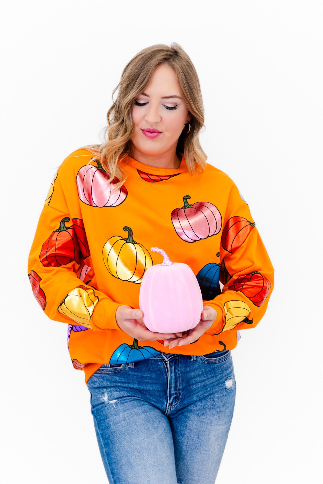 Chenille Pastel Pumpkin Patch Sweatshirt