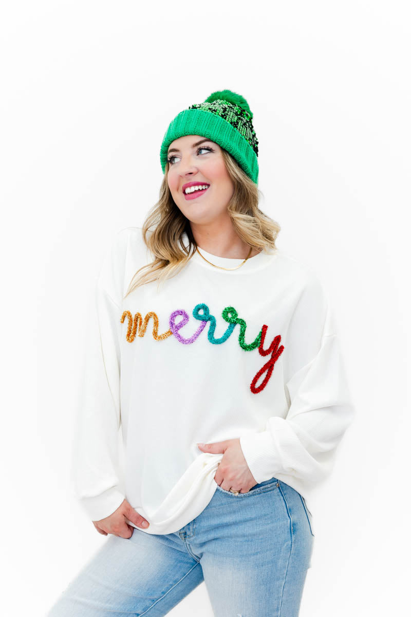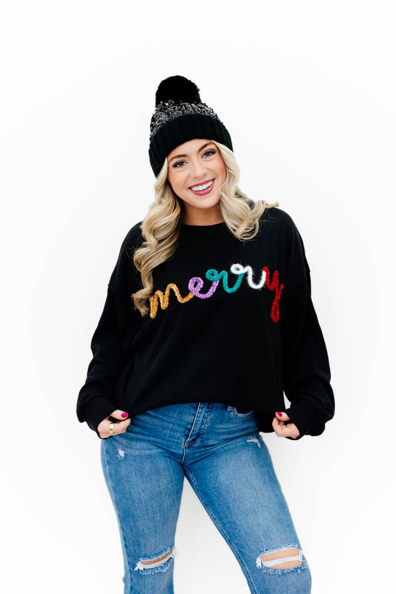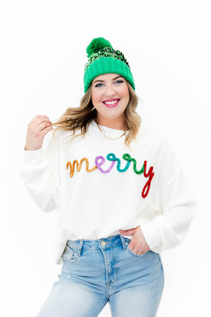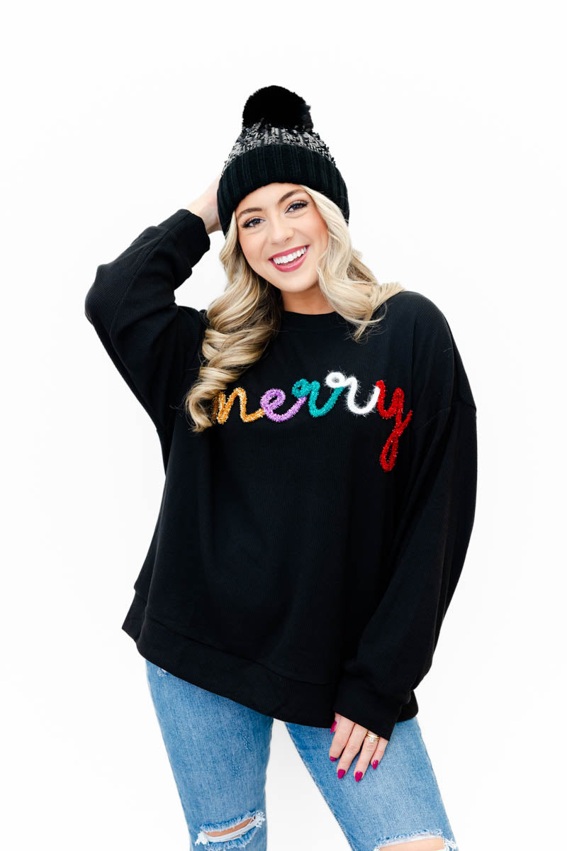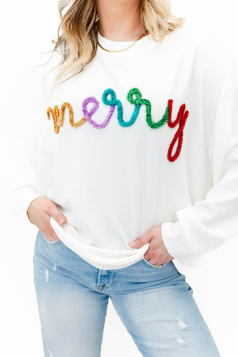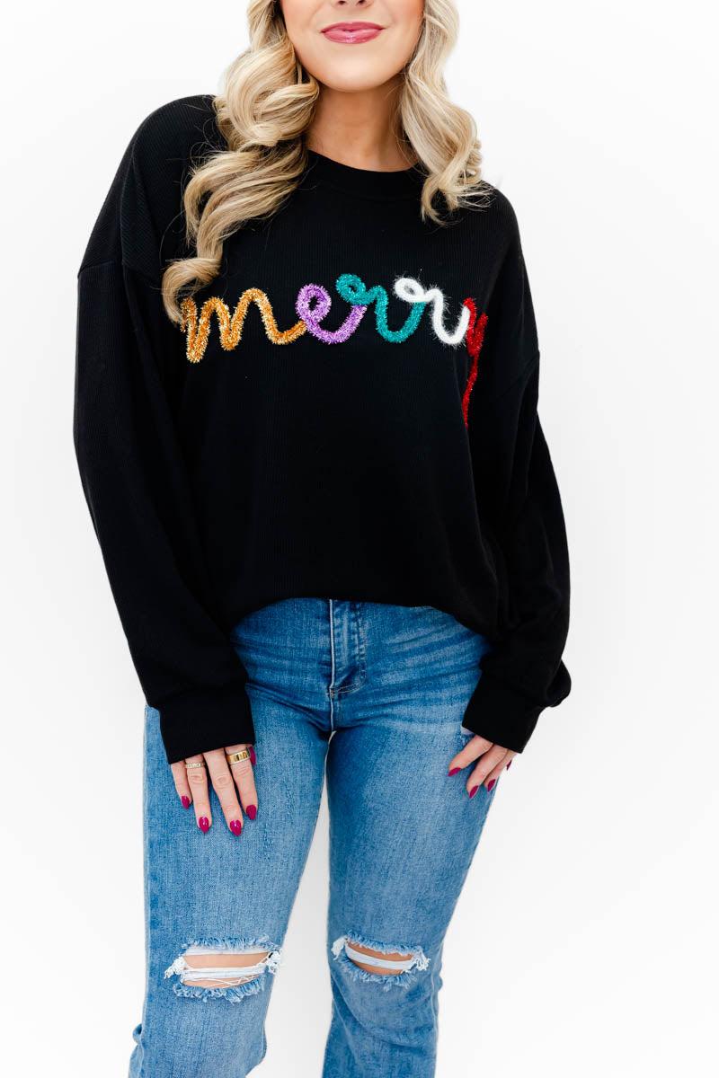 Merry Tinsel Ribbed Pullover