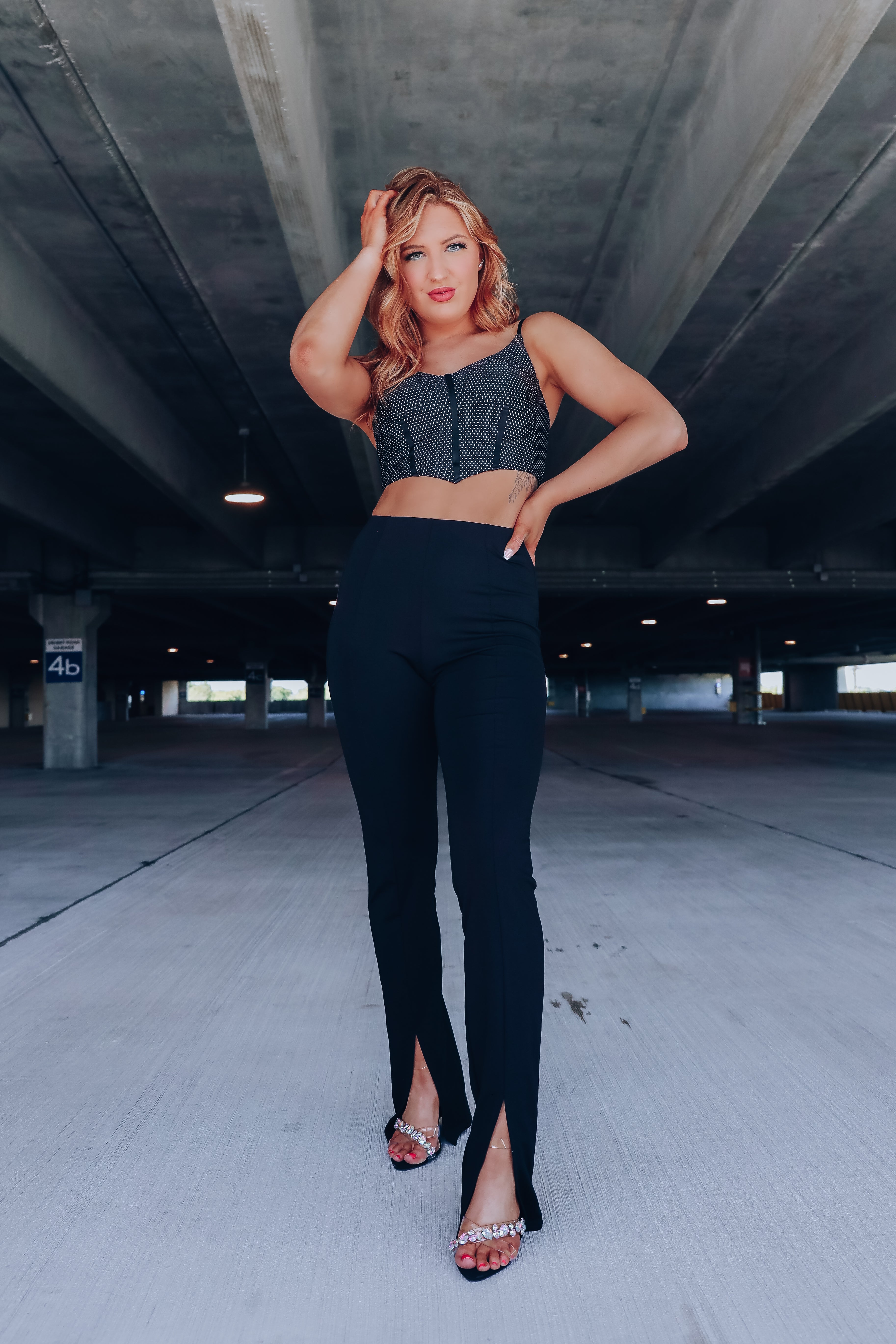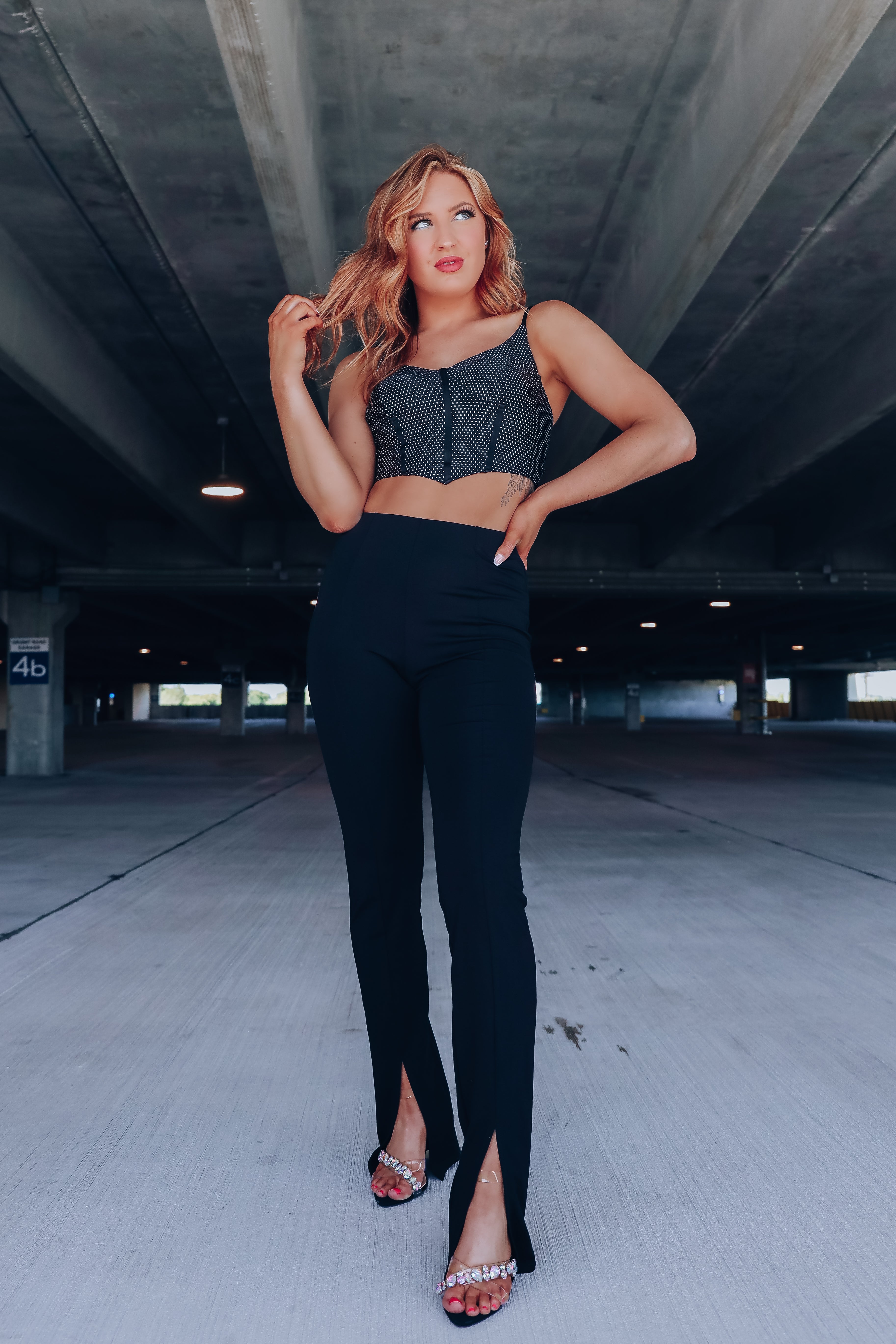 Nikki Polka Dot Corset Top - Black