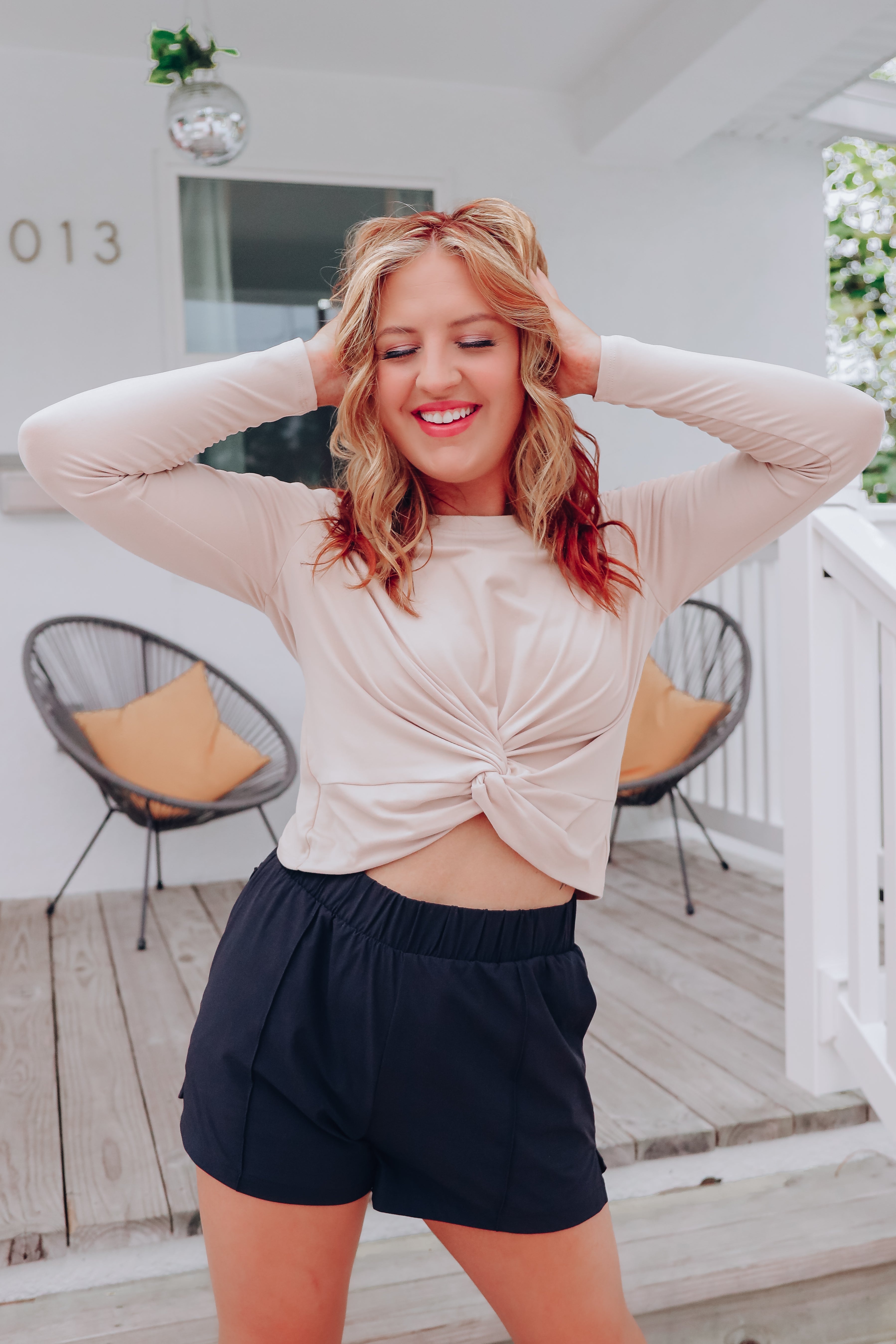 Spiral Knot Long Sleeved Crop Top - Taupe