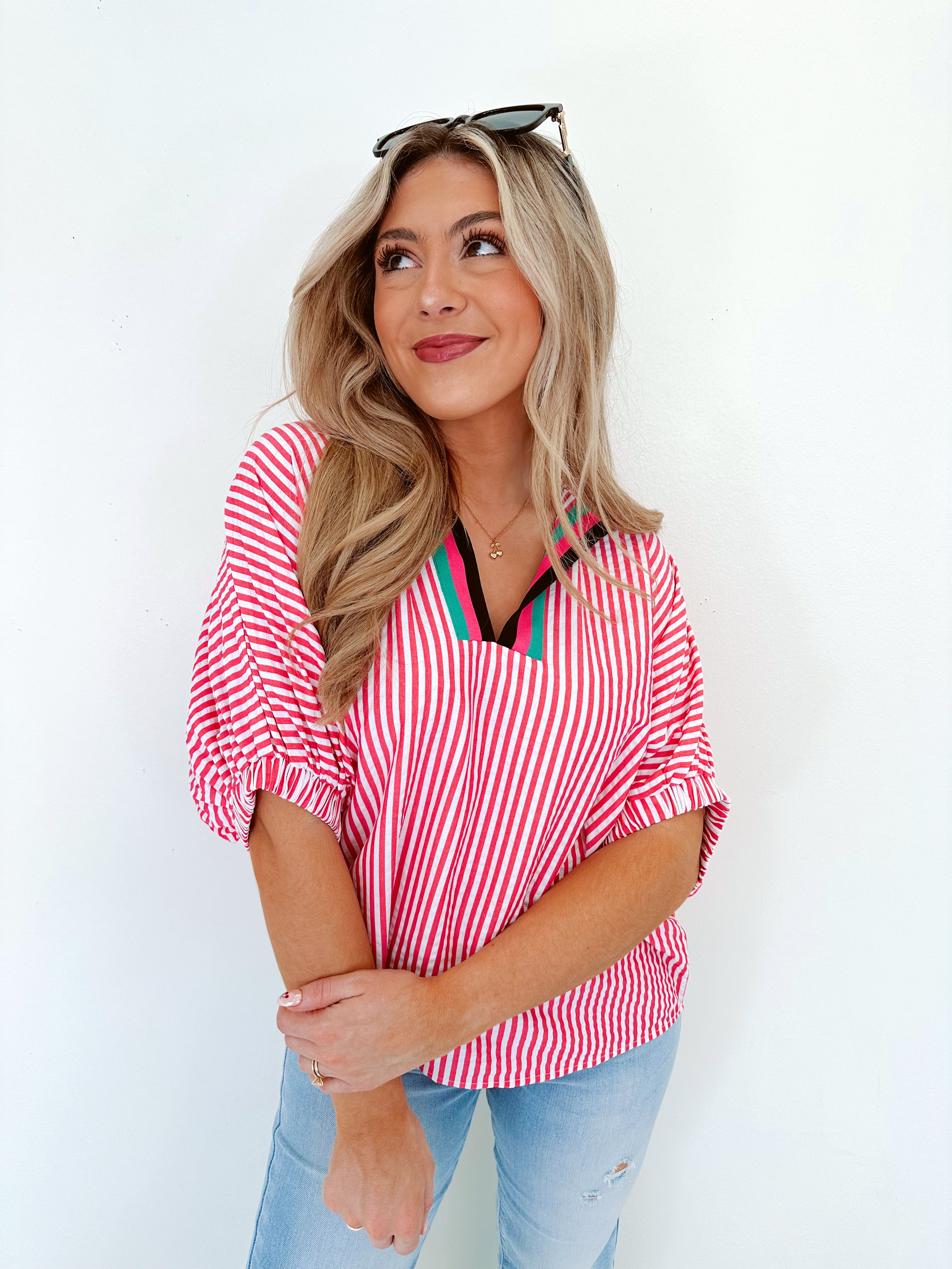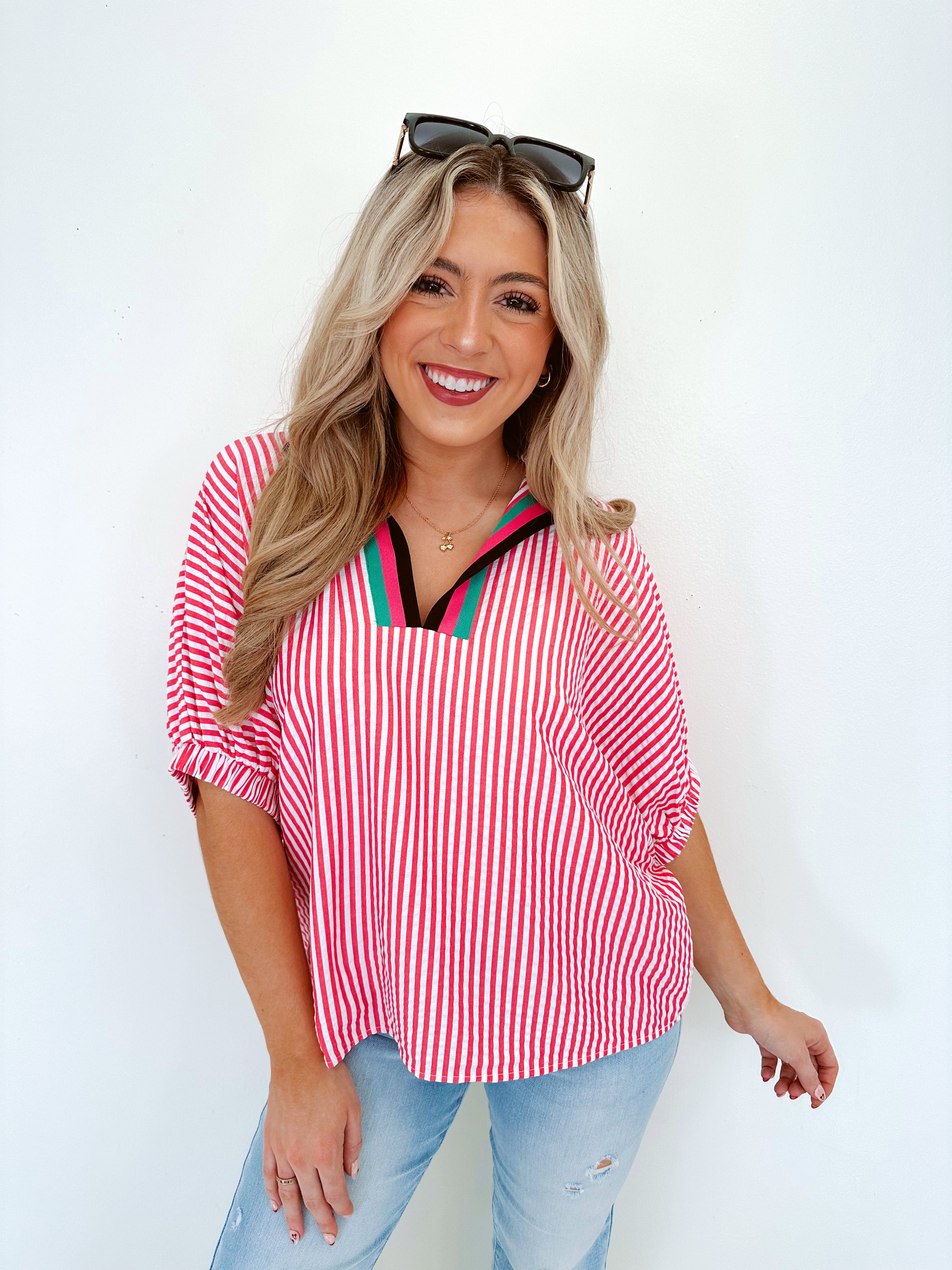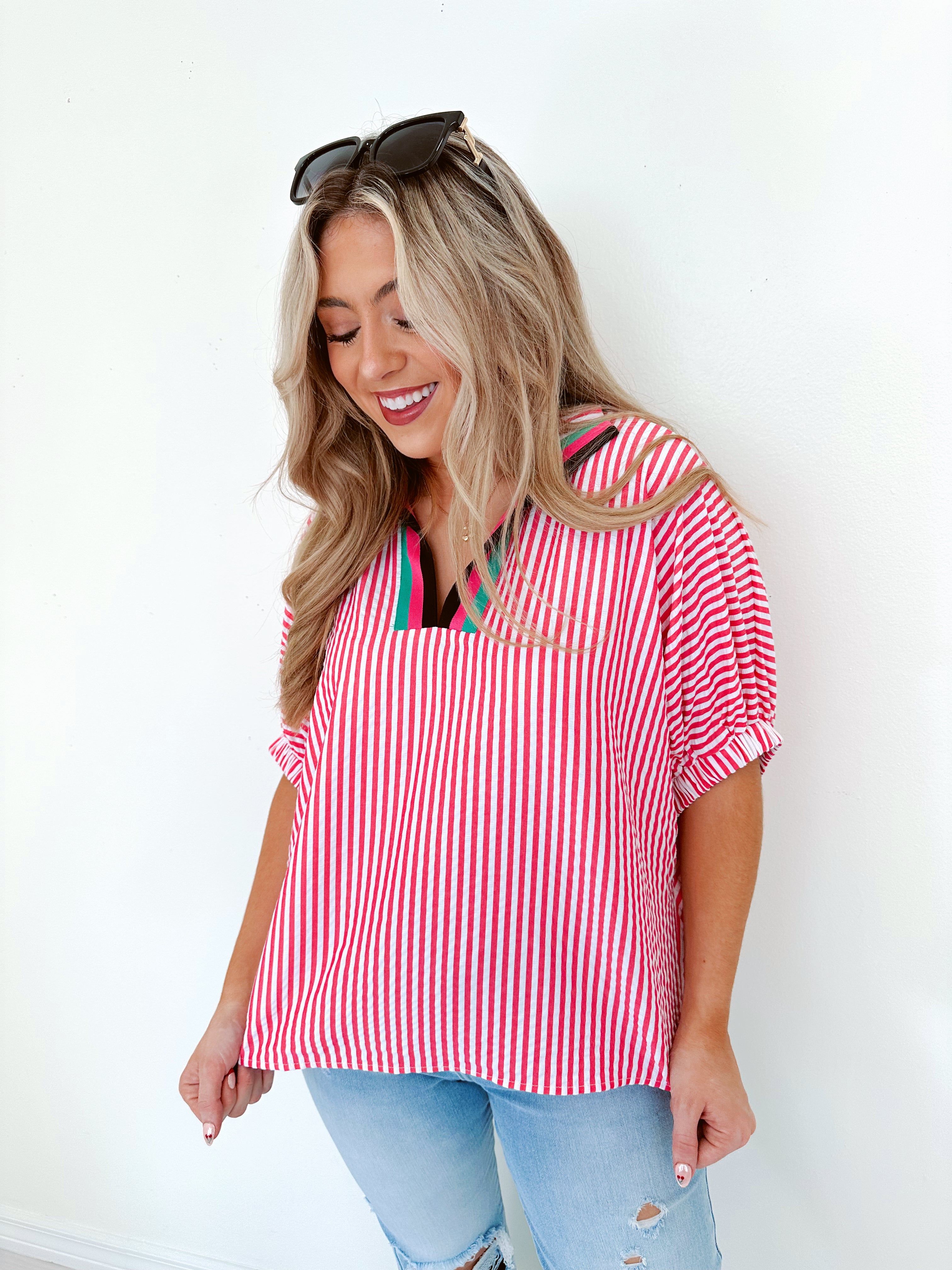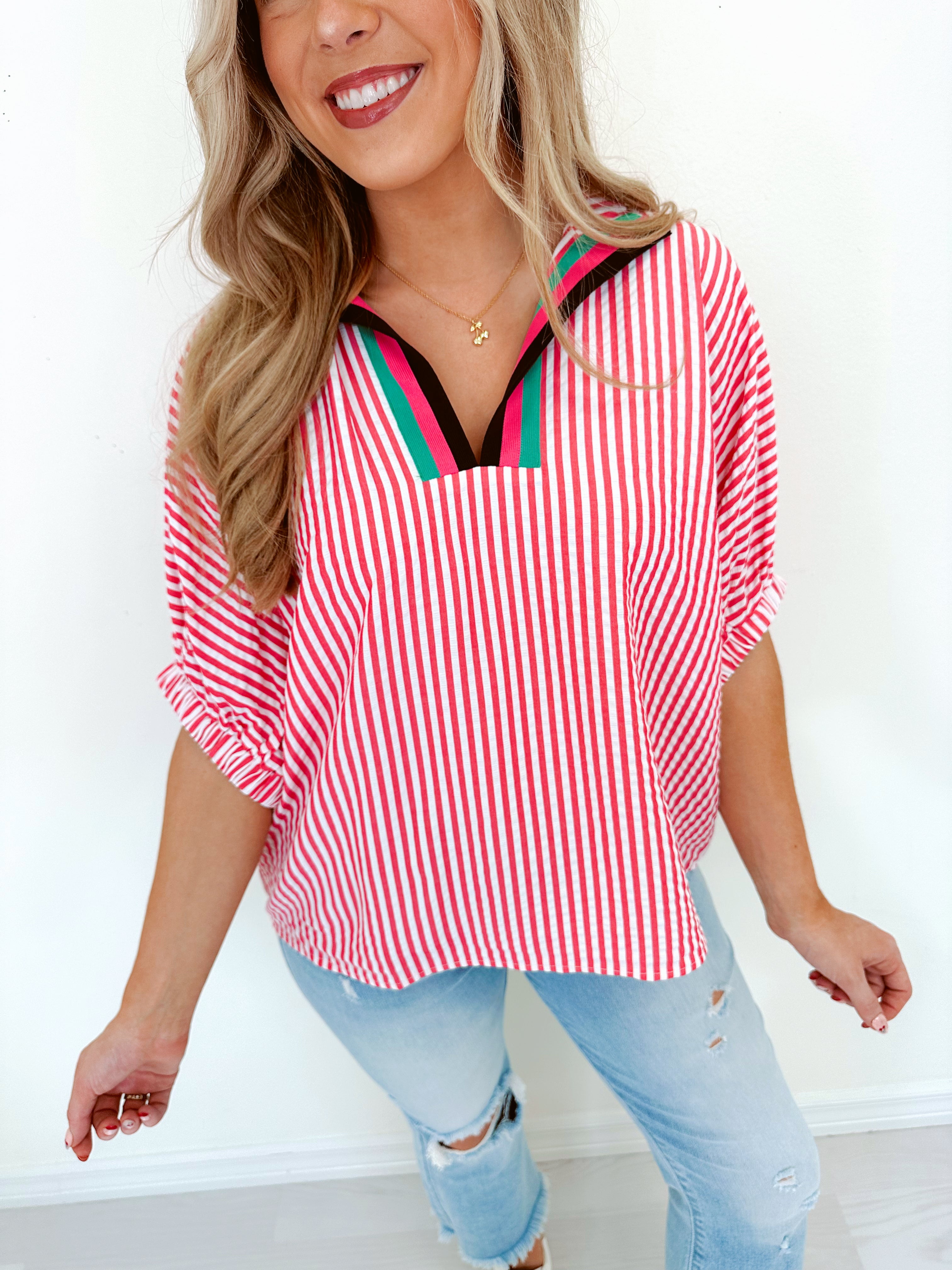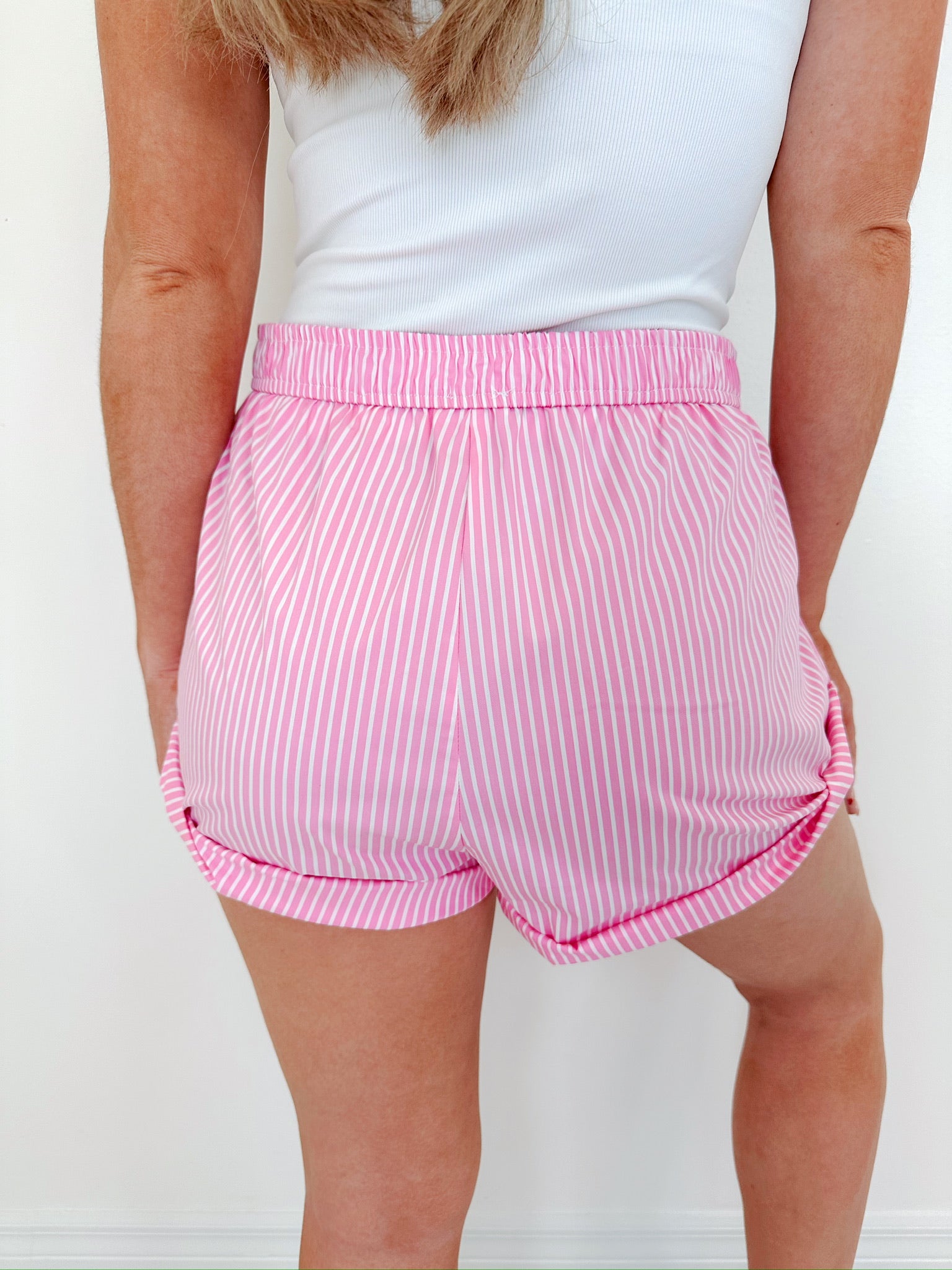 Raven Rolled Cuff Striped Boxer Shorts - Pink