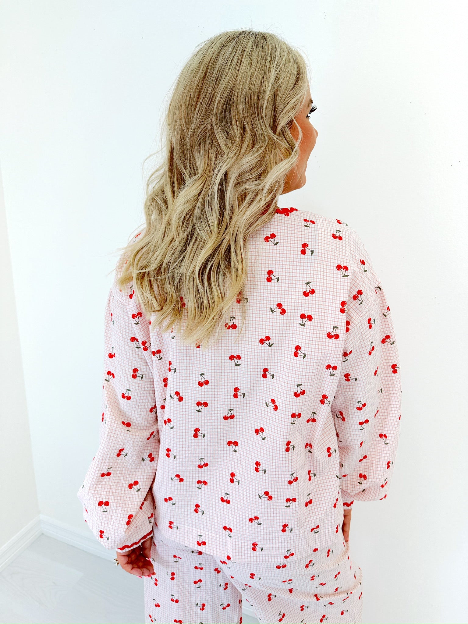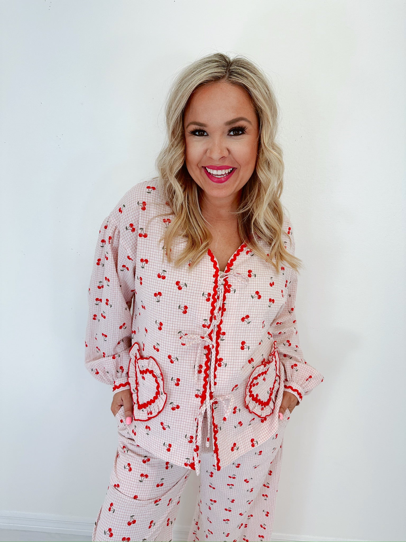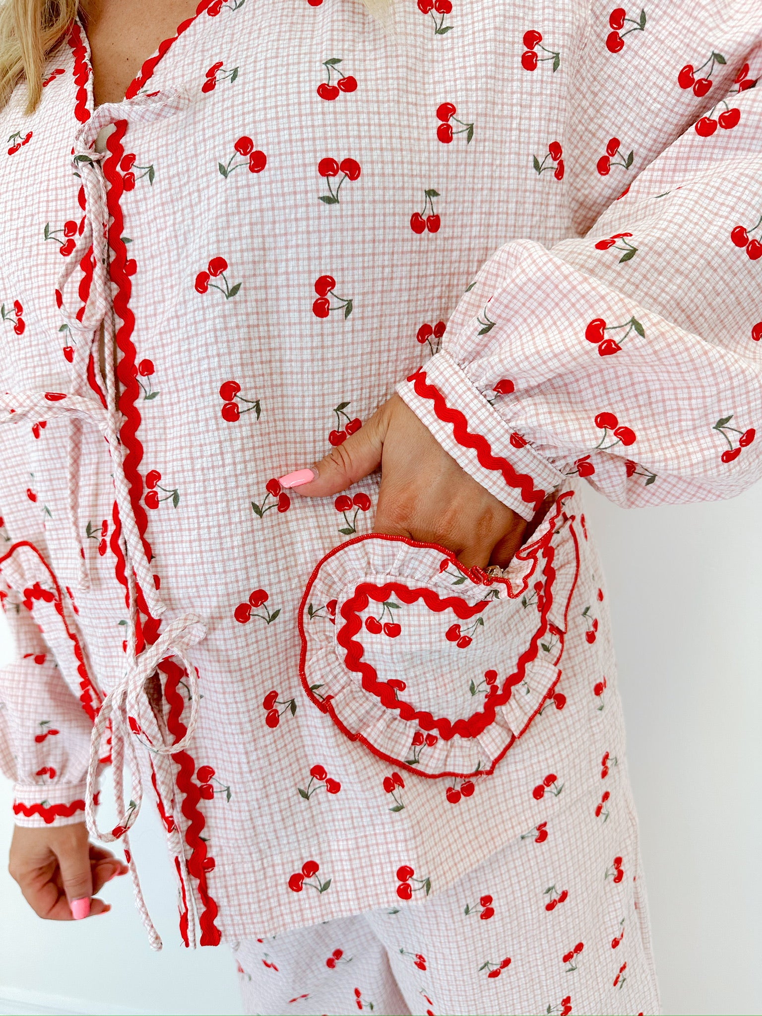 Georgie Gingham & Cherry Wide Leg Lounge Set - Pink