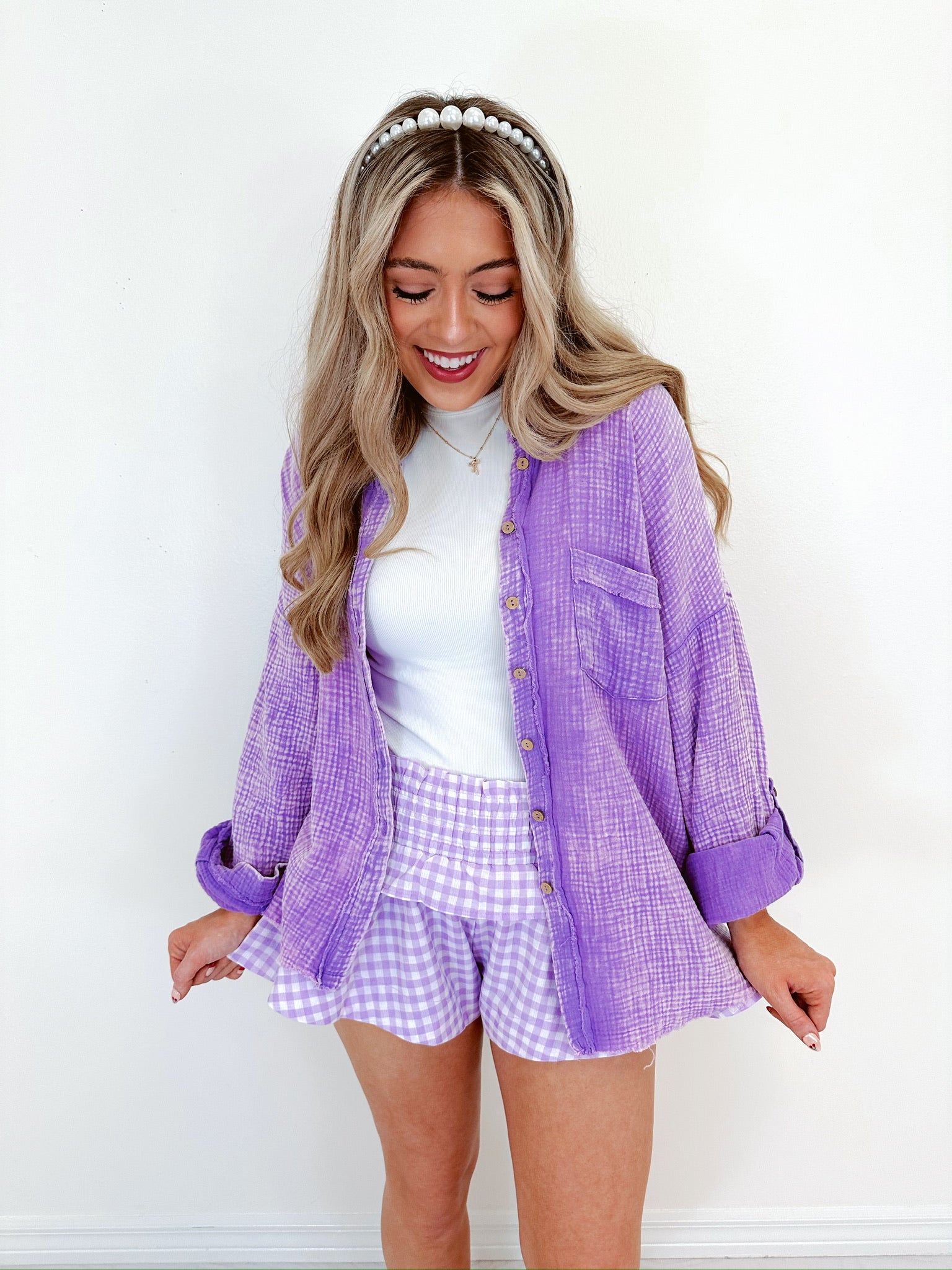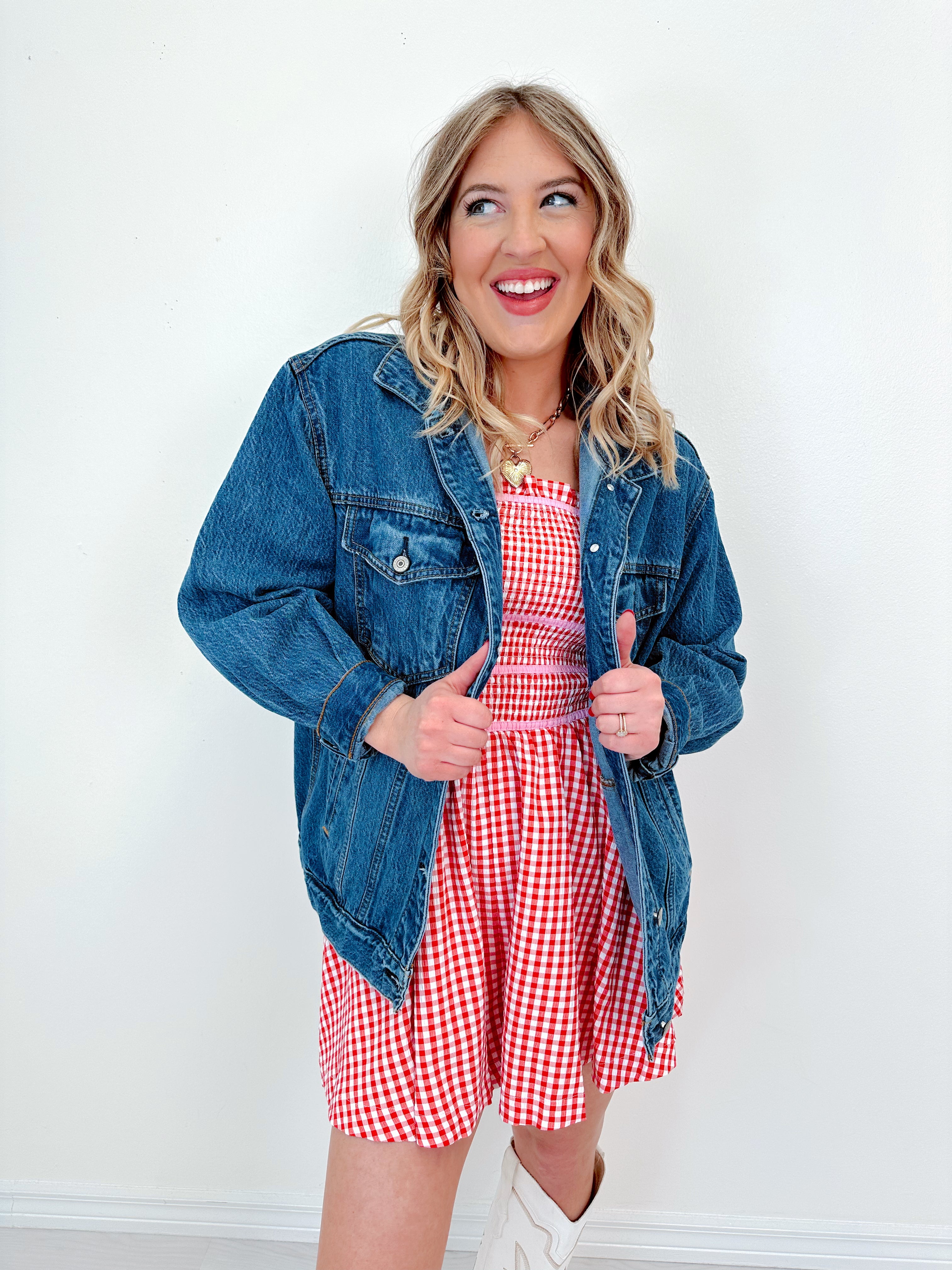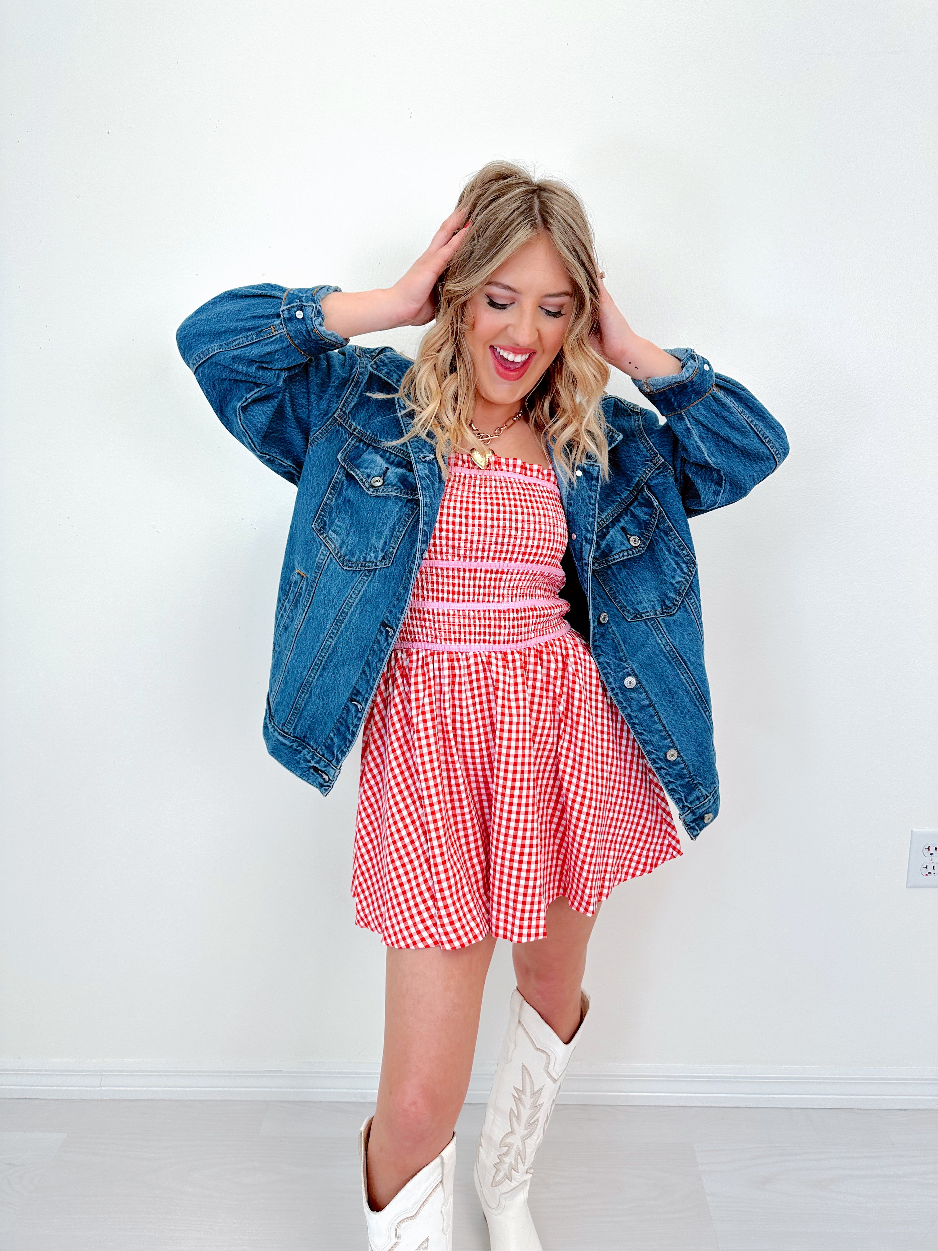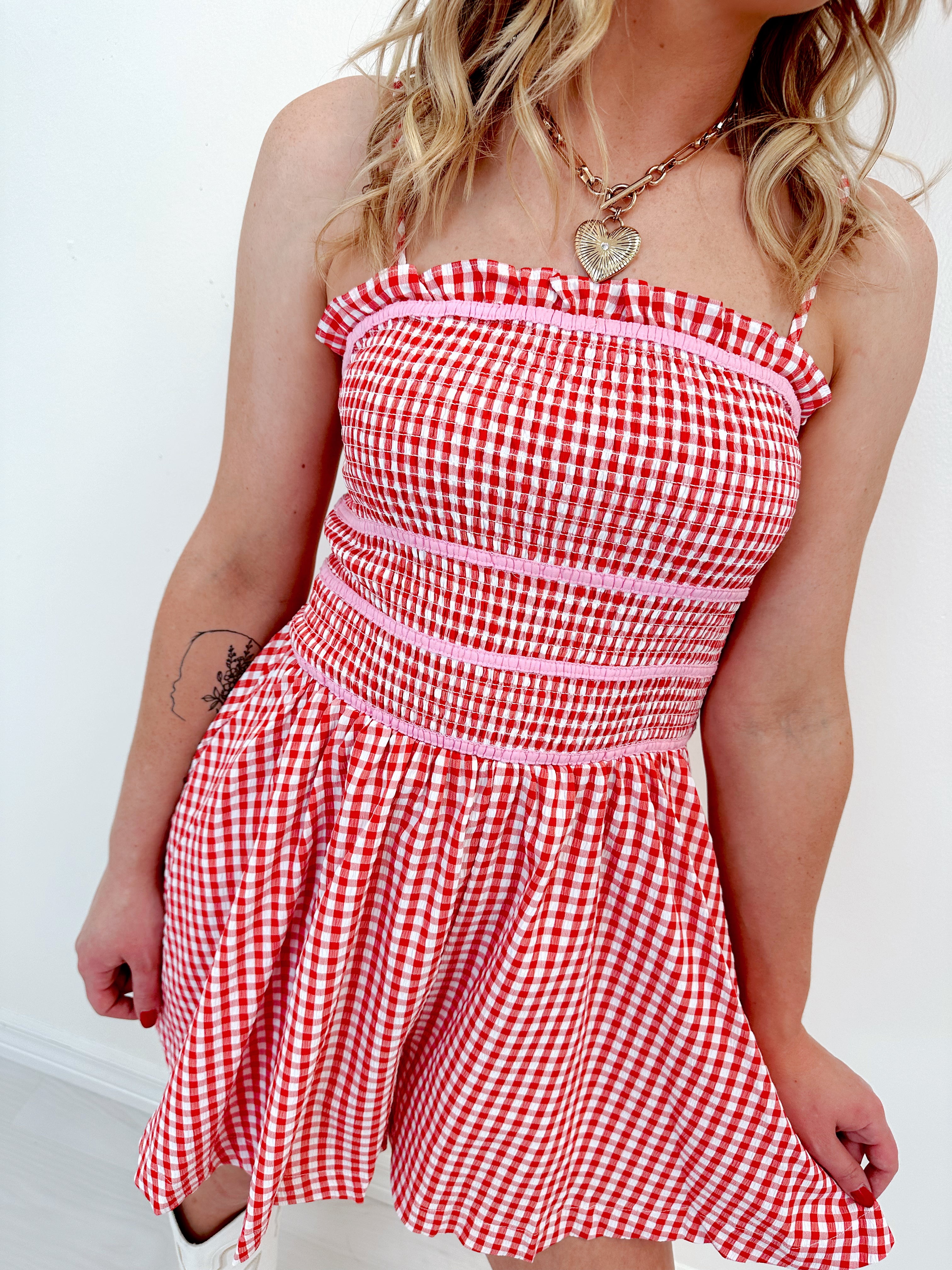 Georgie Gingham & Cherry Wide Leg Lounge Set - Pink