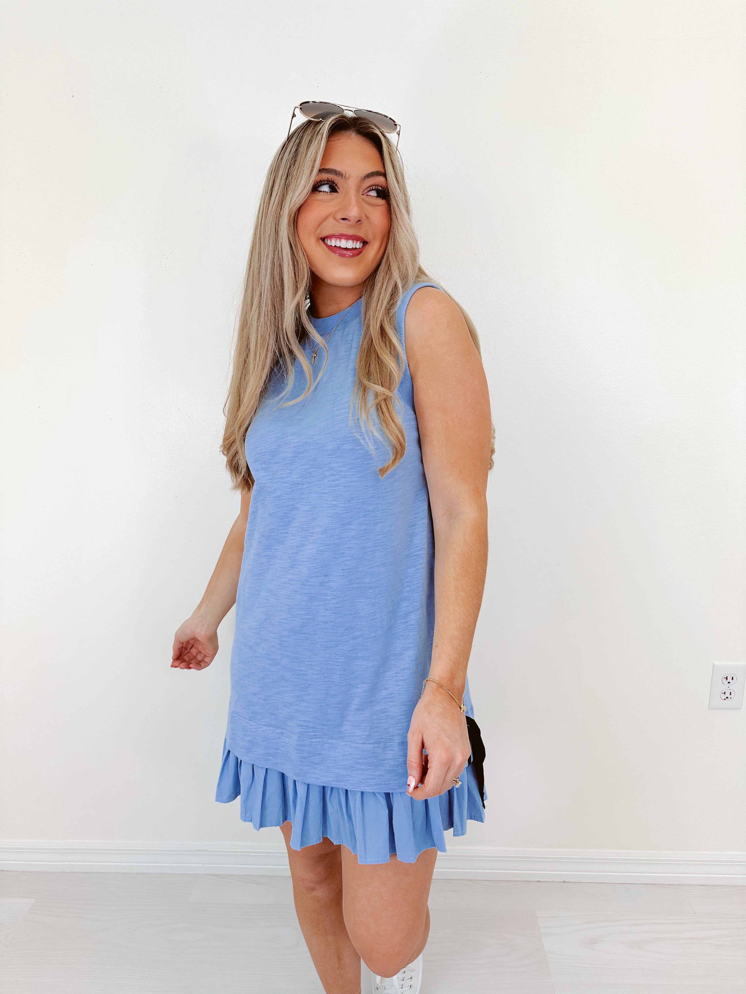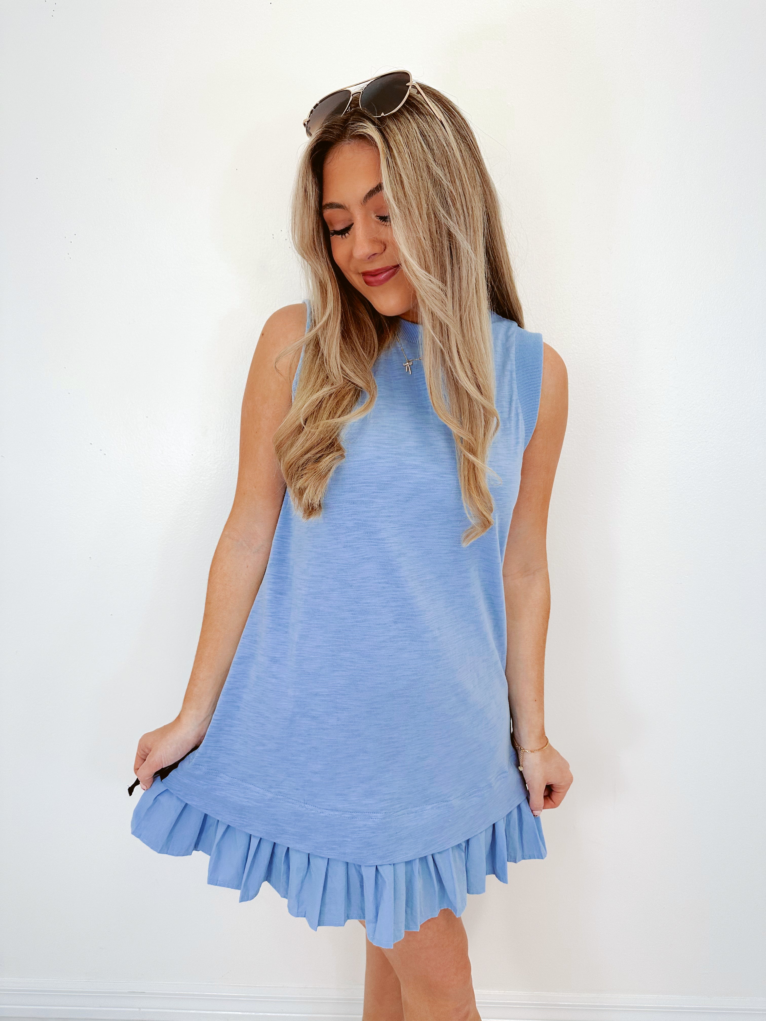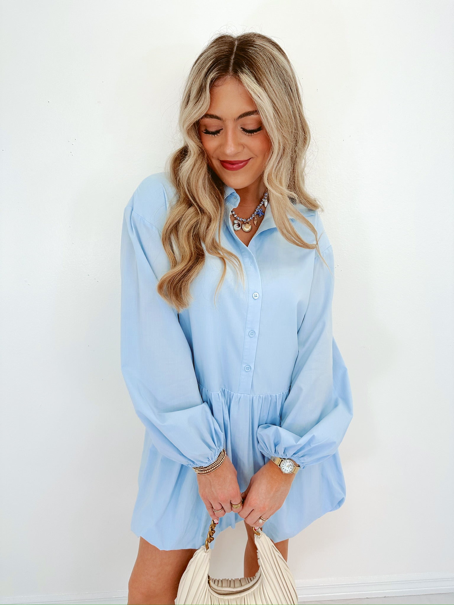 Blissful Sophistication Bubble Hem Mini Dress - Baby Blue