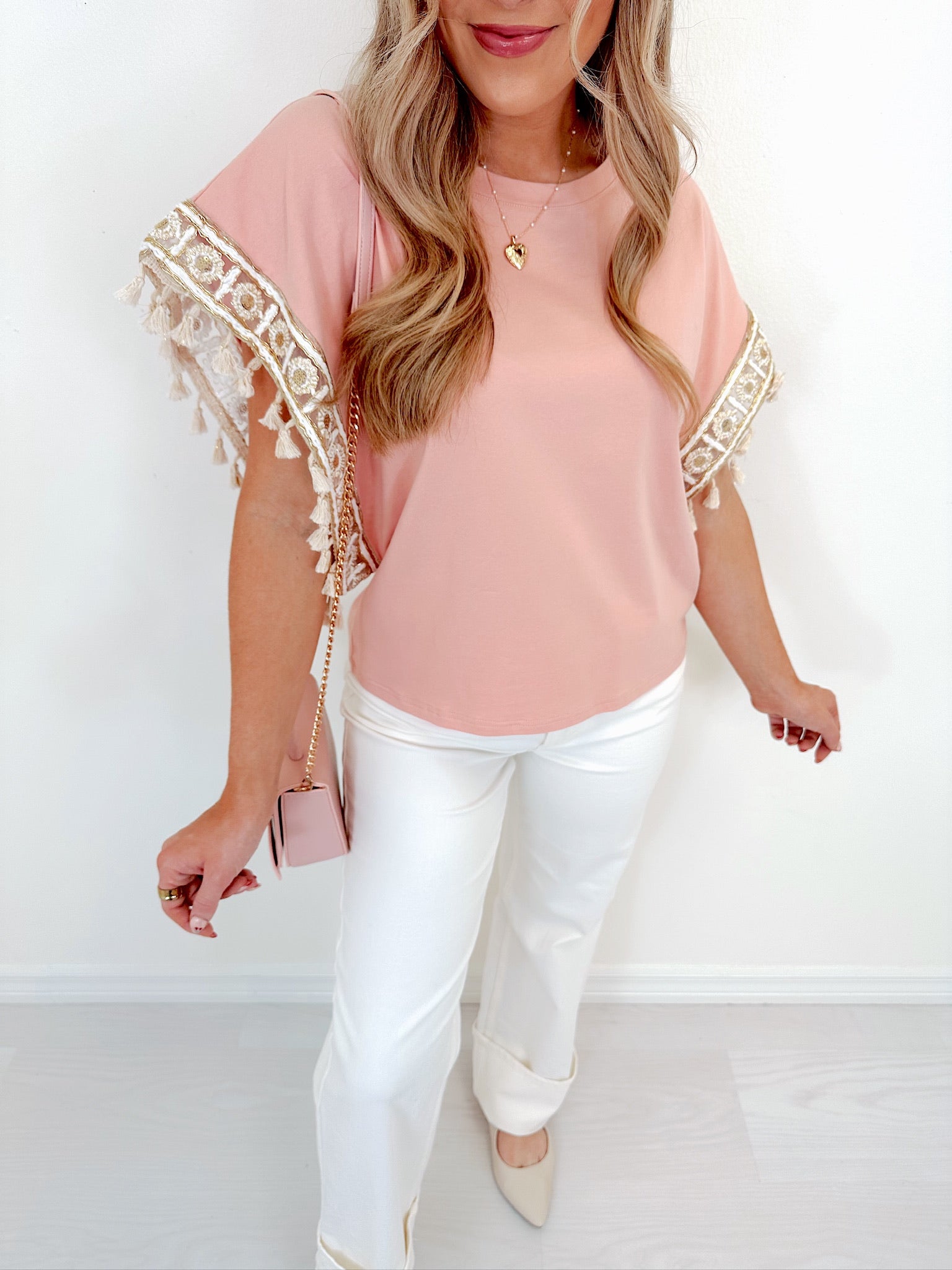 Boho Breezy Floral Crochet Knit Sweater - Pink
