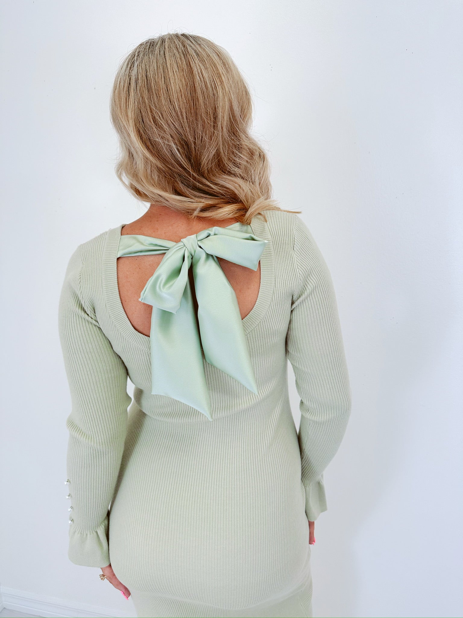 Princess Bow Back Maxi Sweater Dress - Light Sage
