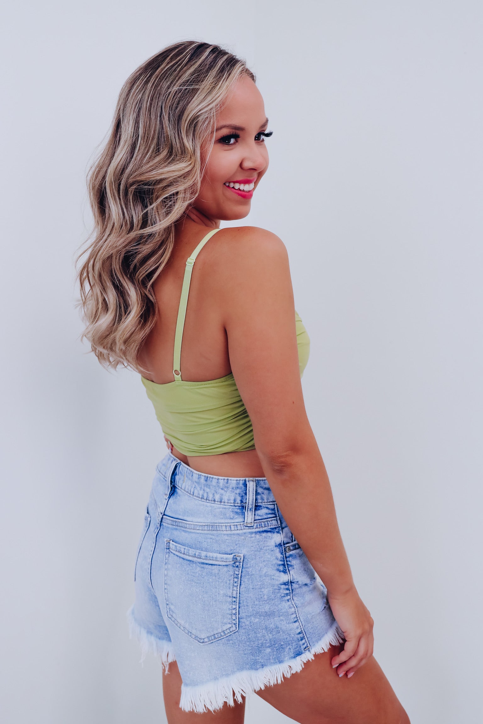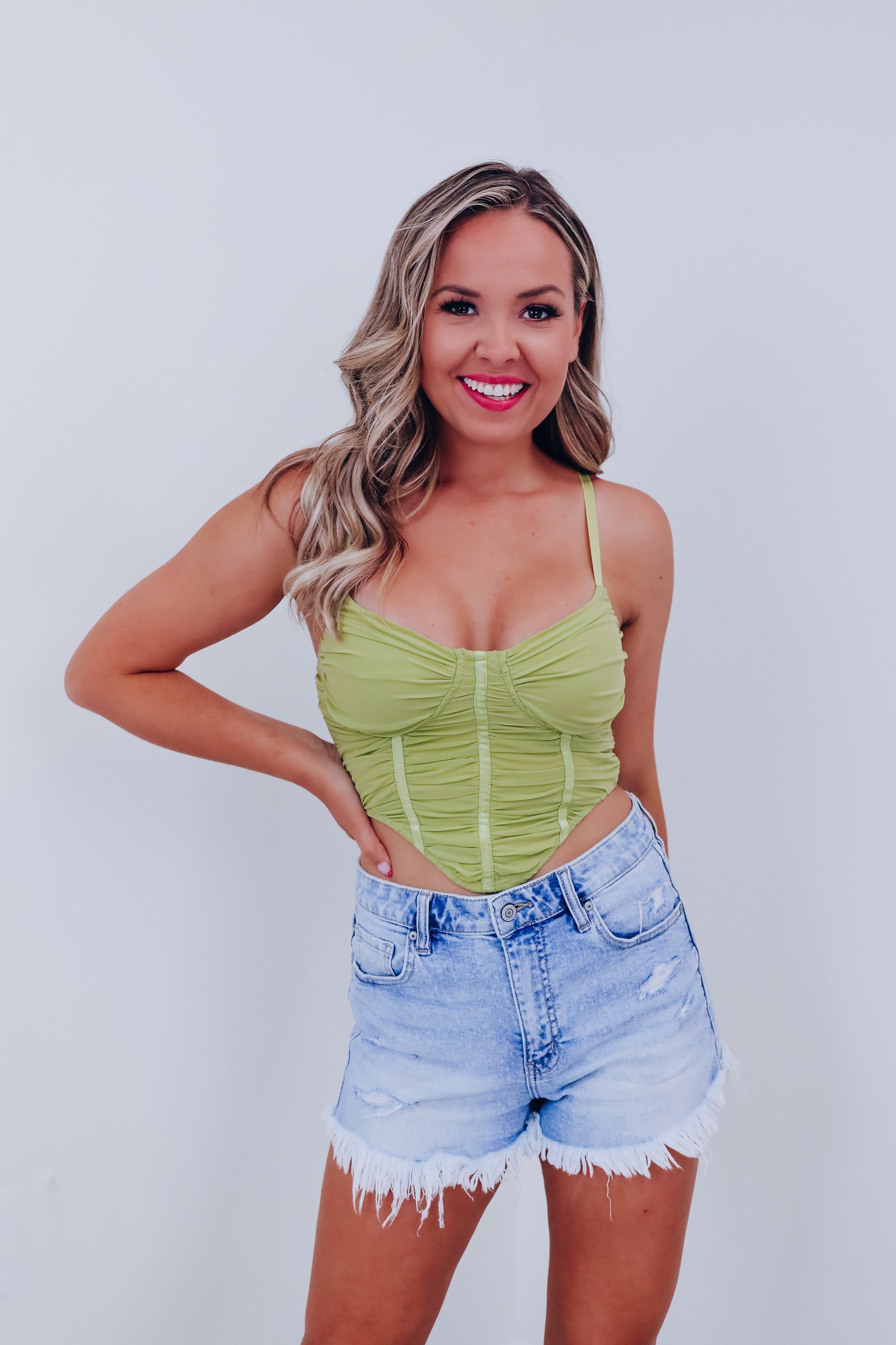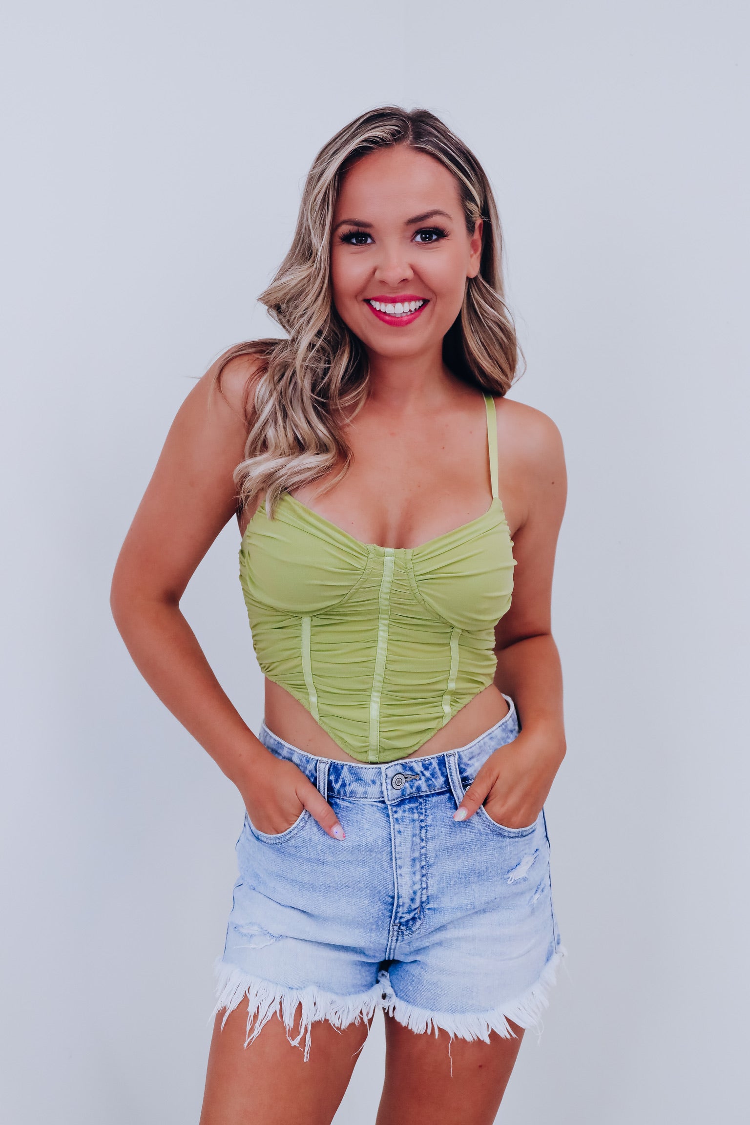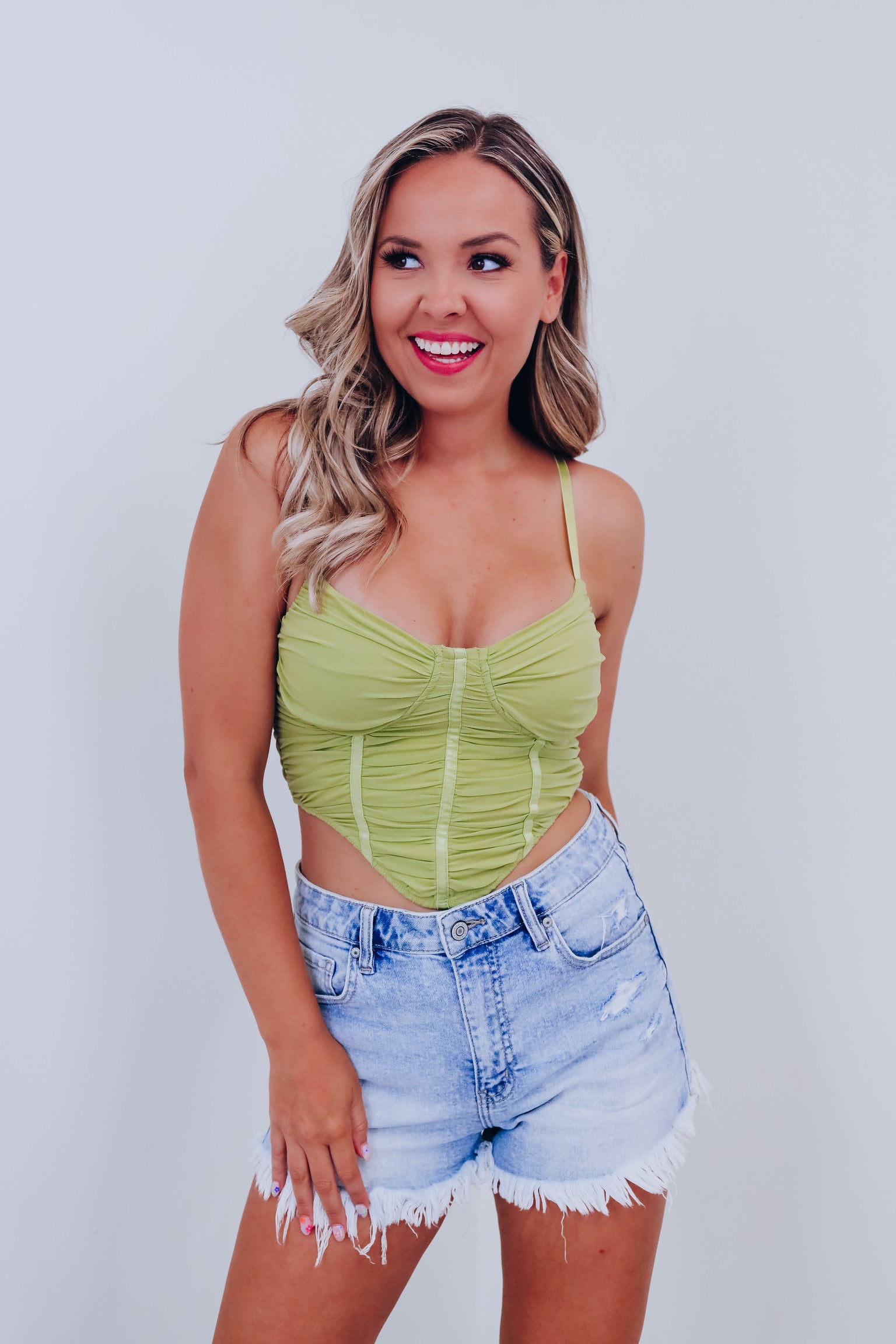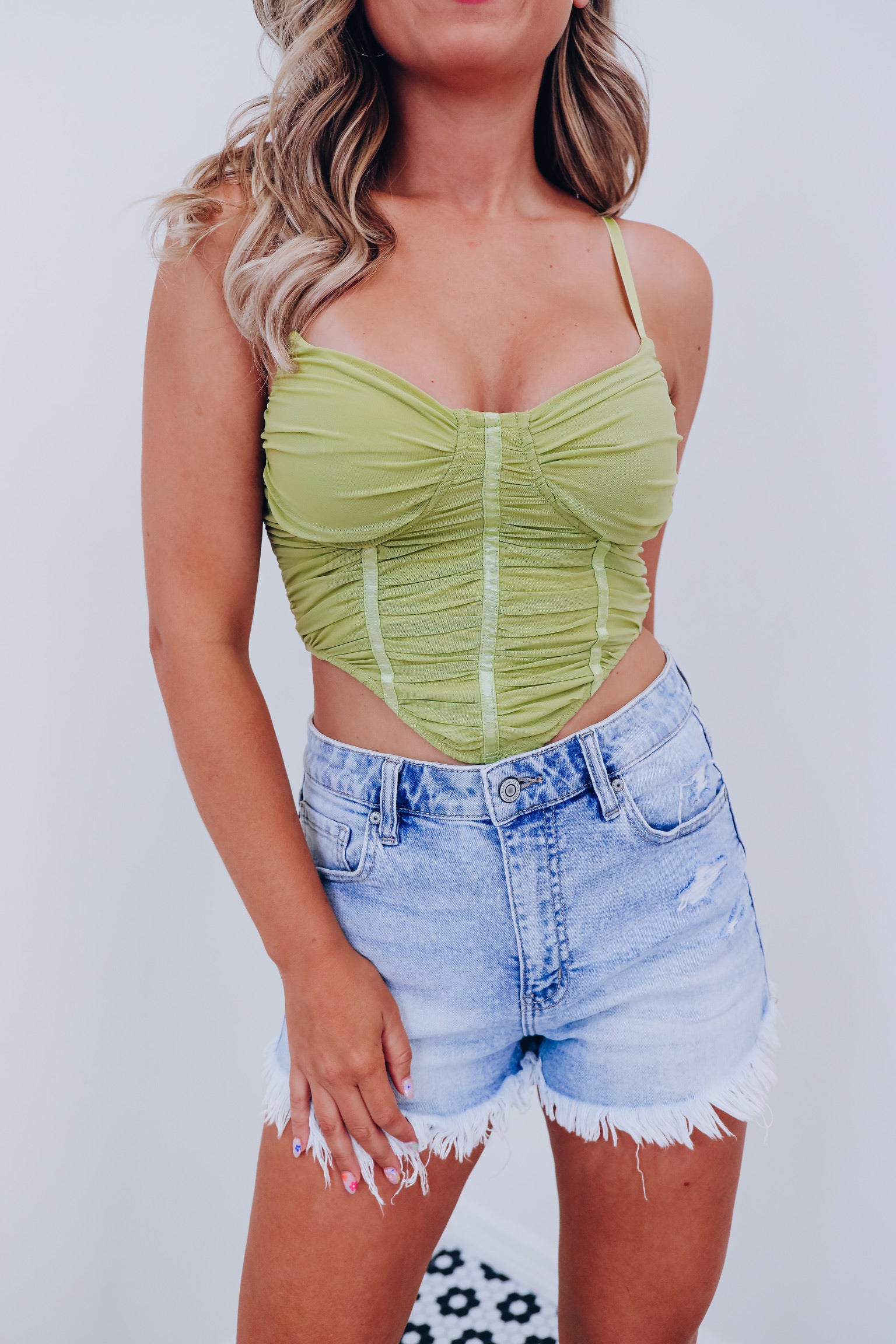 Cali Corset Mesh Crop Top - Green