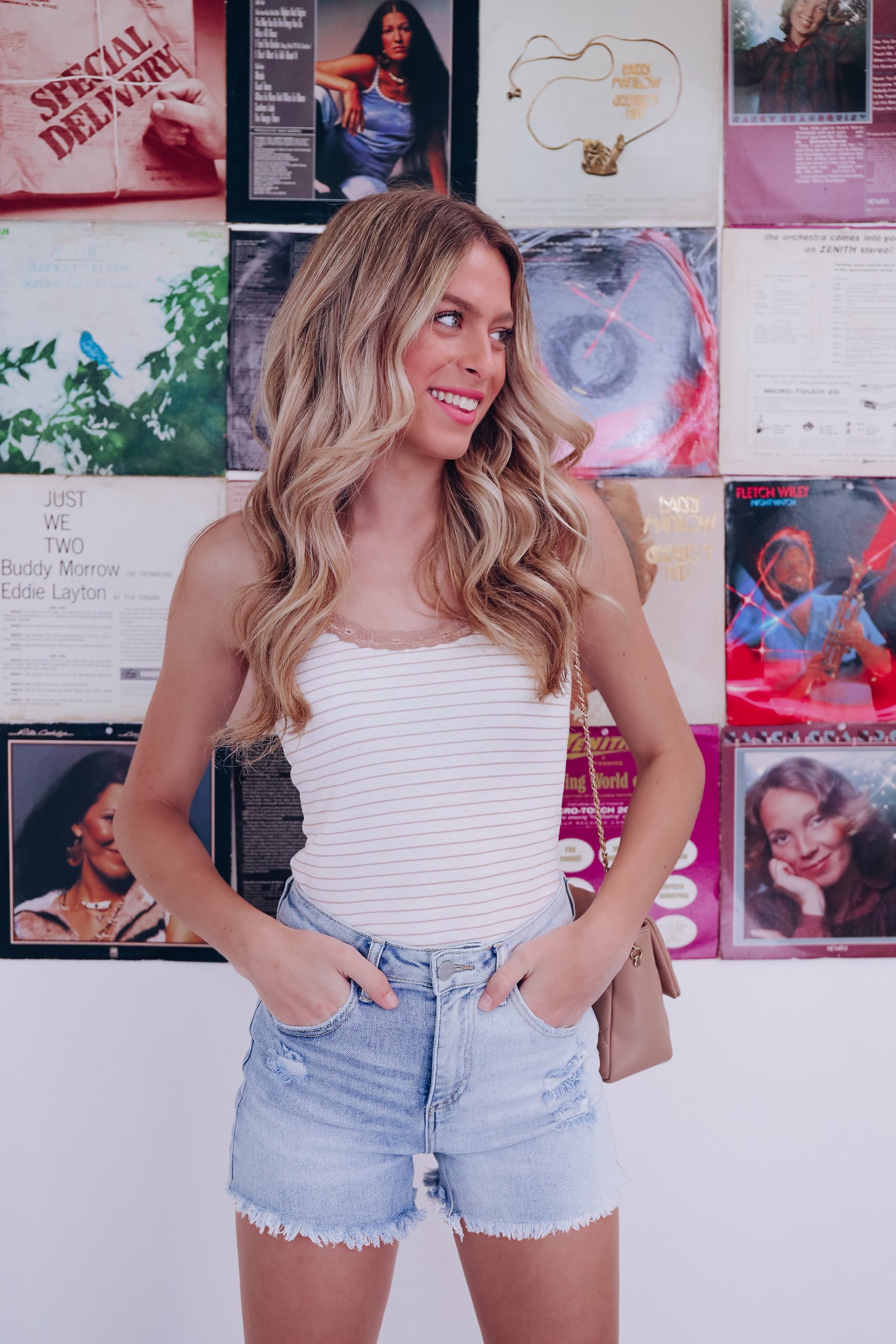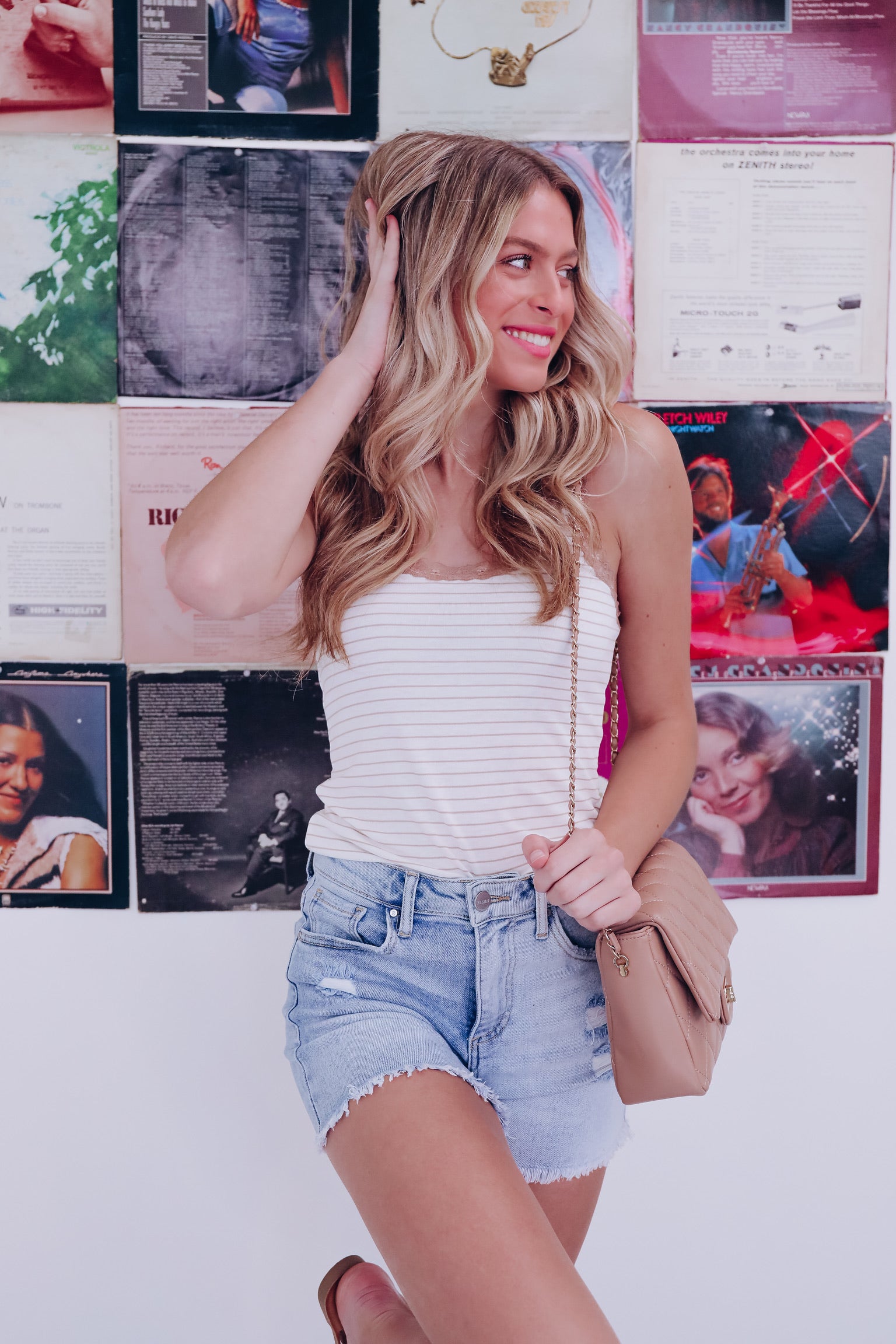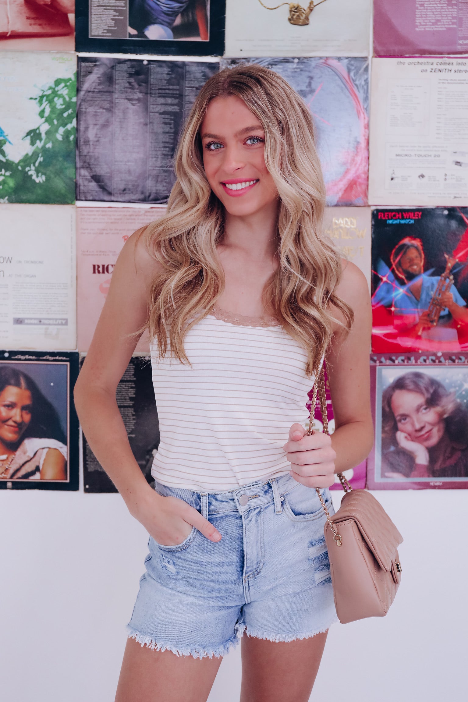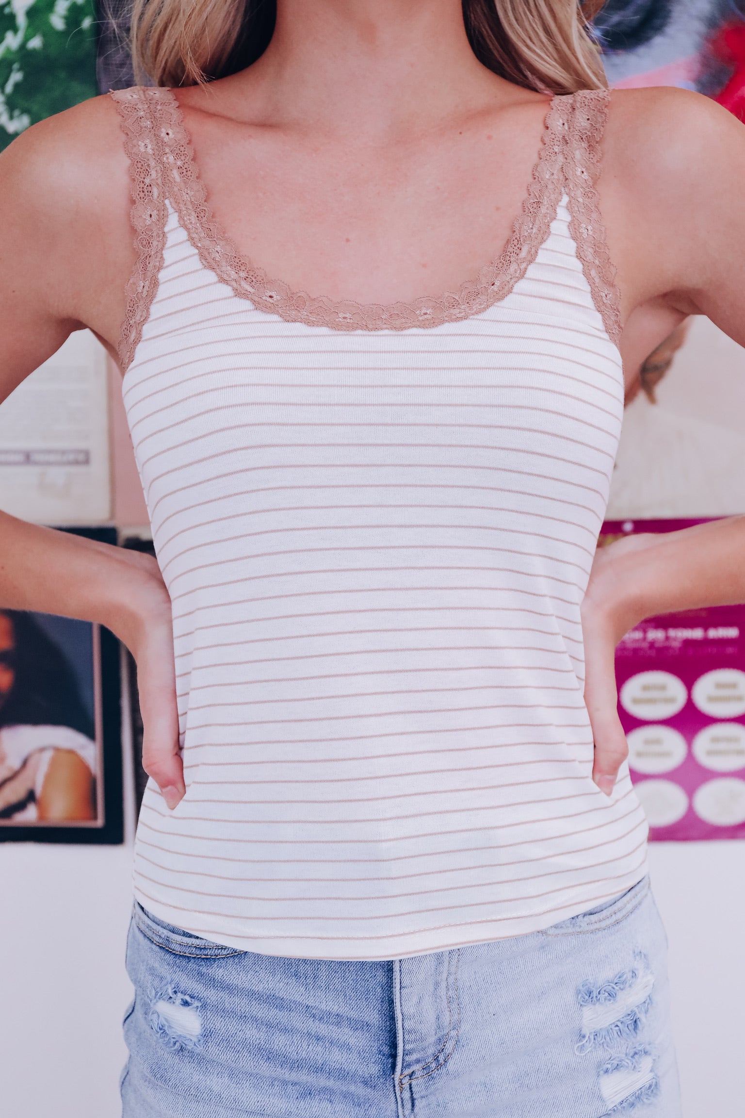 Summer Lace Trimmed Striped Tank - Taupe