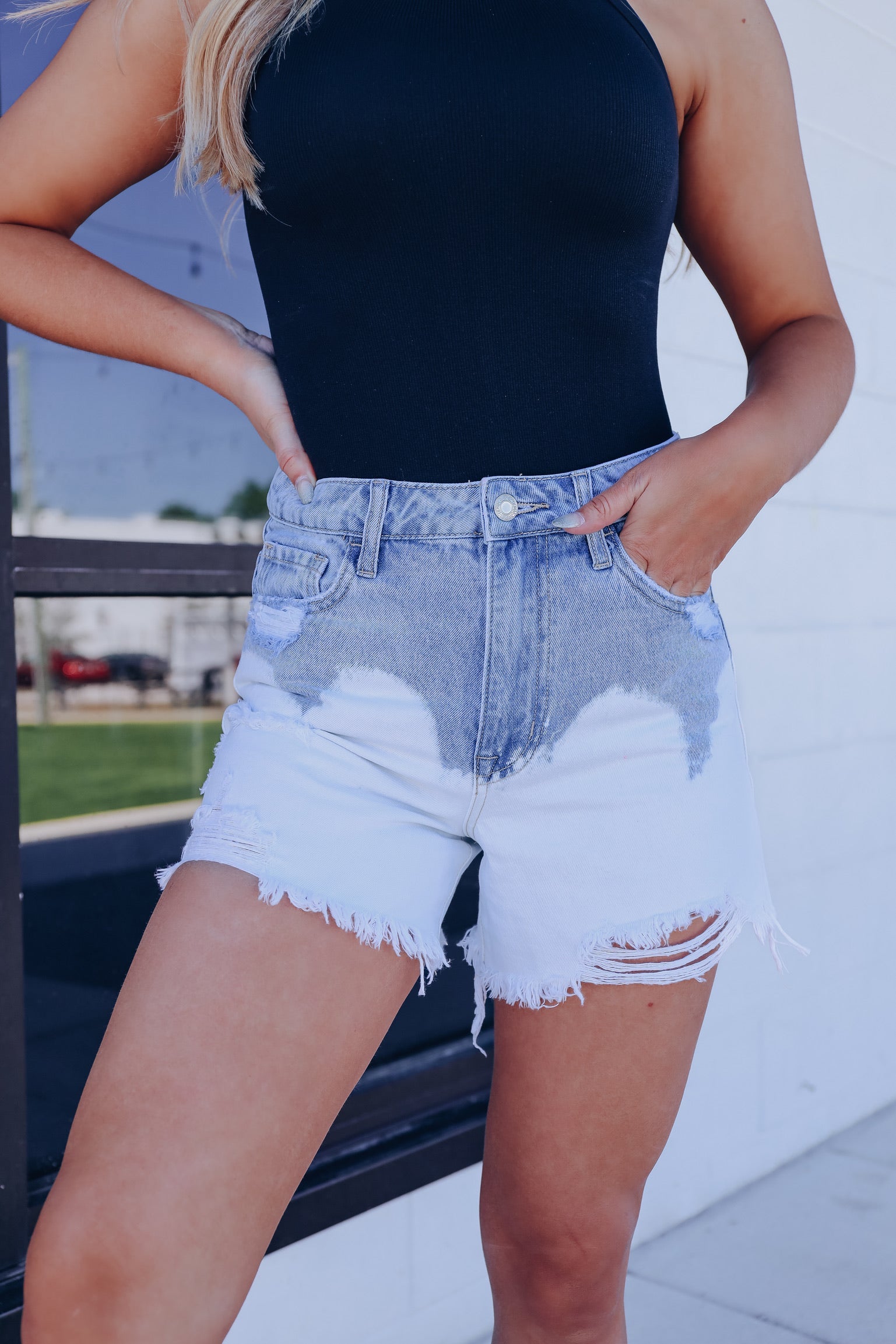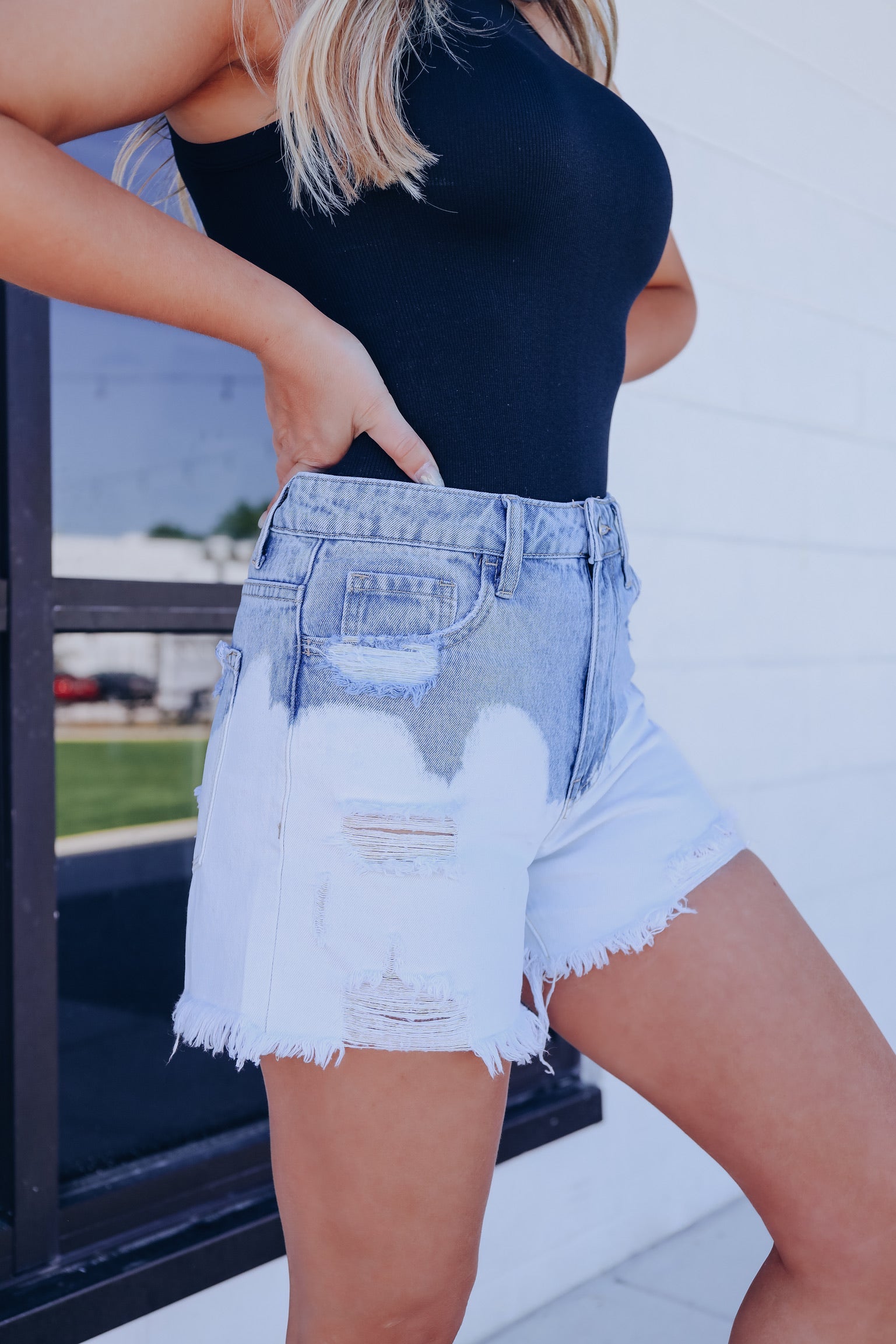 Tamara Two-Tone Dipped Denim Shorts