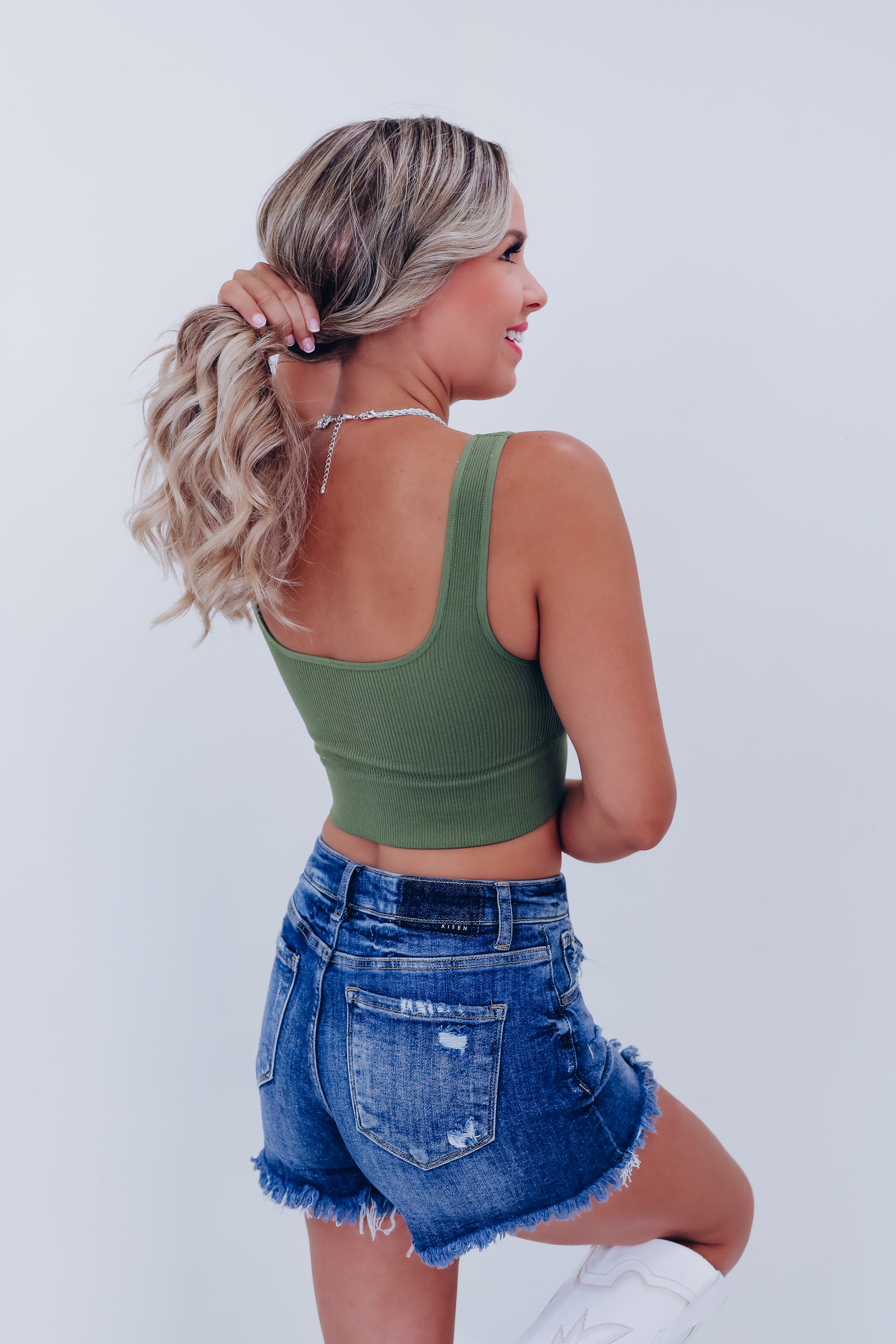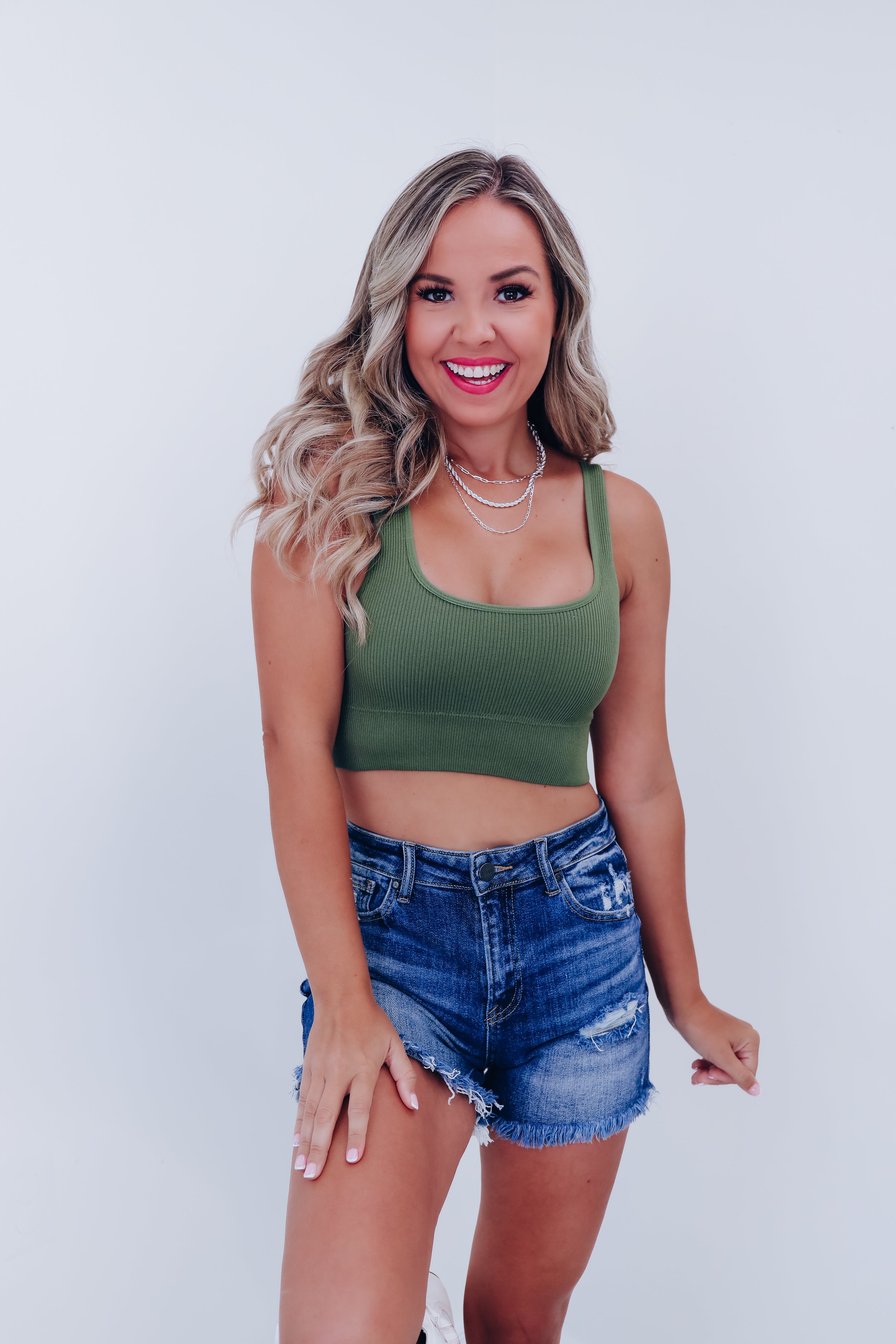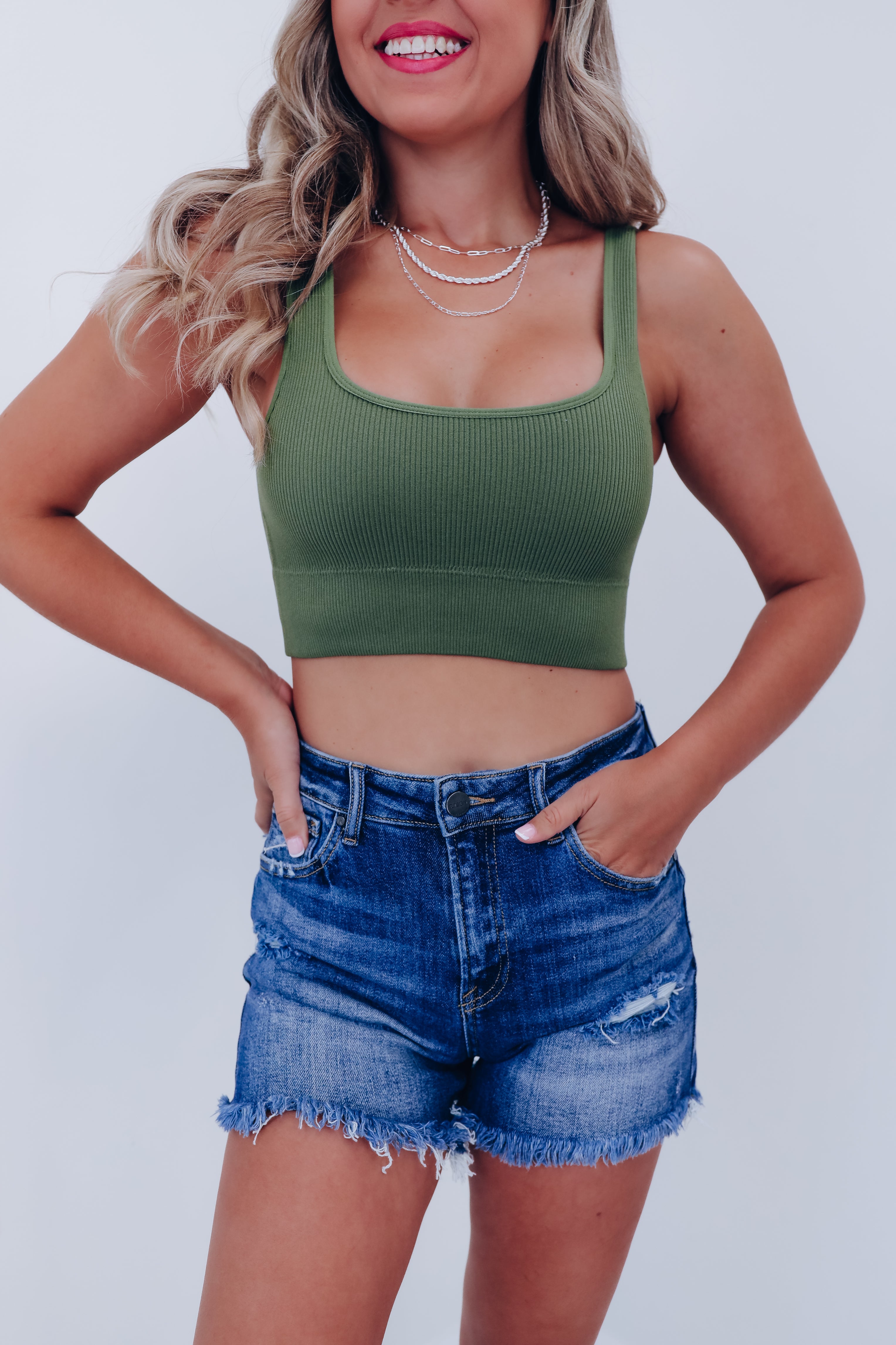 Tiane Ribbed Cropped Tank - Olive