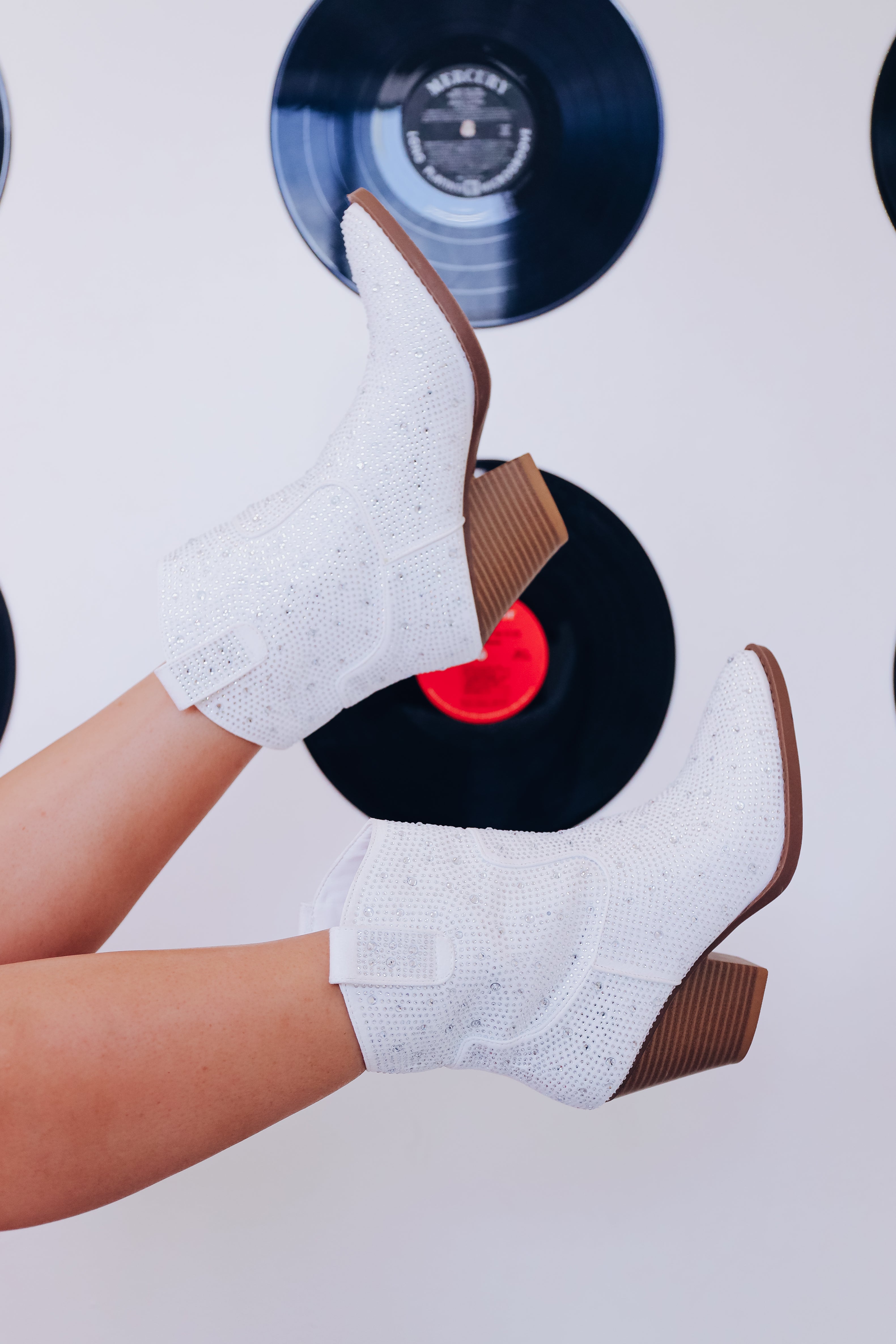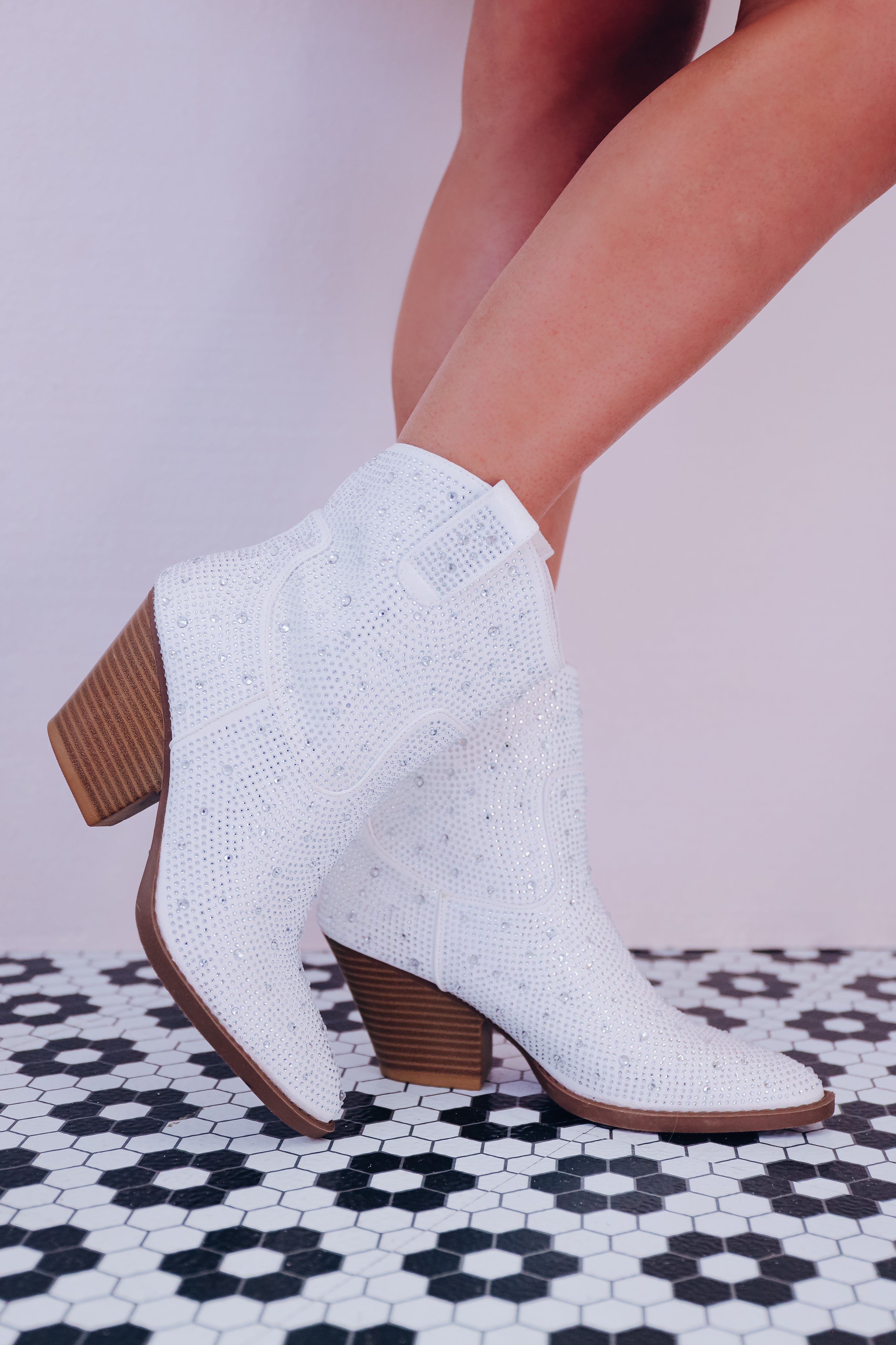 Walker Western Rhinestone Booties - White