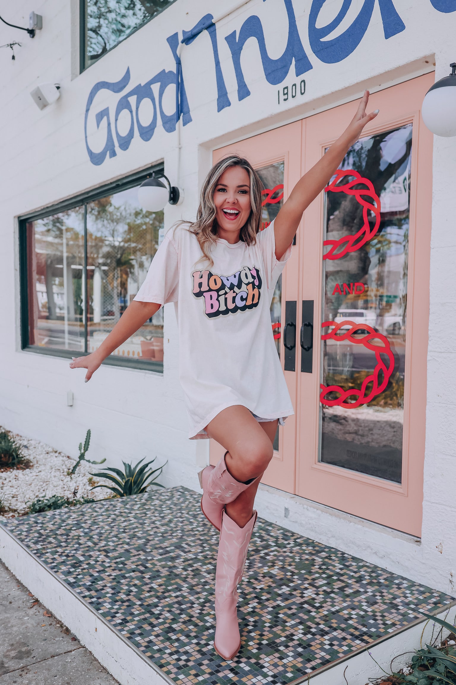 Howdy B Graphic Tee - Light Pink