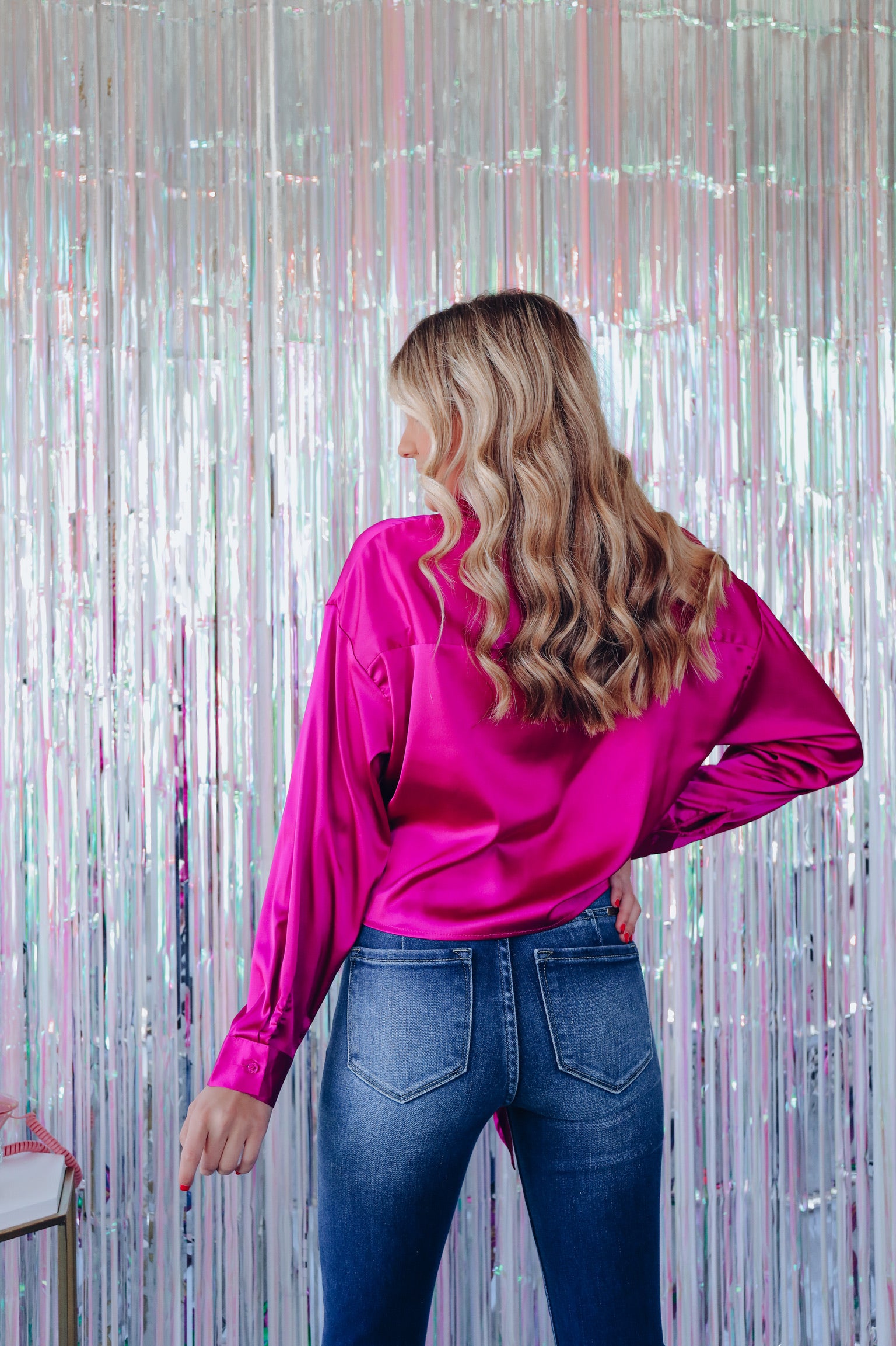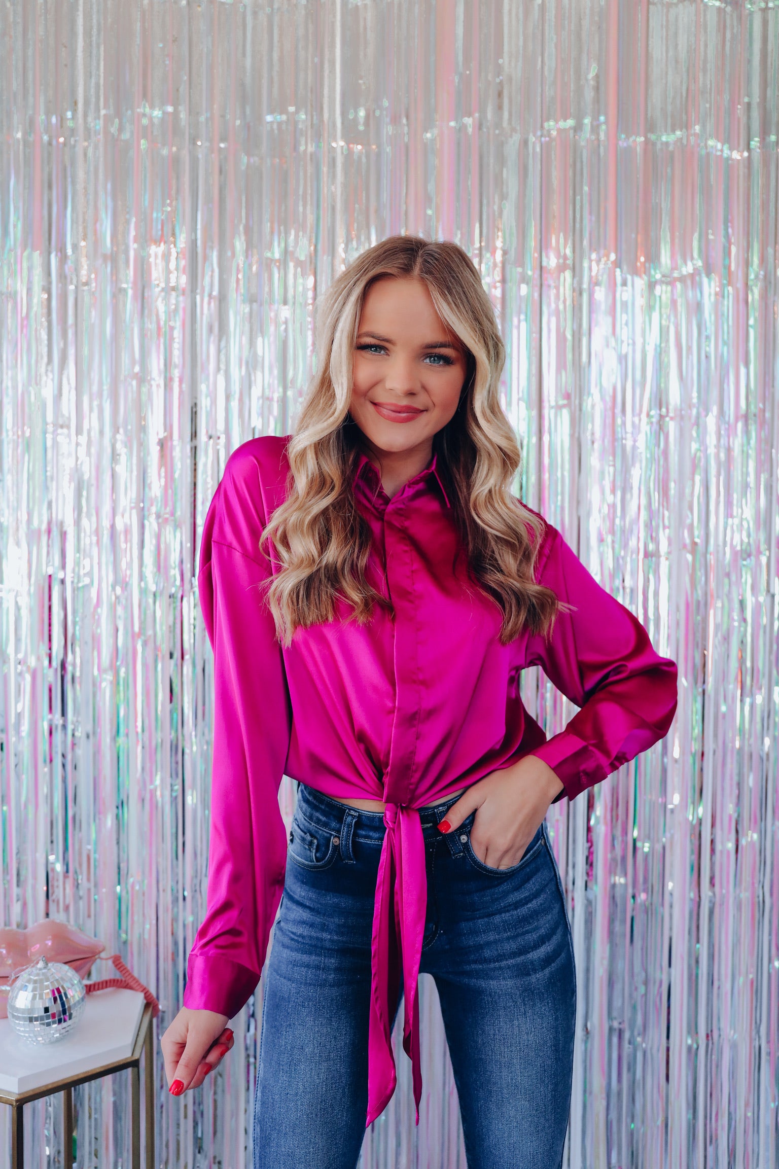 Exclusively Yours Tie Front Collard Blouse - Magenta