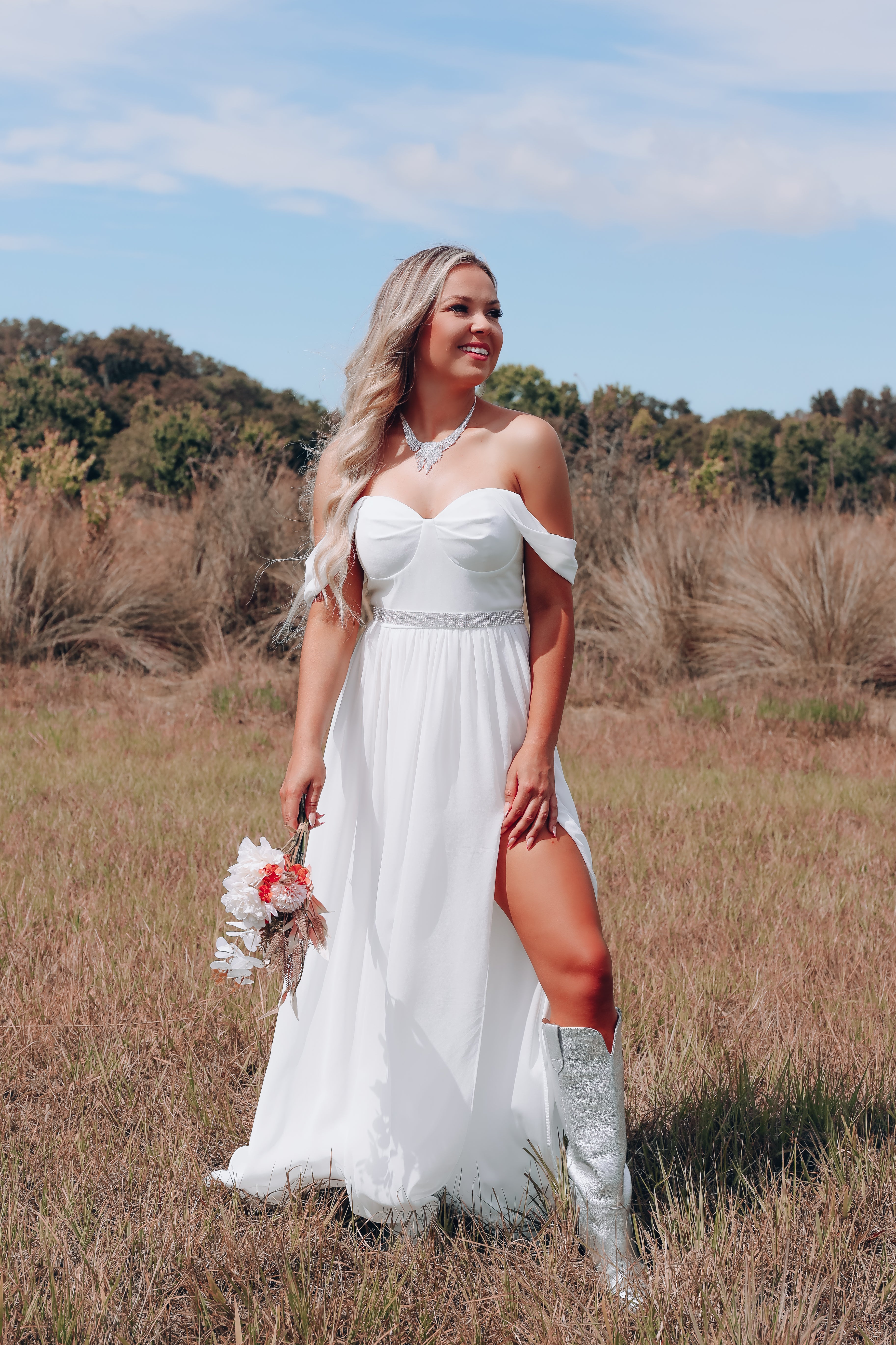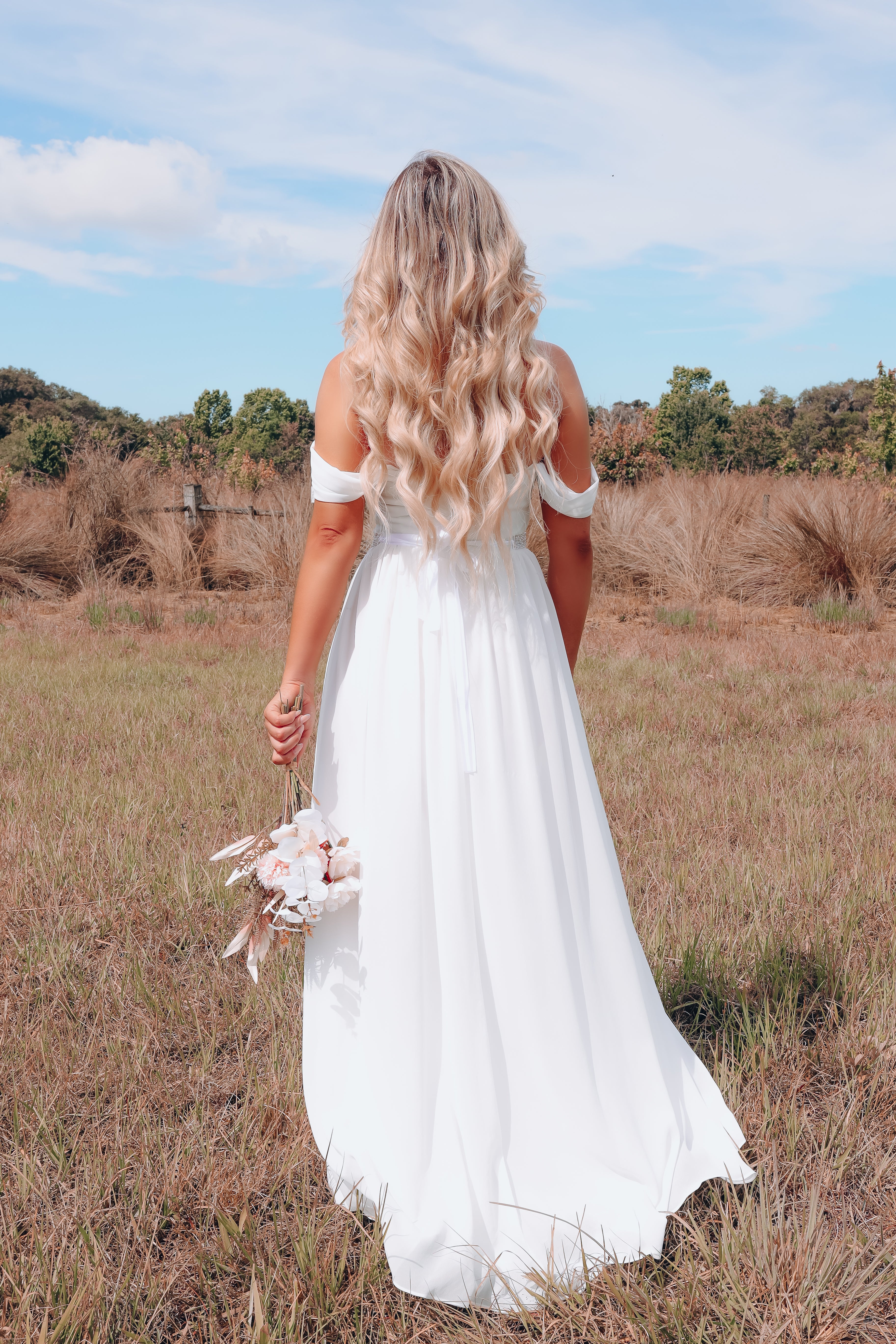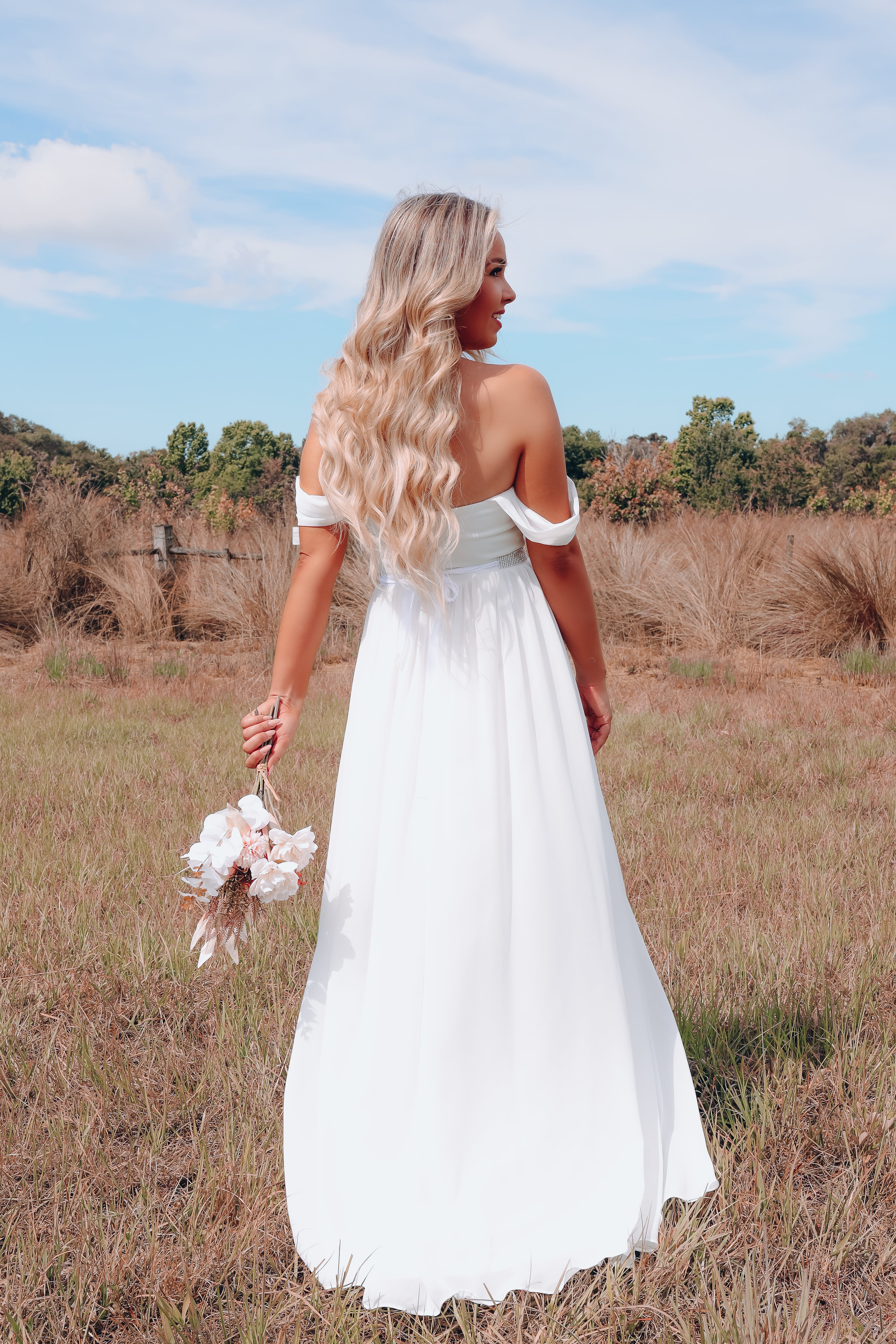 Boho Bride Off Shoulder Cap Sleeve Dress - Ivory