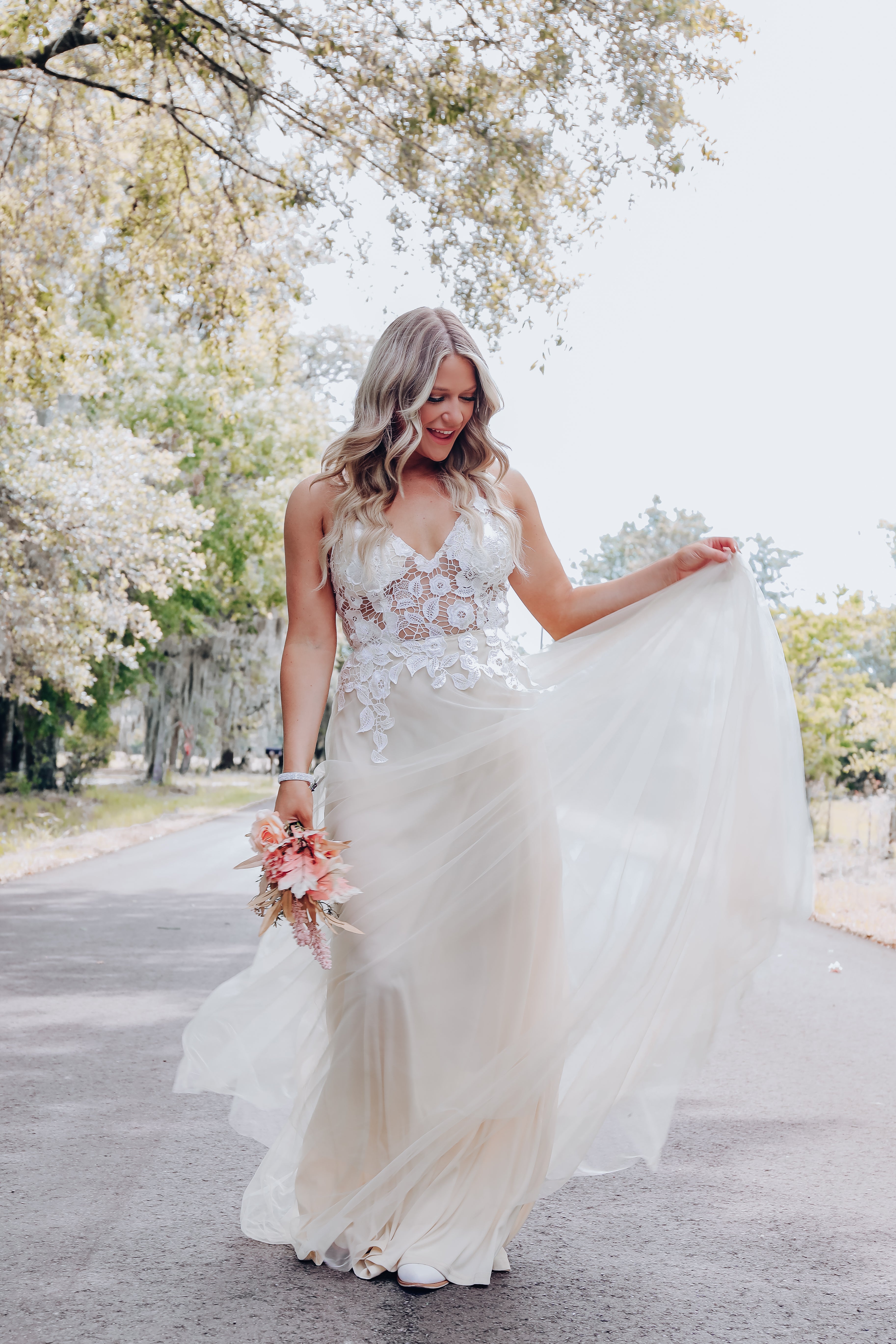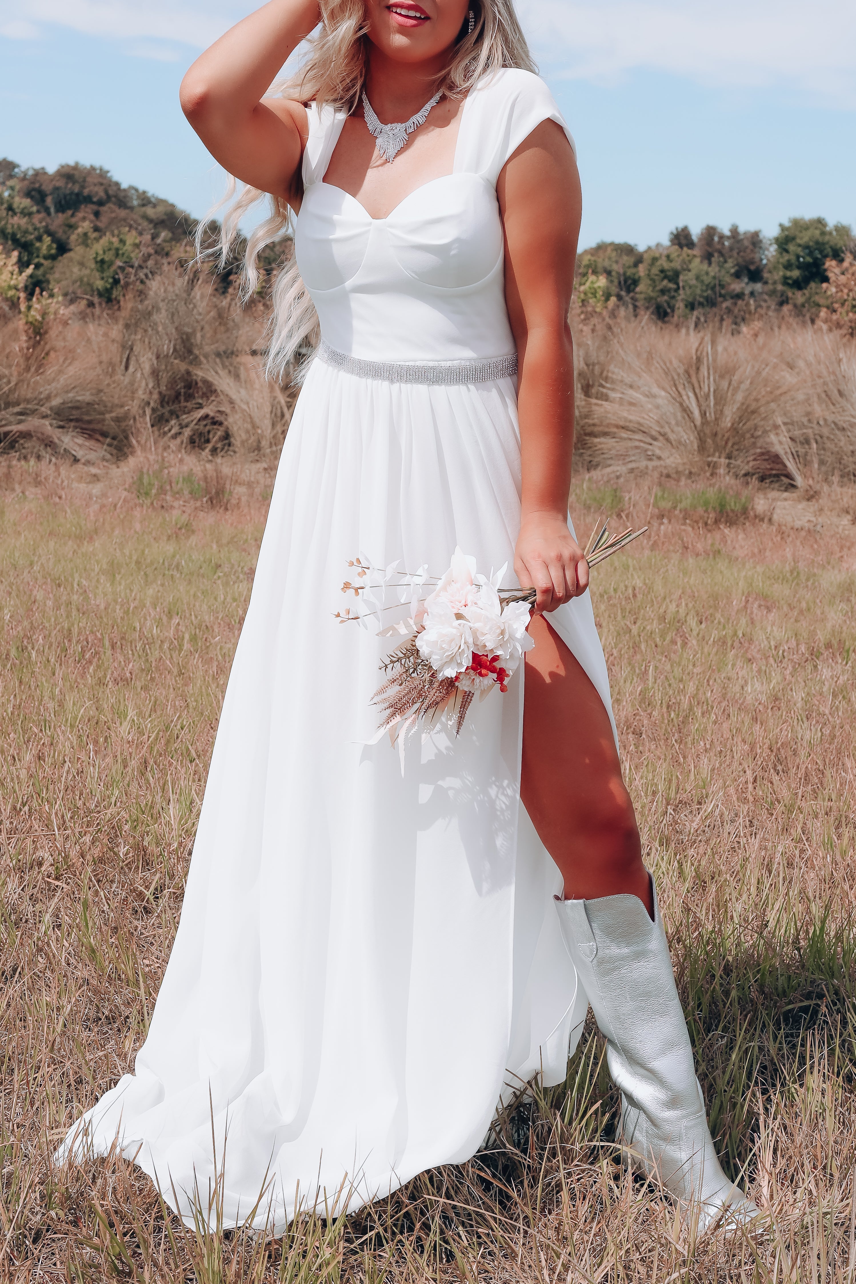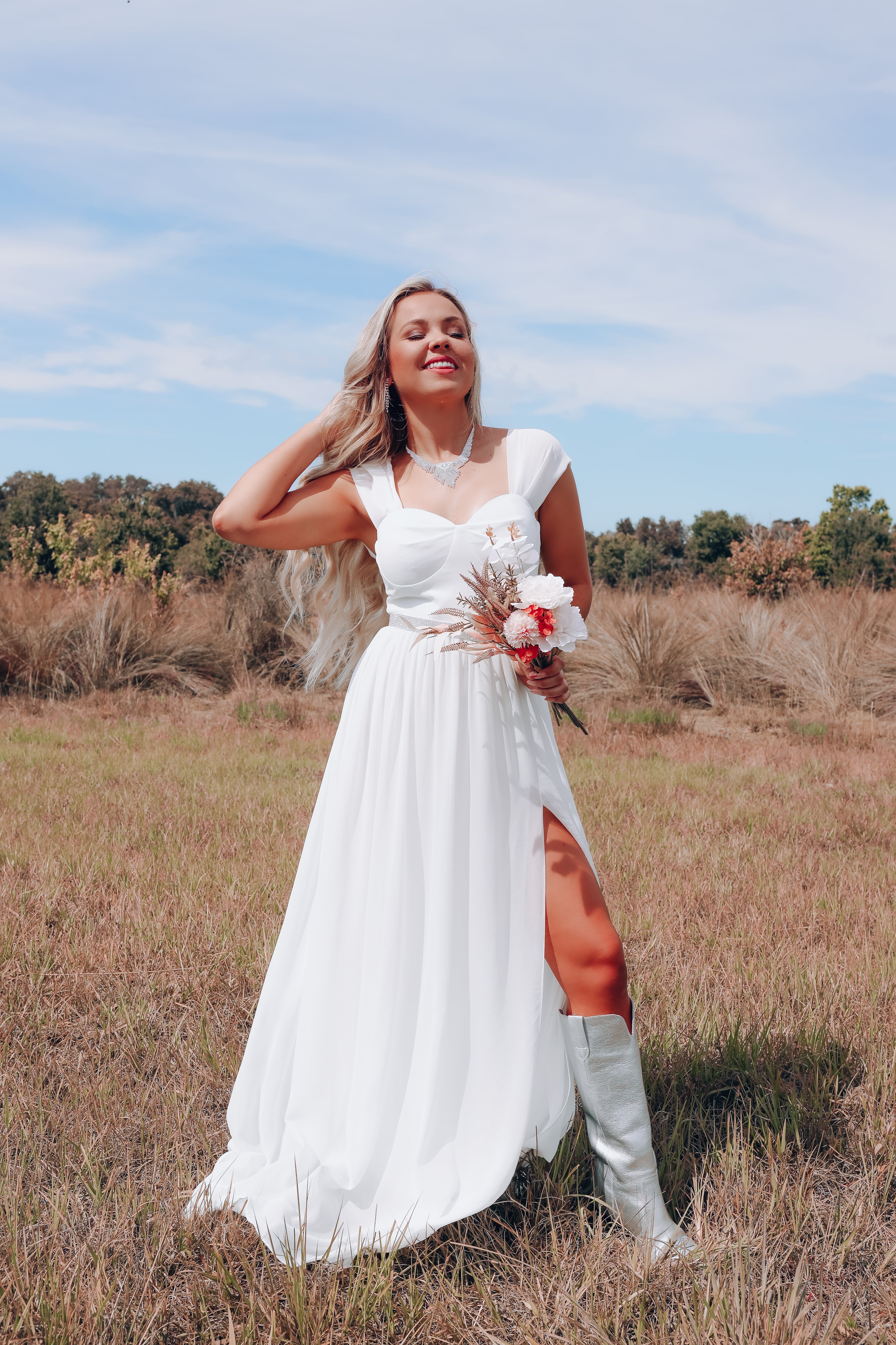 Boho Bride Off Shoulder Cap Sleeve Dress - Ivory