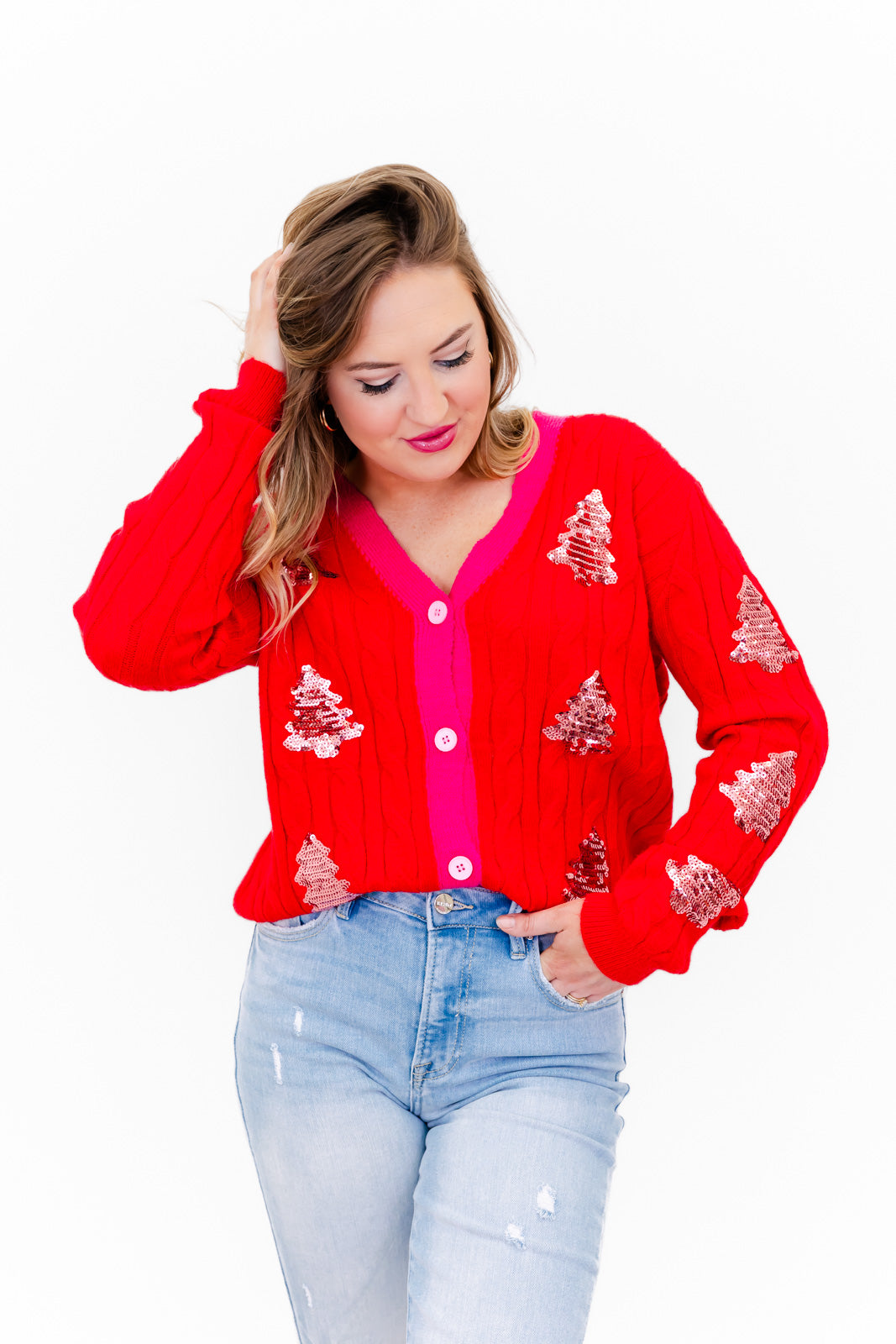 Cascading Pink Bow Christmas Tree Graphic Sweatshirt