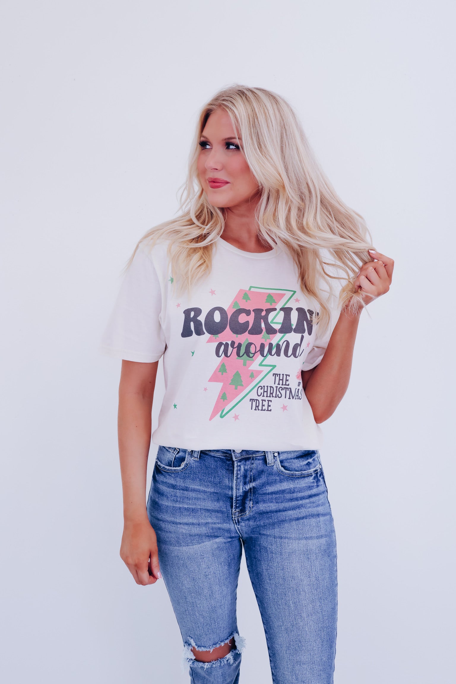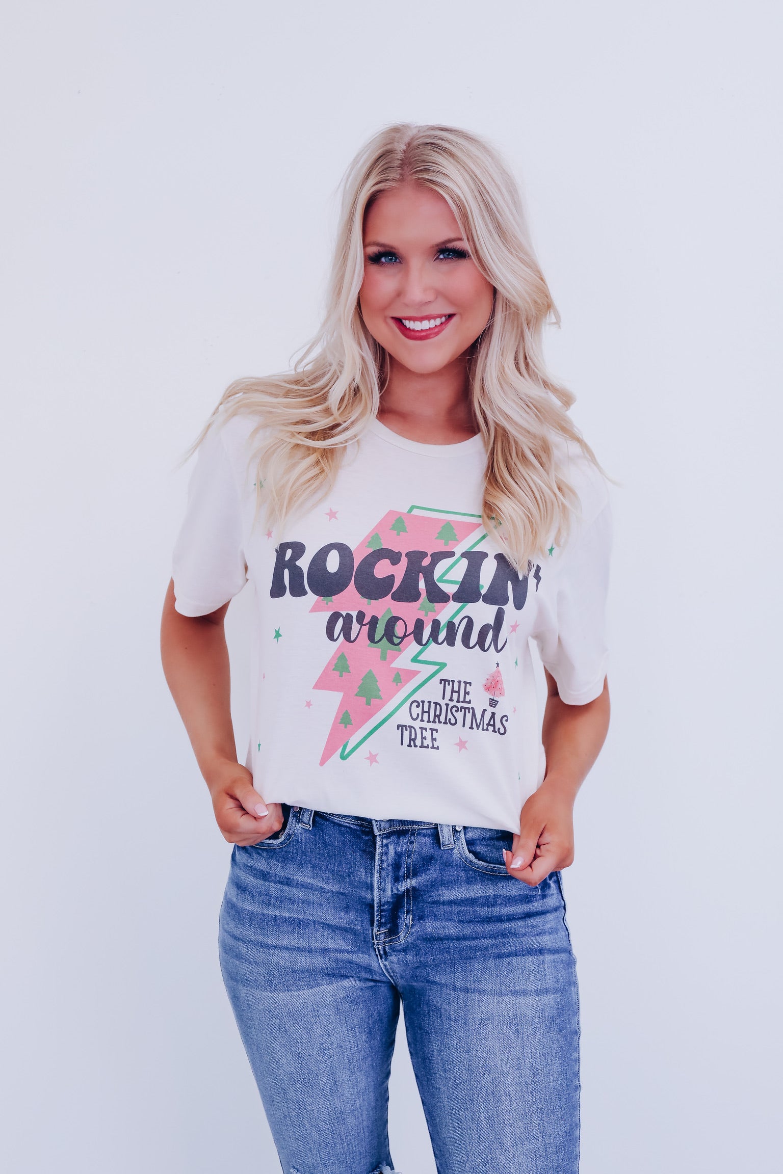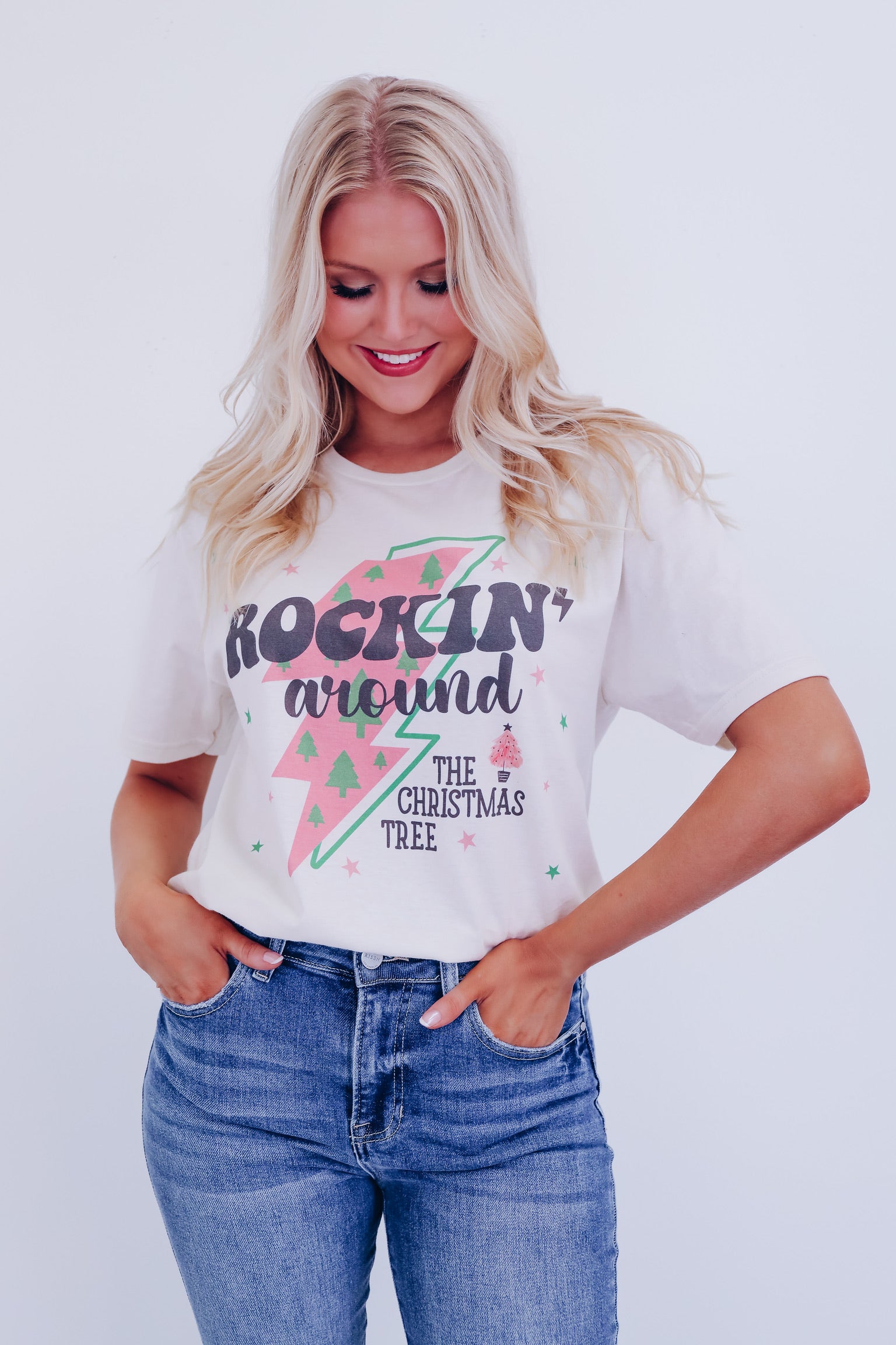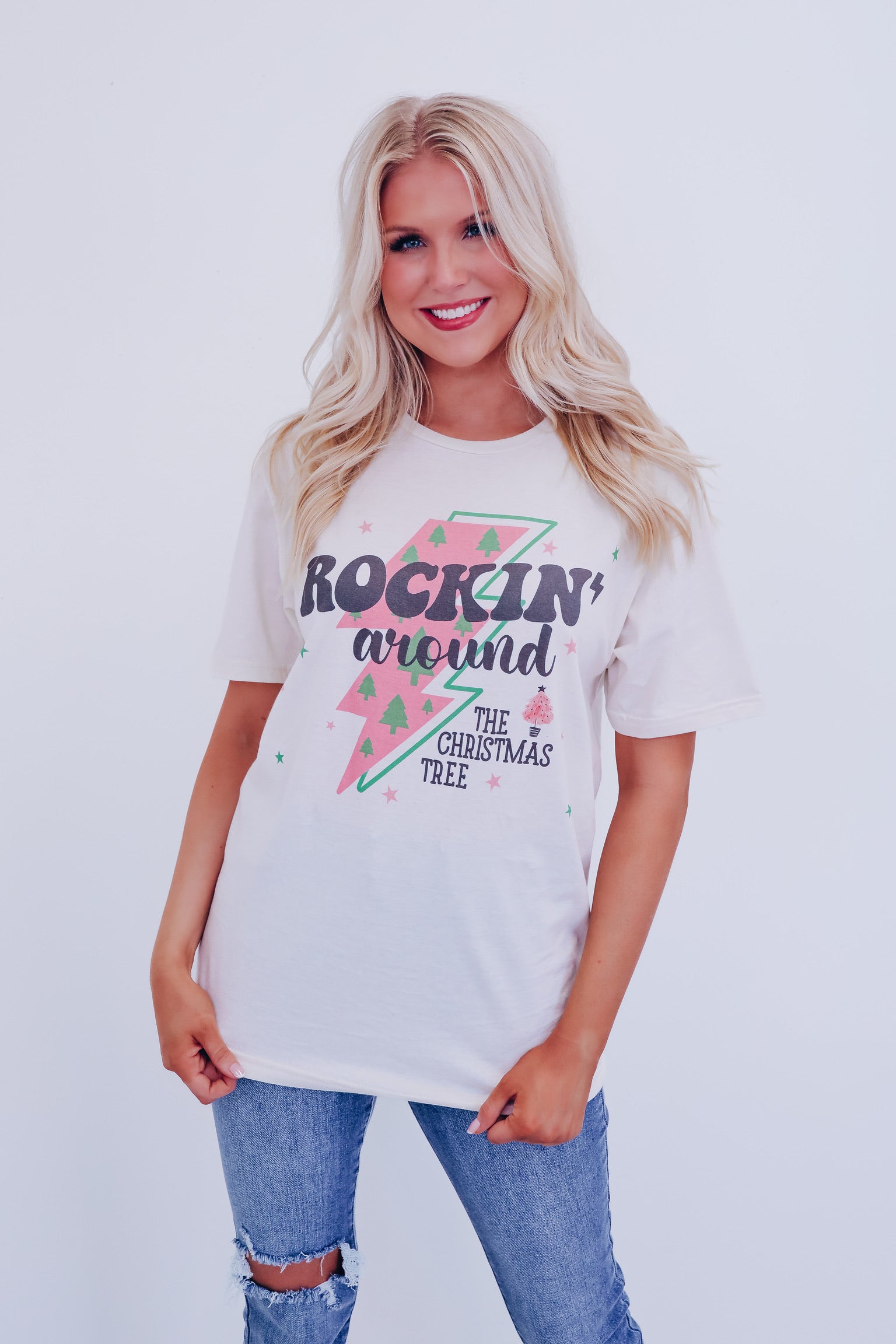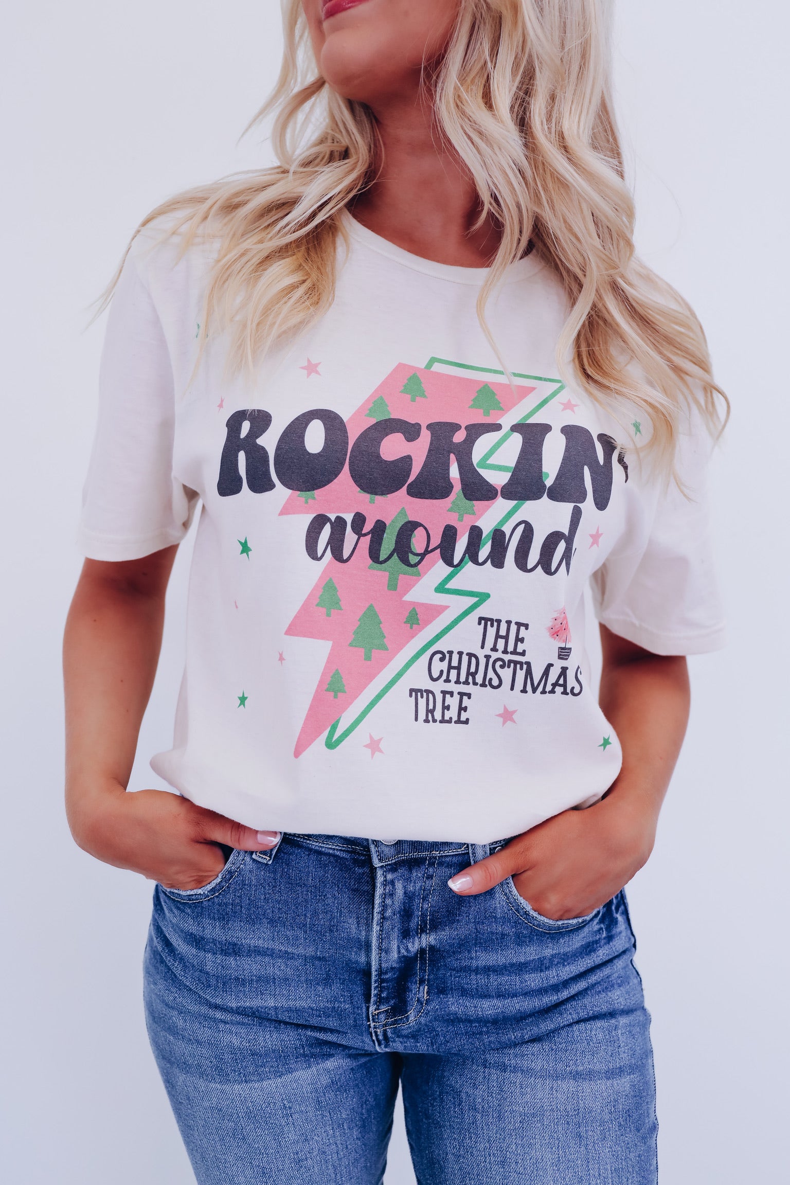 Rockin' Around The Christmas Tree Graphic Tee - Natural