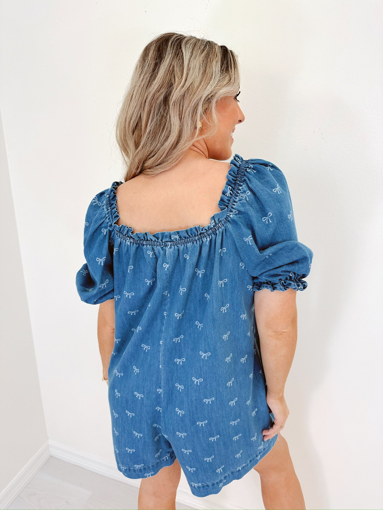 Are you a bow girly? Our 'Bout Them Bows Denim Romper is not only on trend, it's a little sassy and comfy too! This go to romper will be so cute styled with simple jewelry and wedge sandals for a cutesy OOTD.
