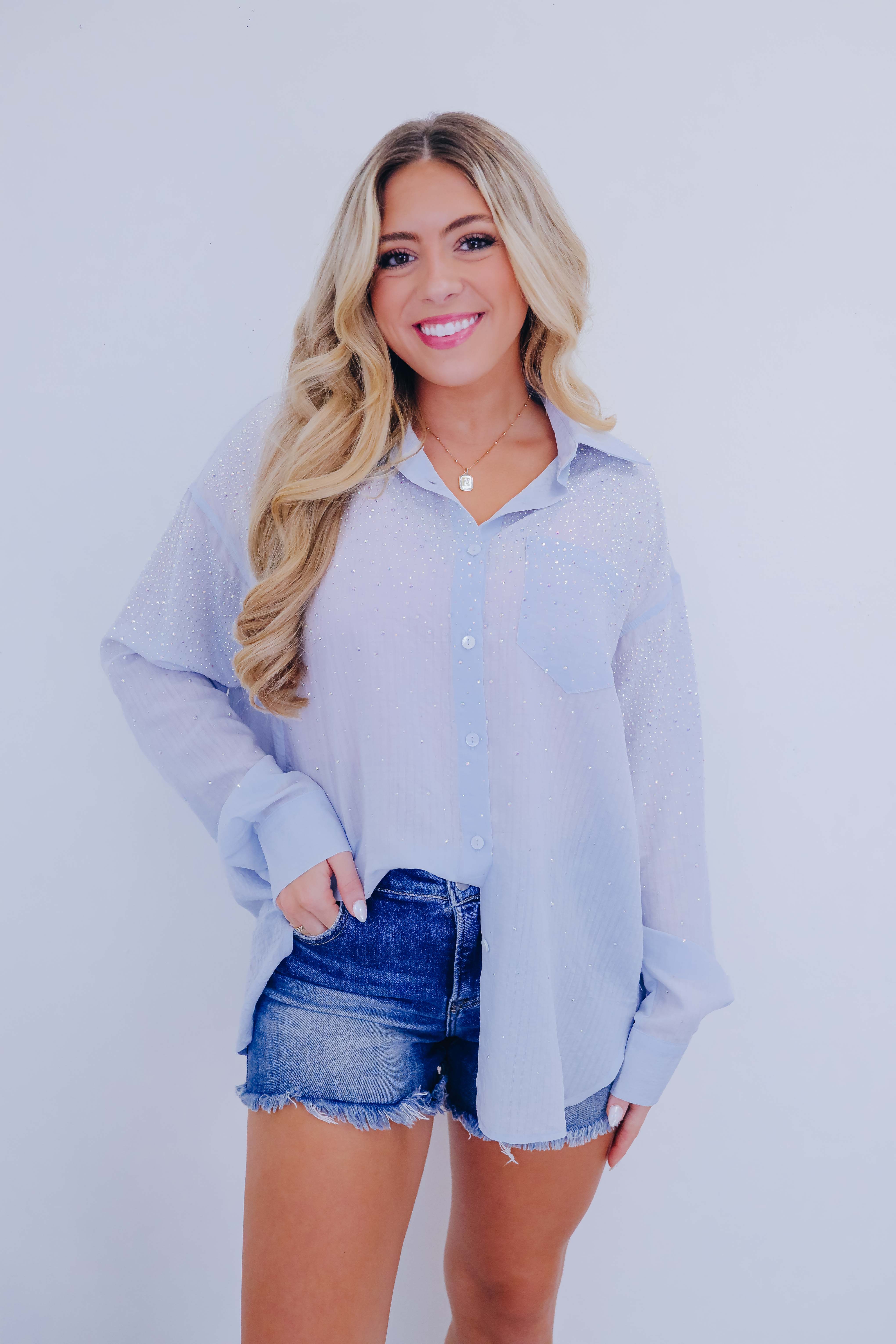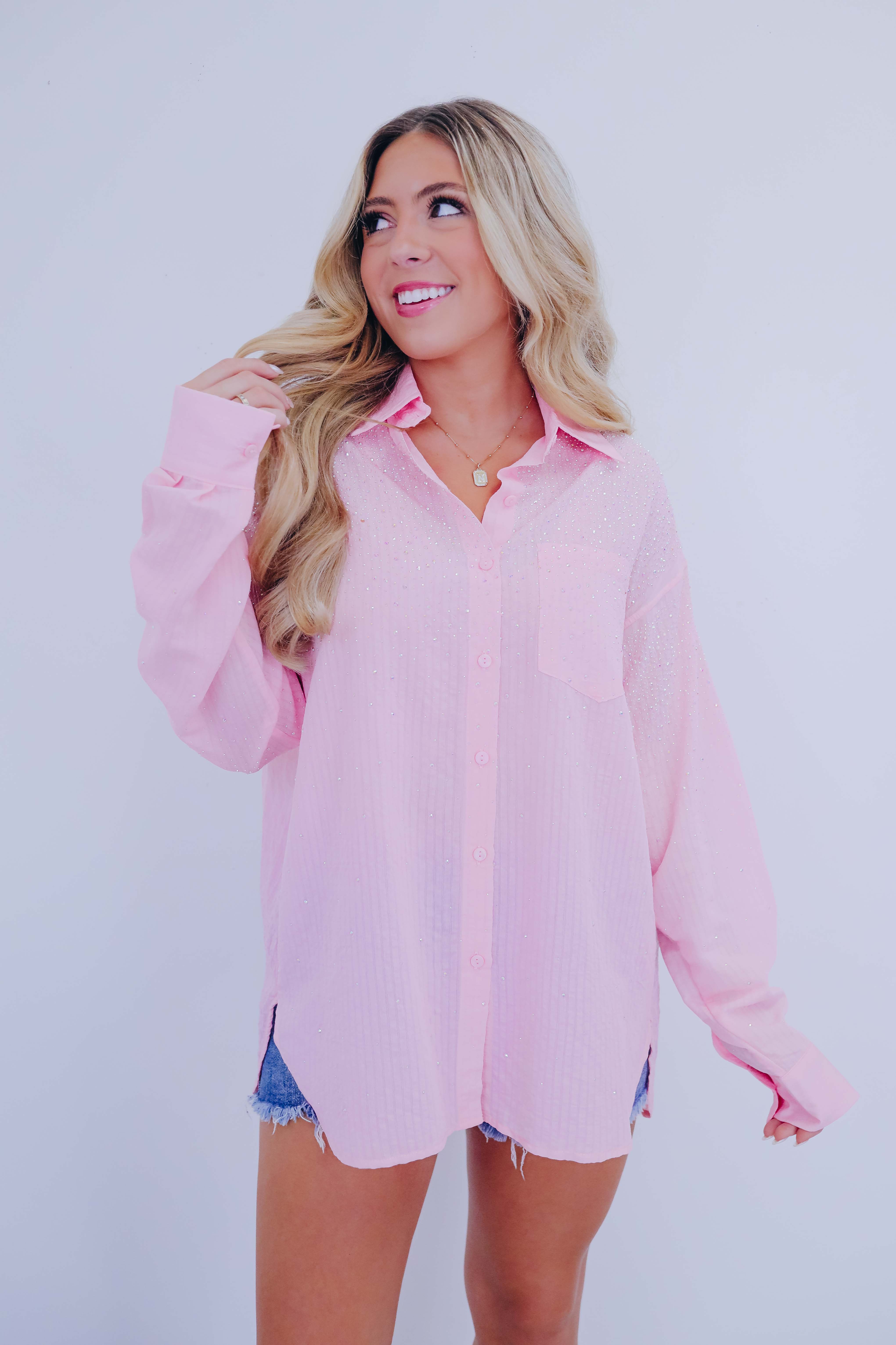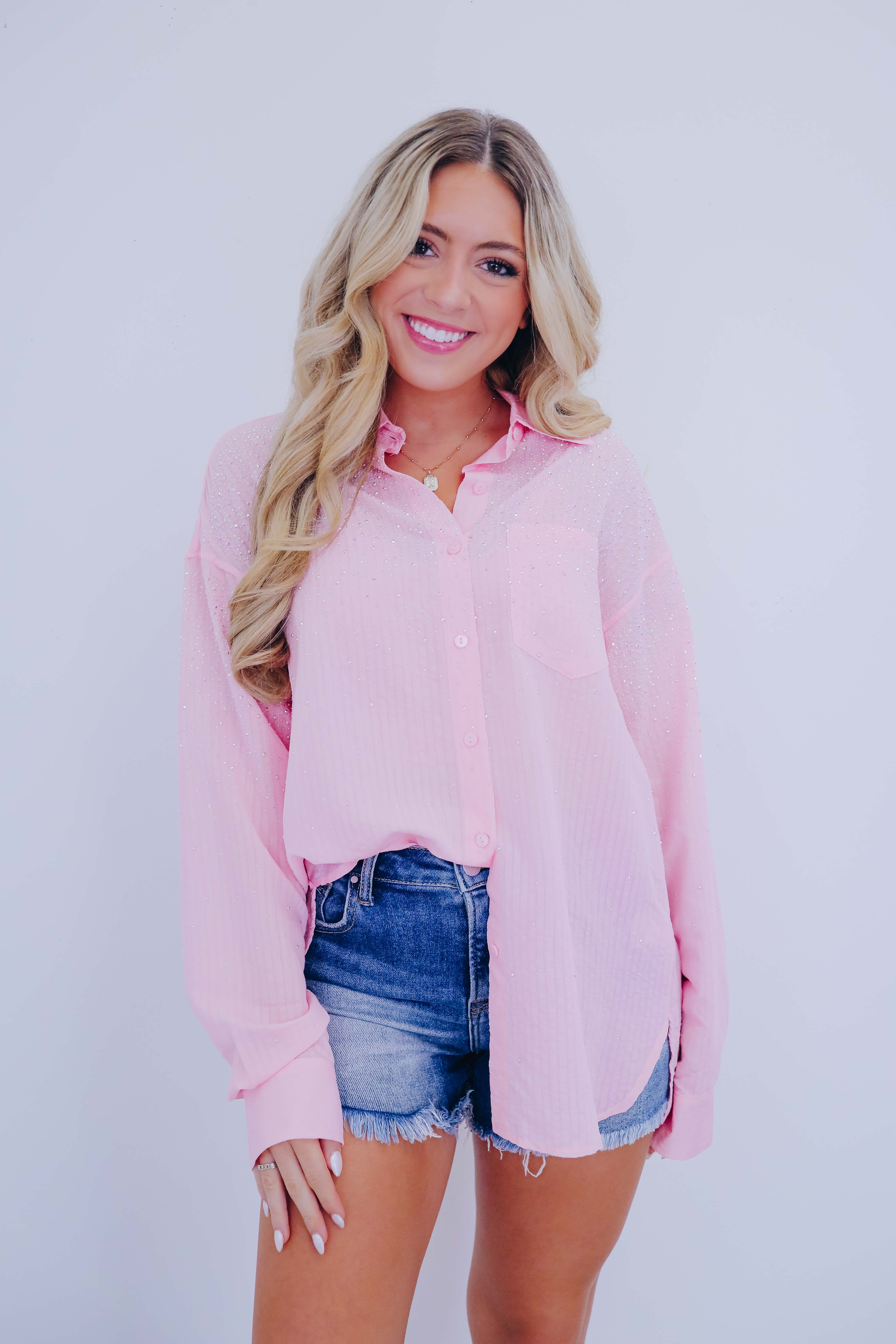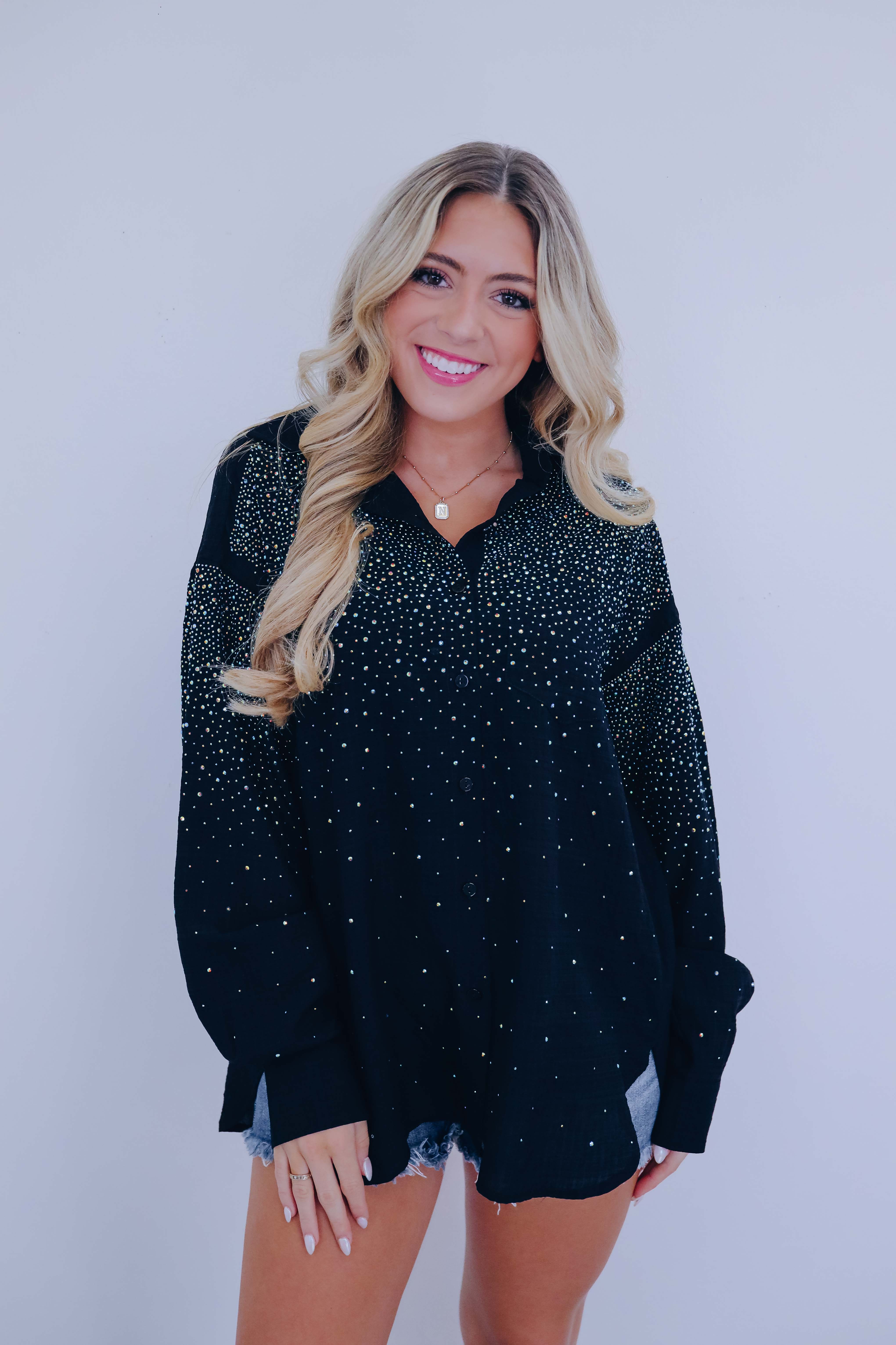 Cascading Rhinestone Button Up Shirt - 4 Colors