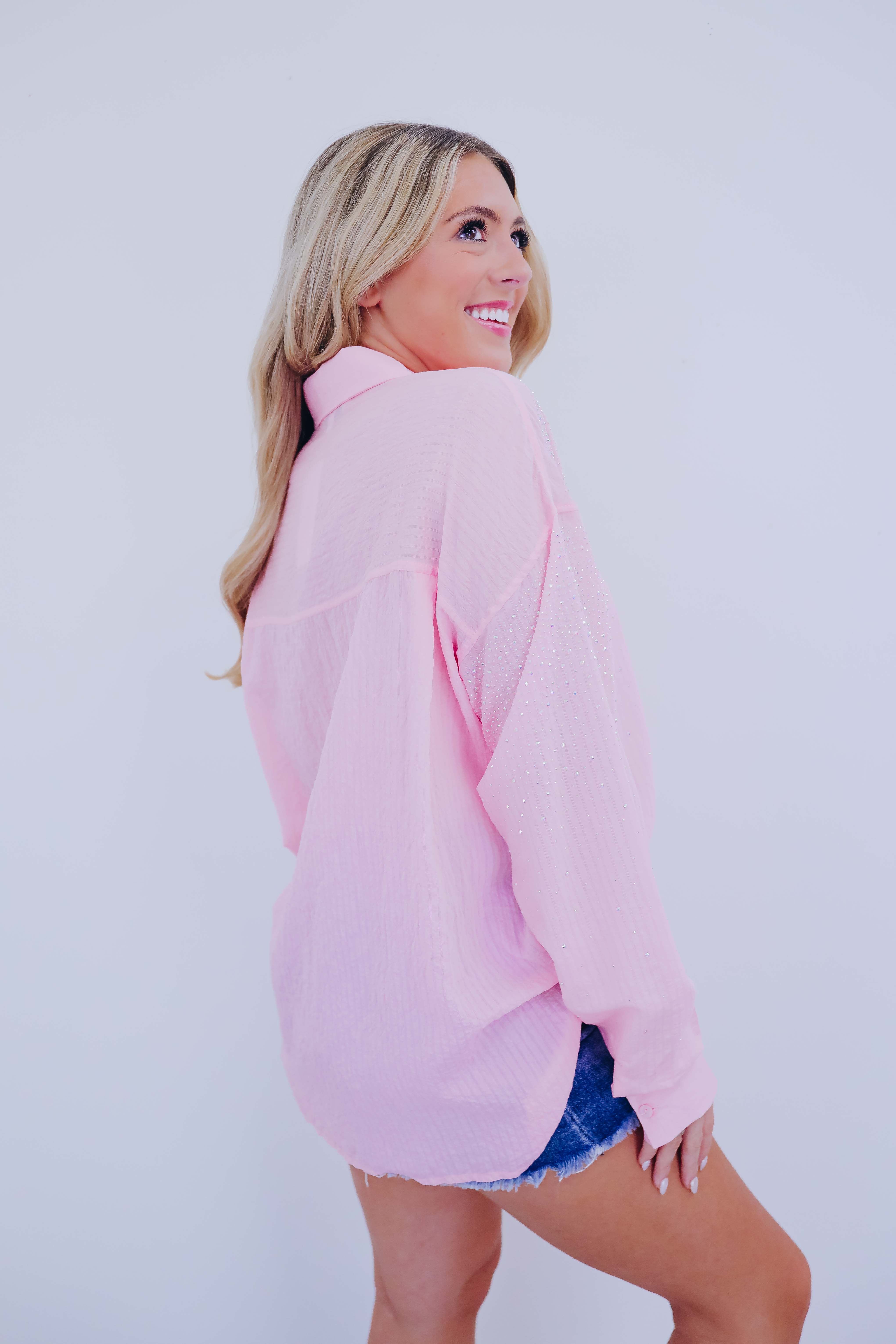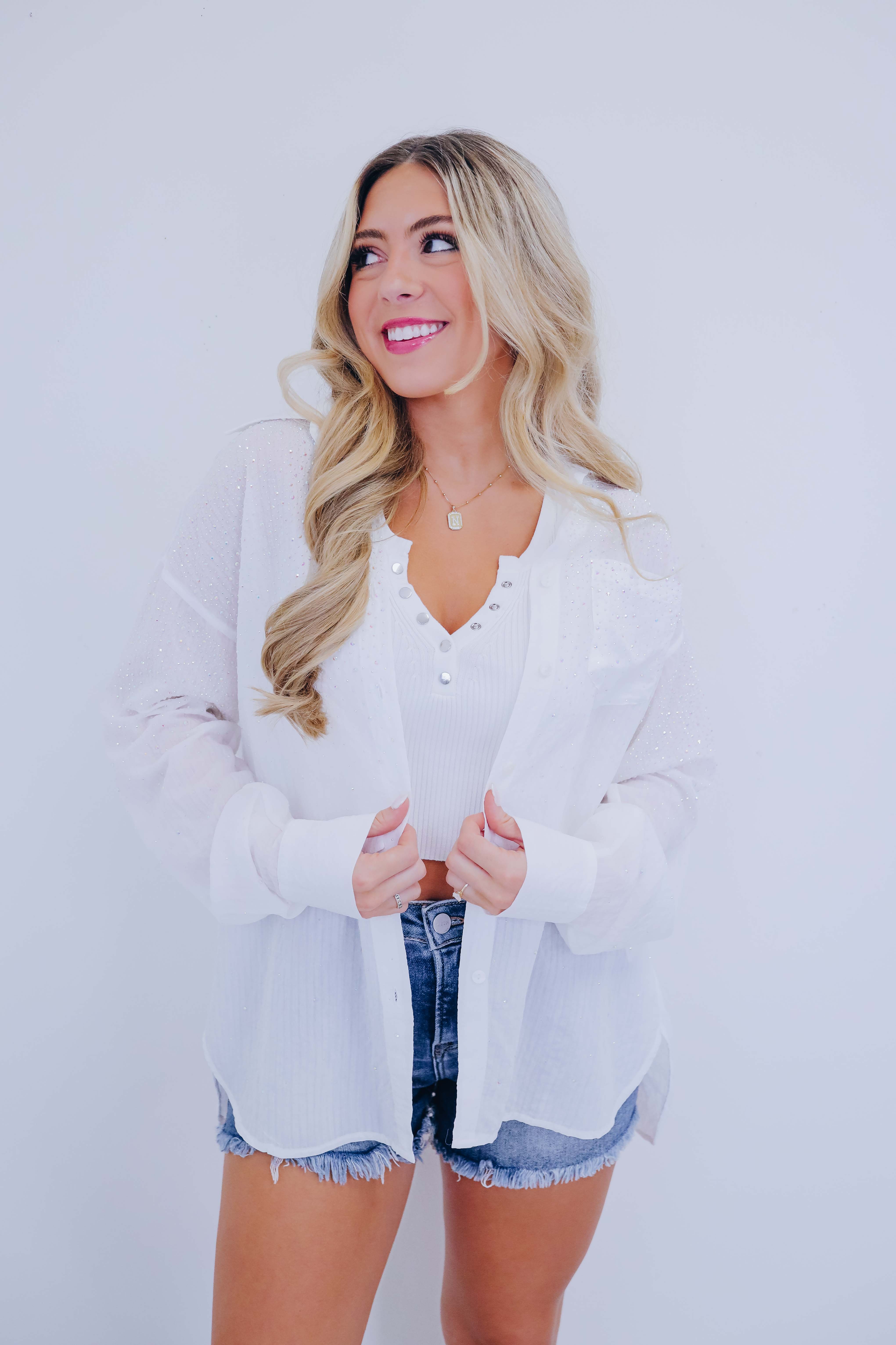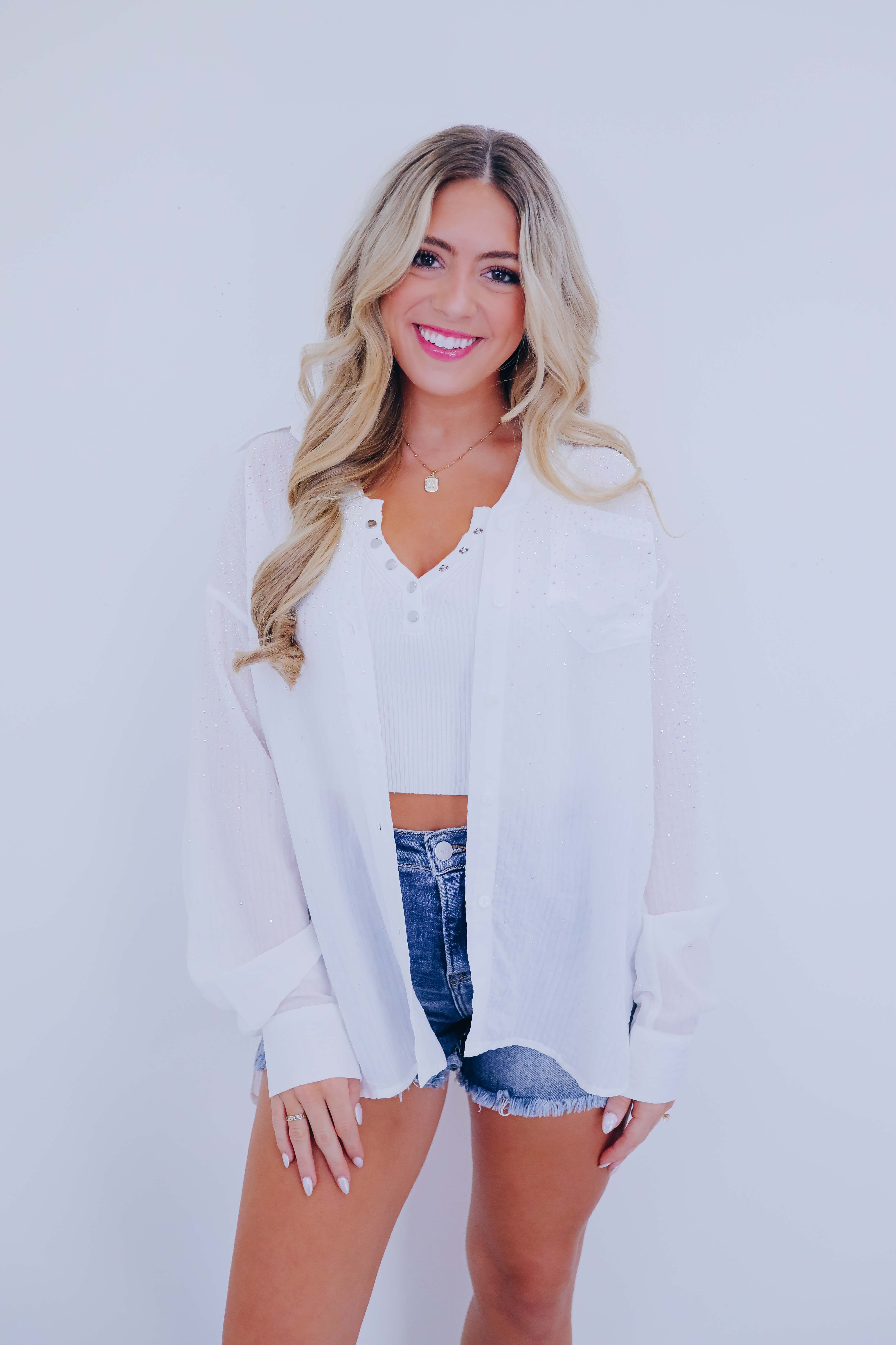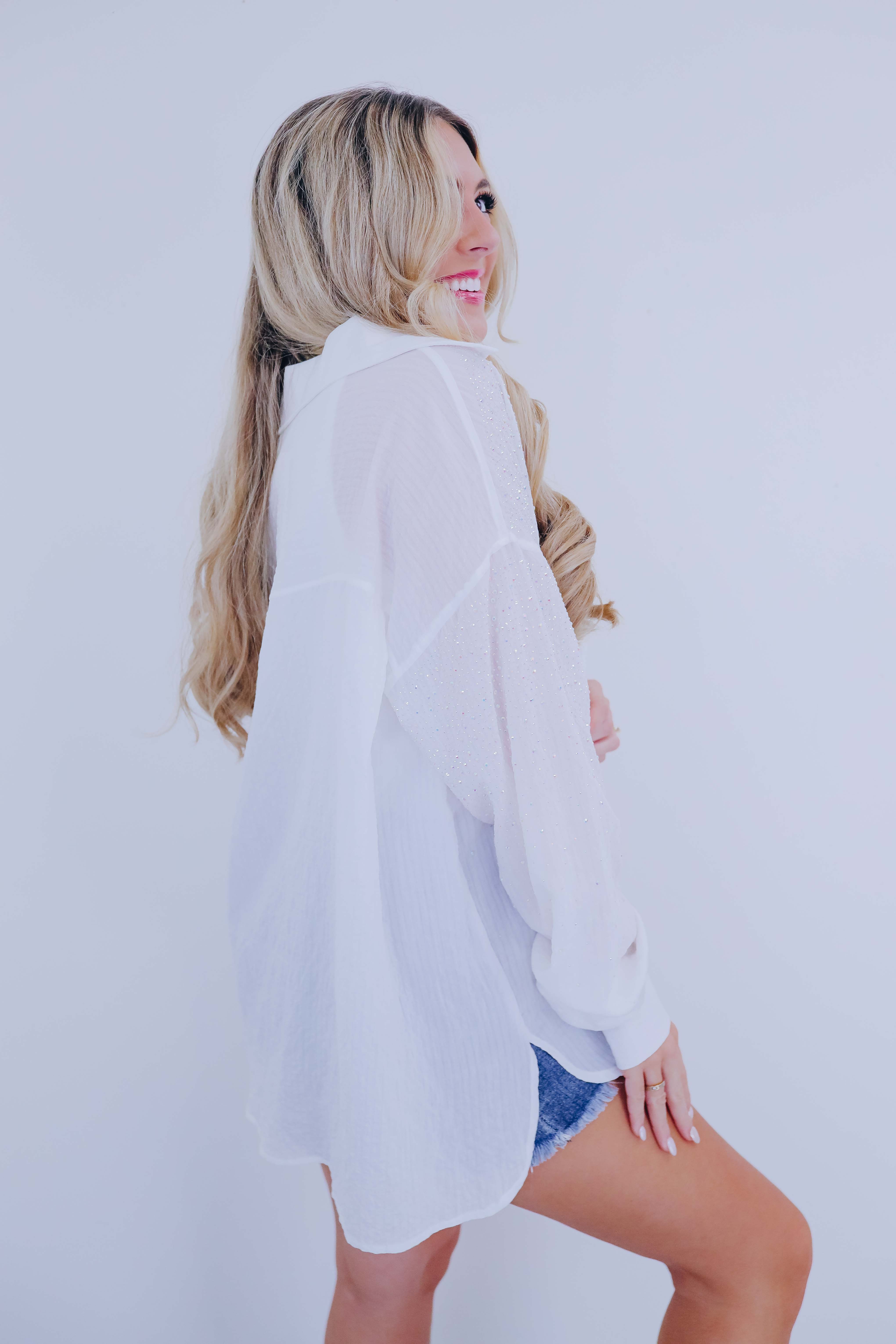 Cascading Rhinestone Button Up Shirt - 4 Colors