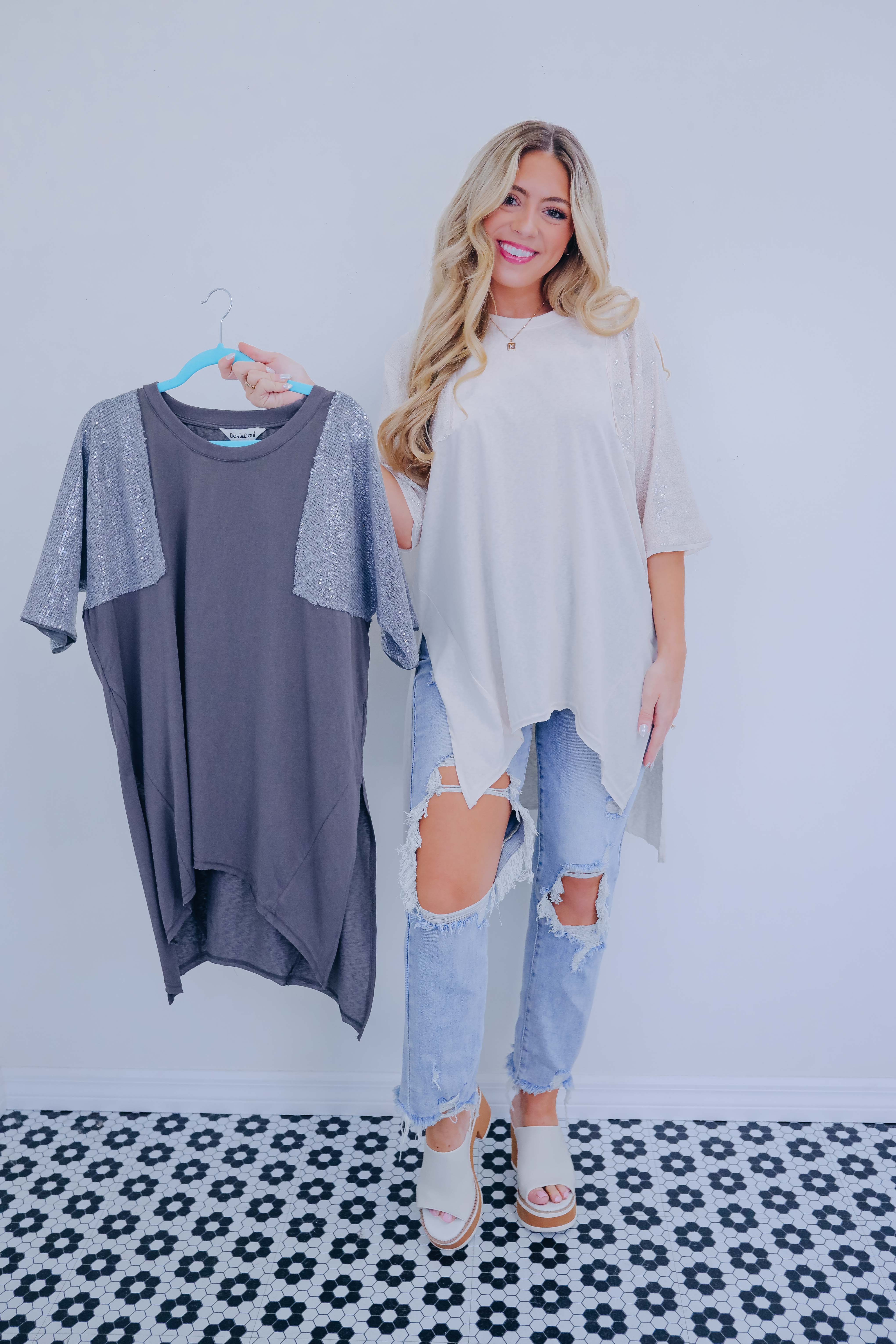 Sugar Sheen Side Slit Tunic Shirt- 2- Colors