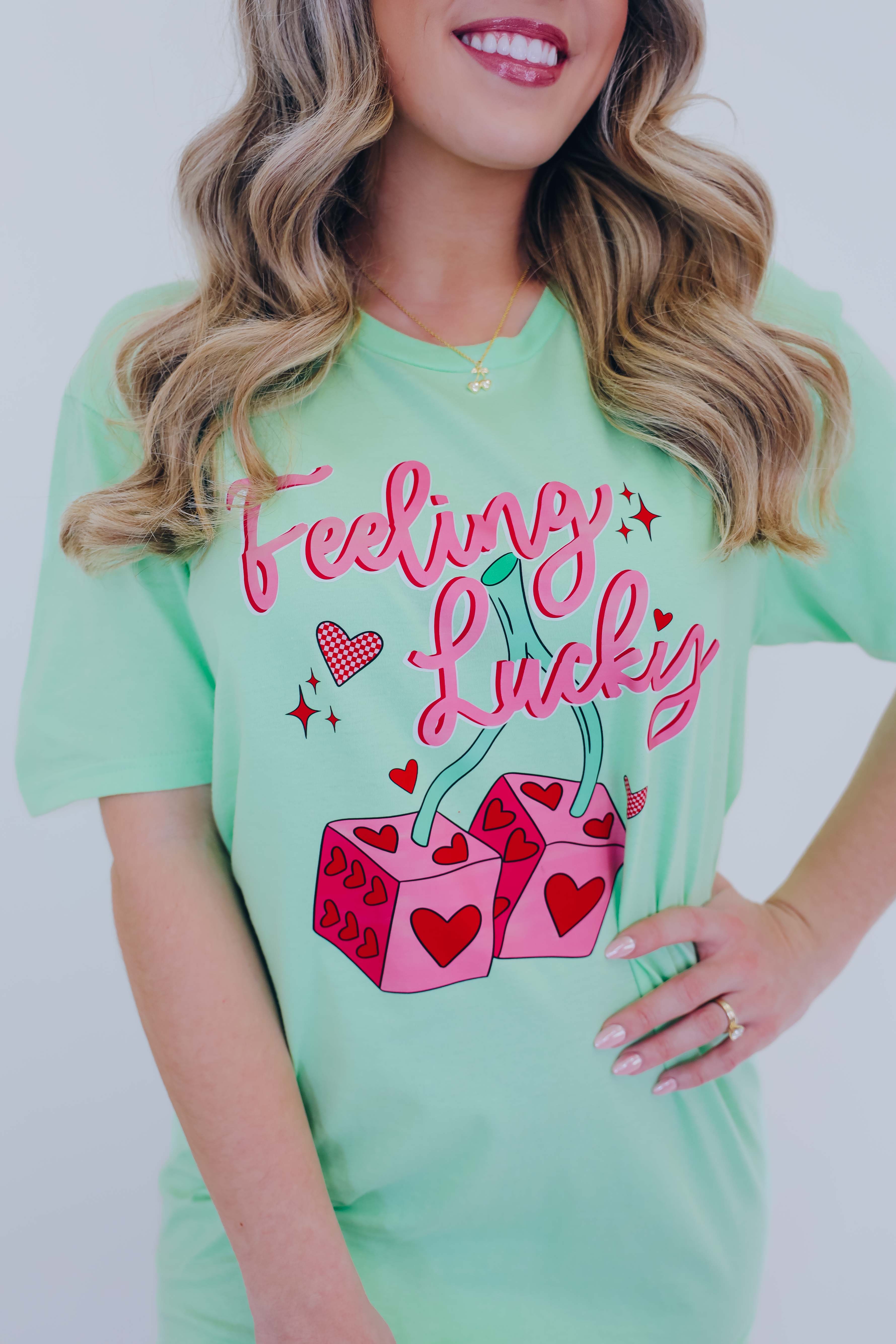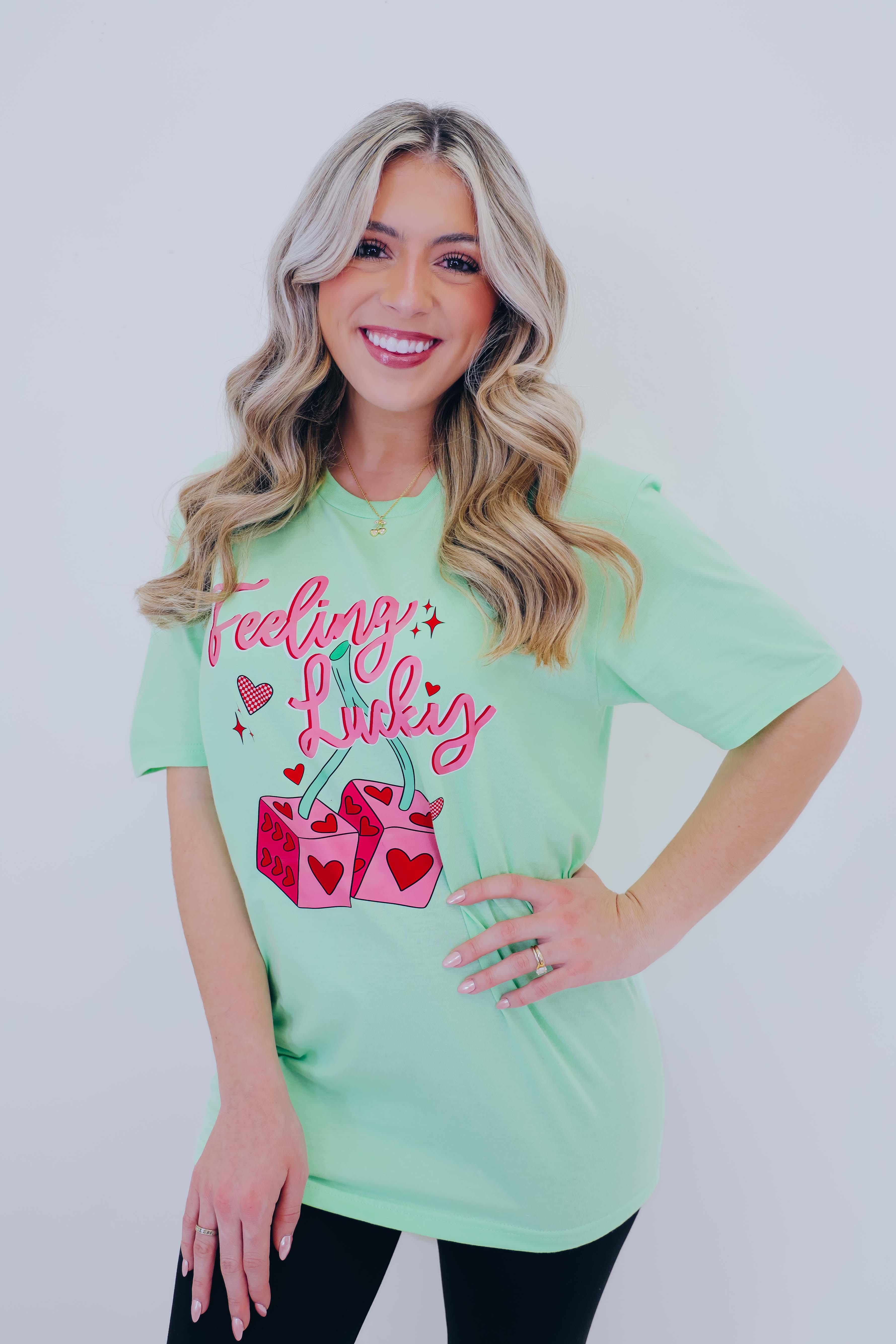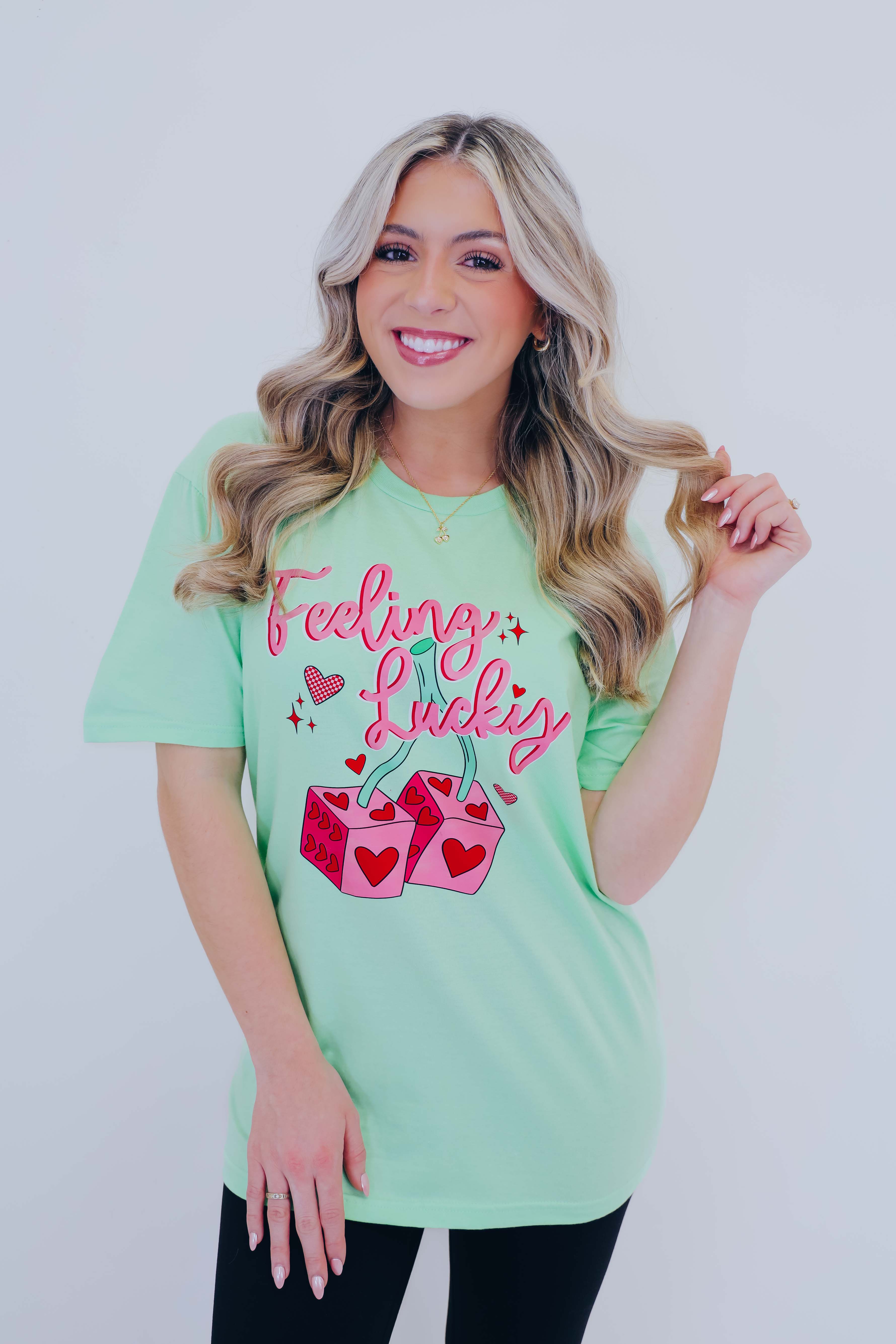 - Our Feeling Lucky Graphic Tee is so stinking cute! This graphic tee is giving both Valentines and St Patrick's Day feels! Pick your color and your holiday vibe for this graphic tee.