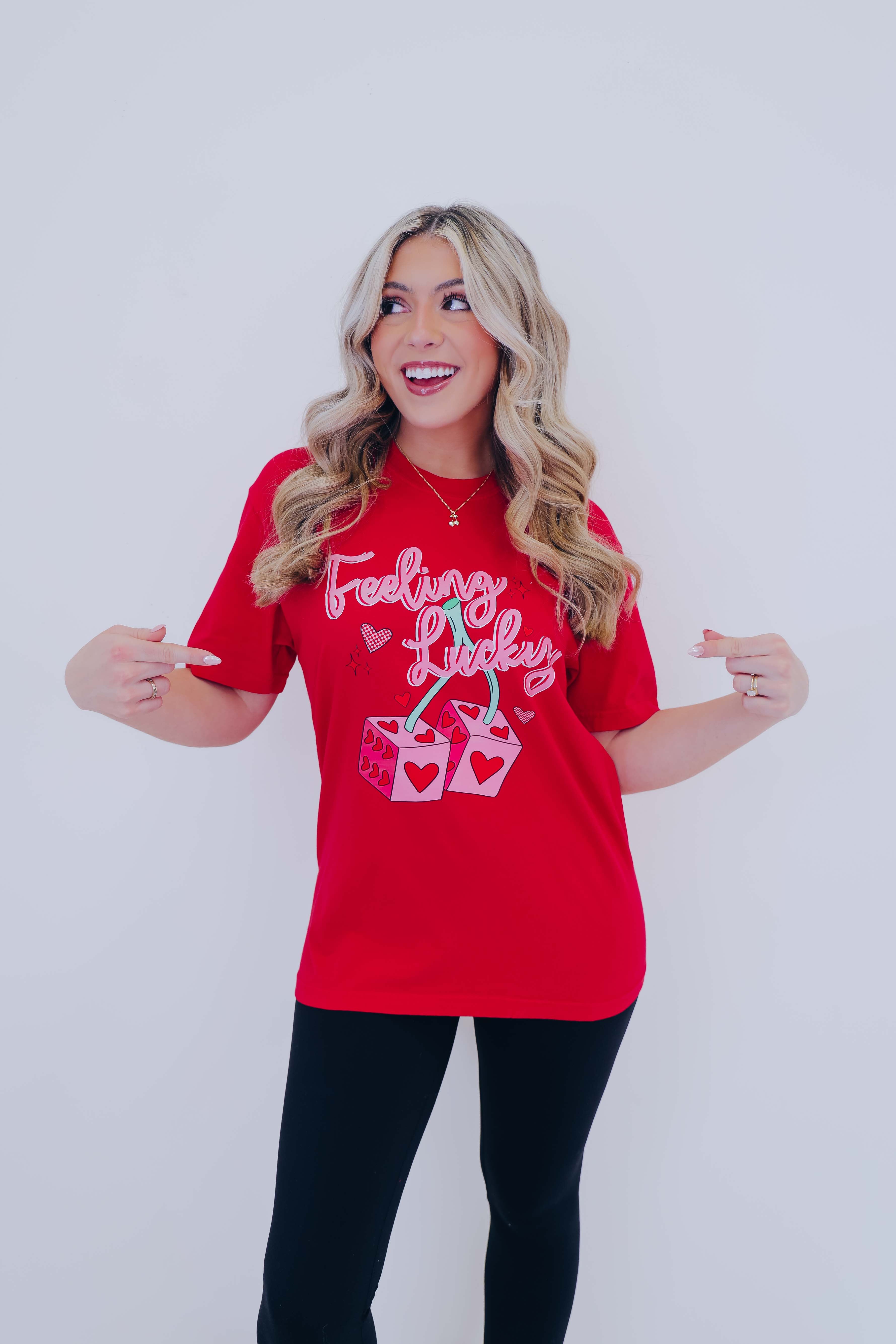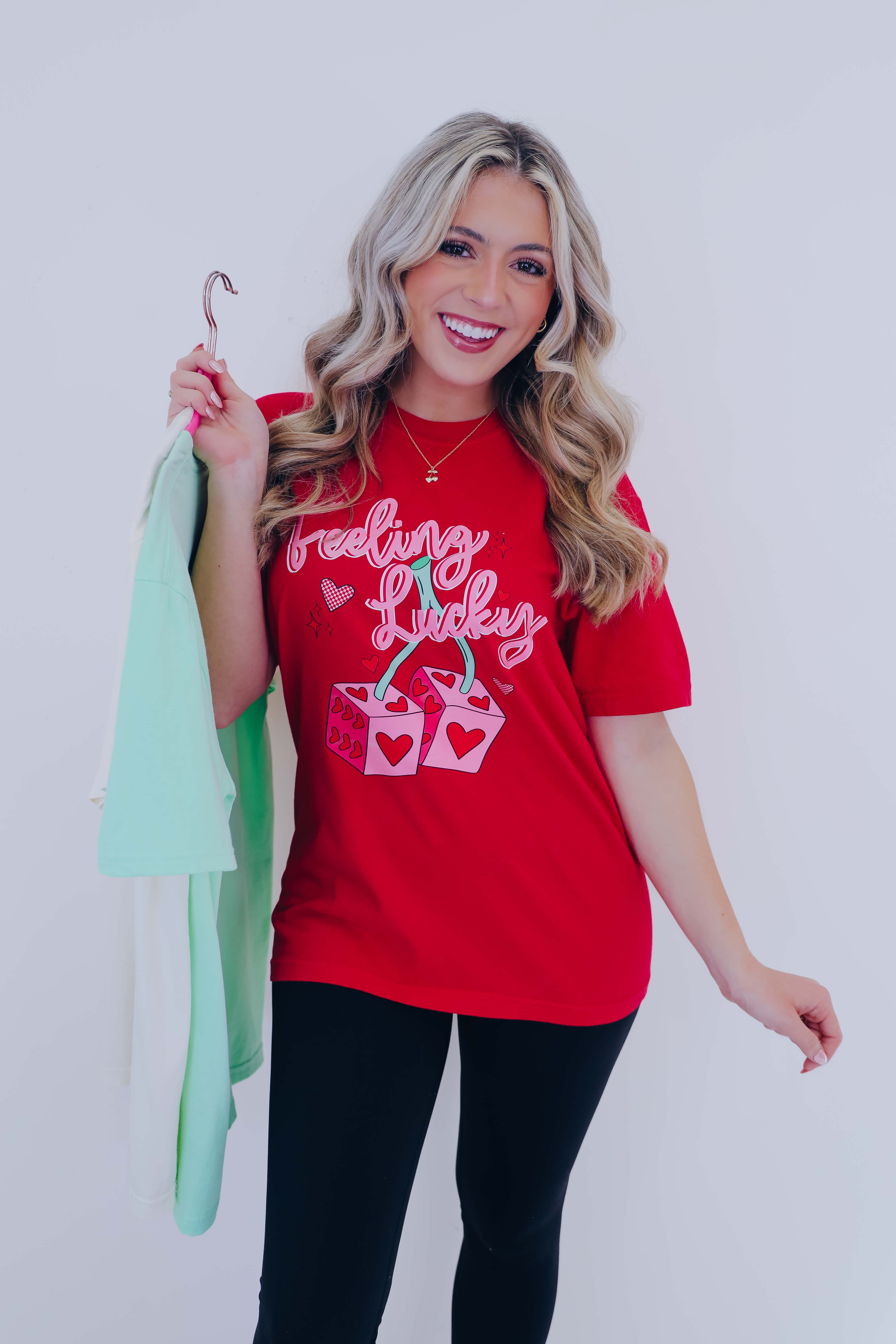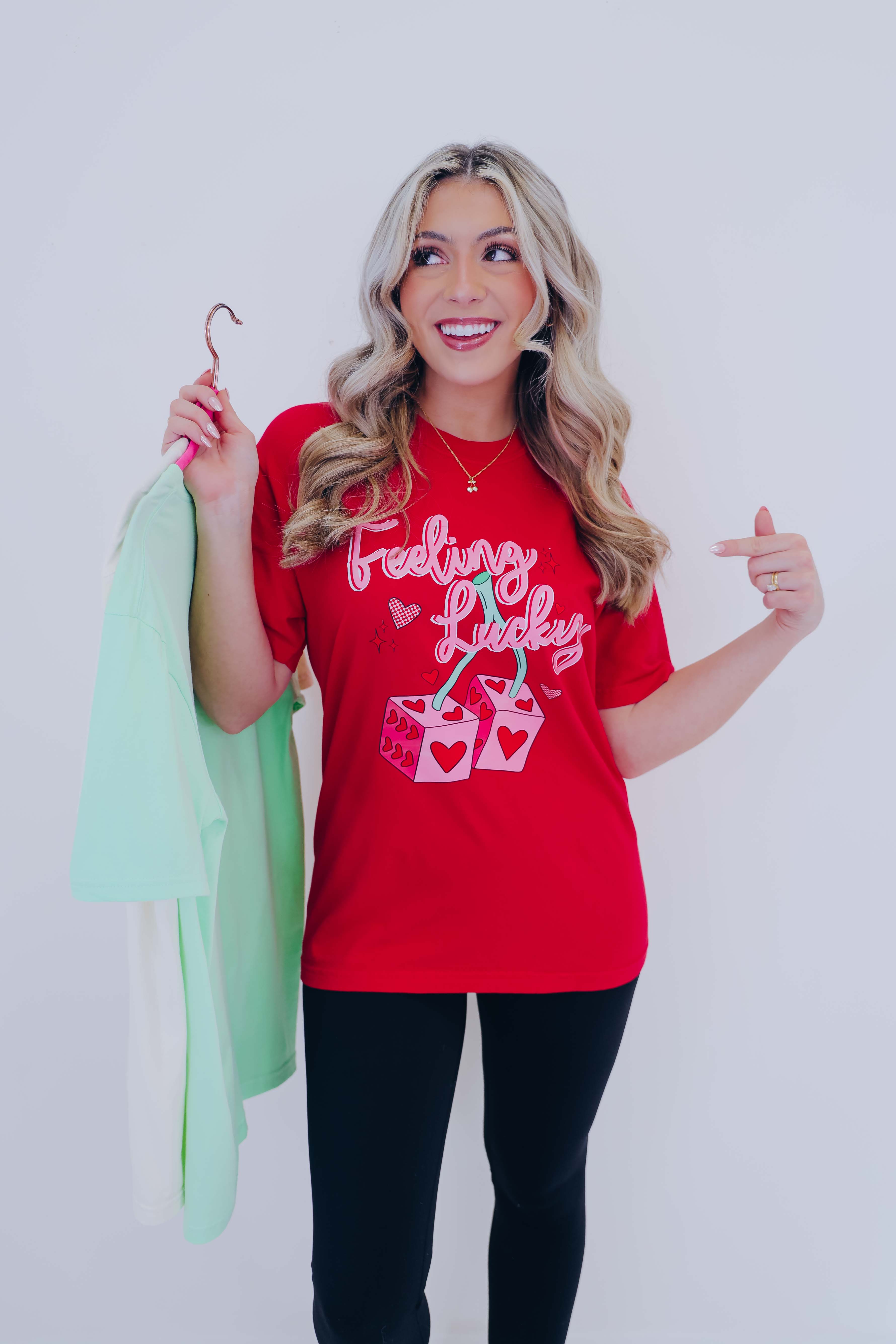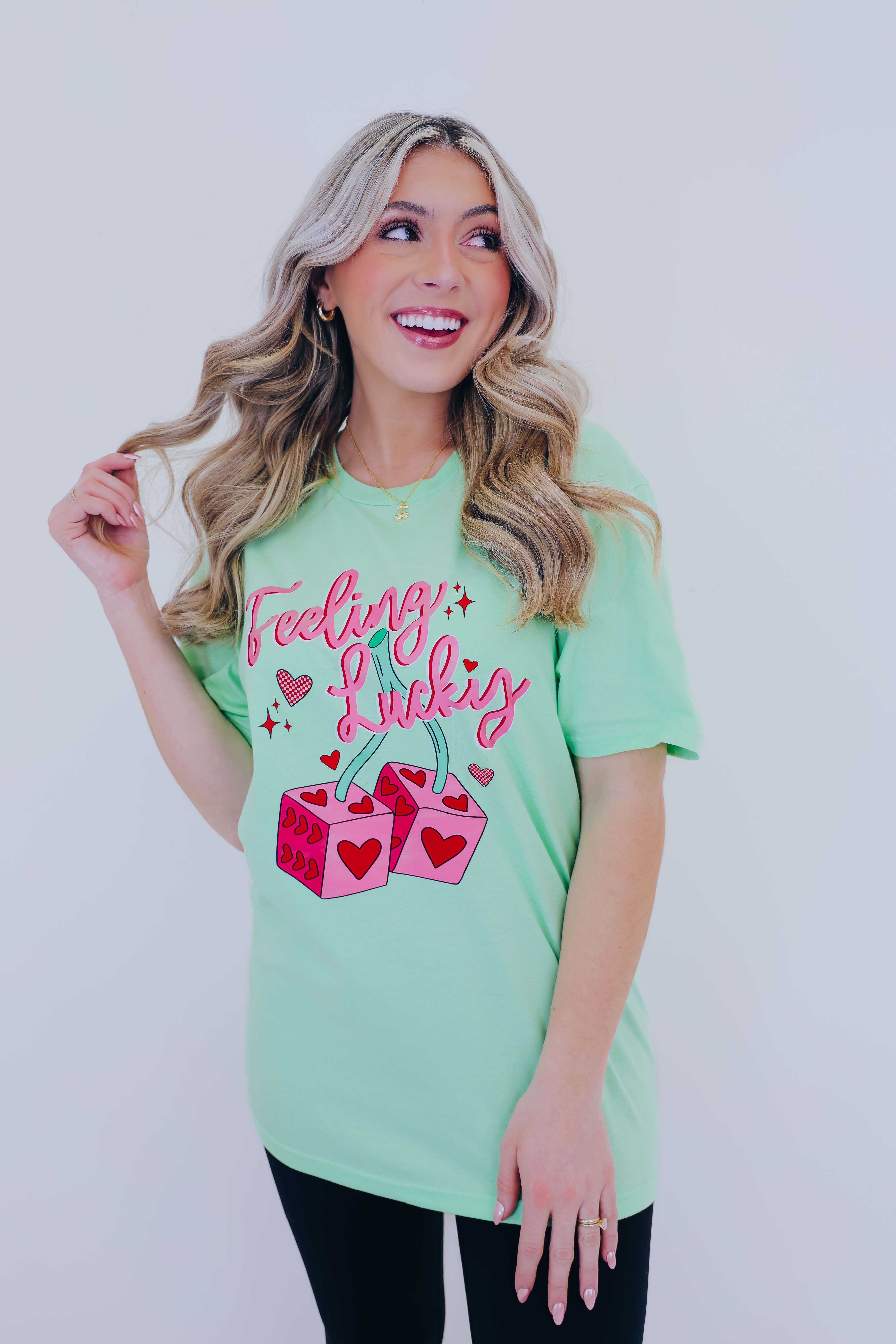 - Our Feeling Lucky Graphic Tee is so stinking cute! This graphic tee is giving both Valentines and St Patrick's Day feels! Pick your color and your holiday vibe for this graphic tee.