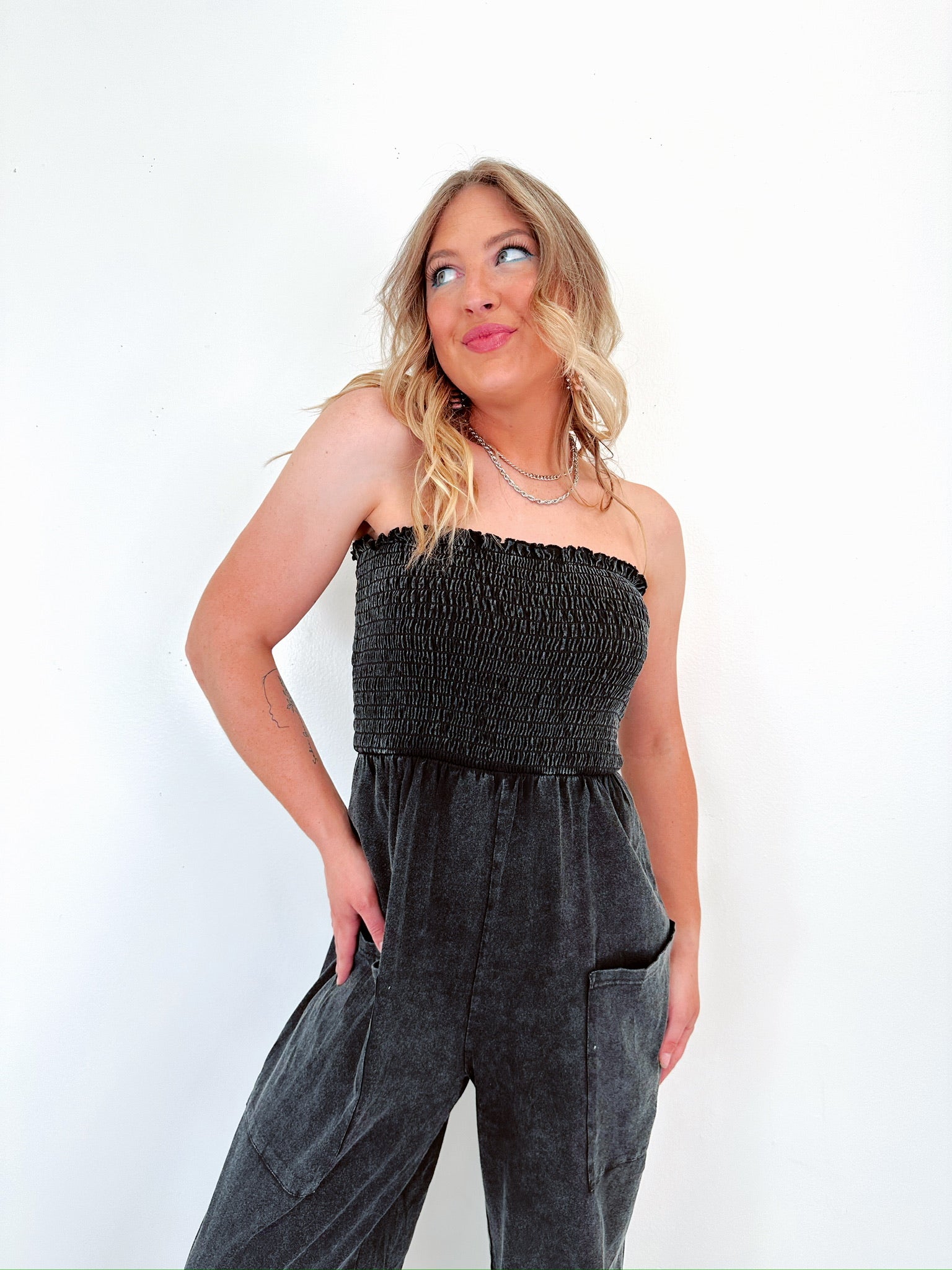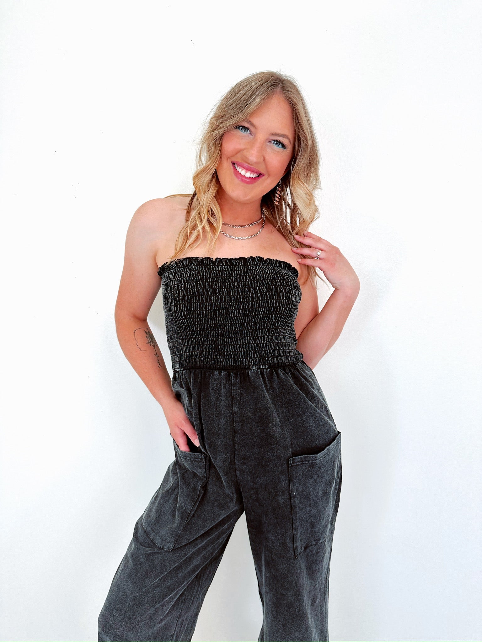 Soleil Smocked Strapless Jumpsuit - 2 Colors