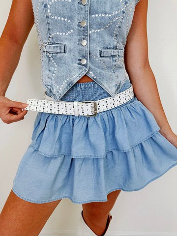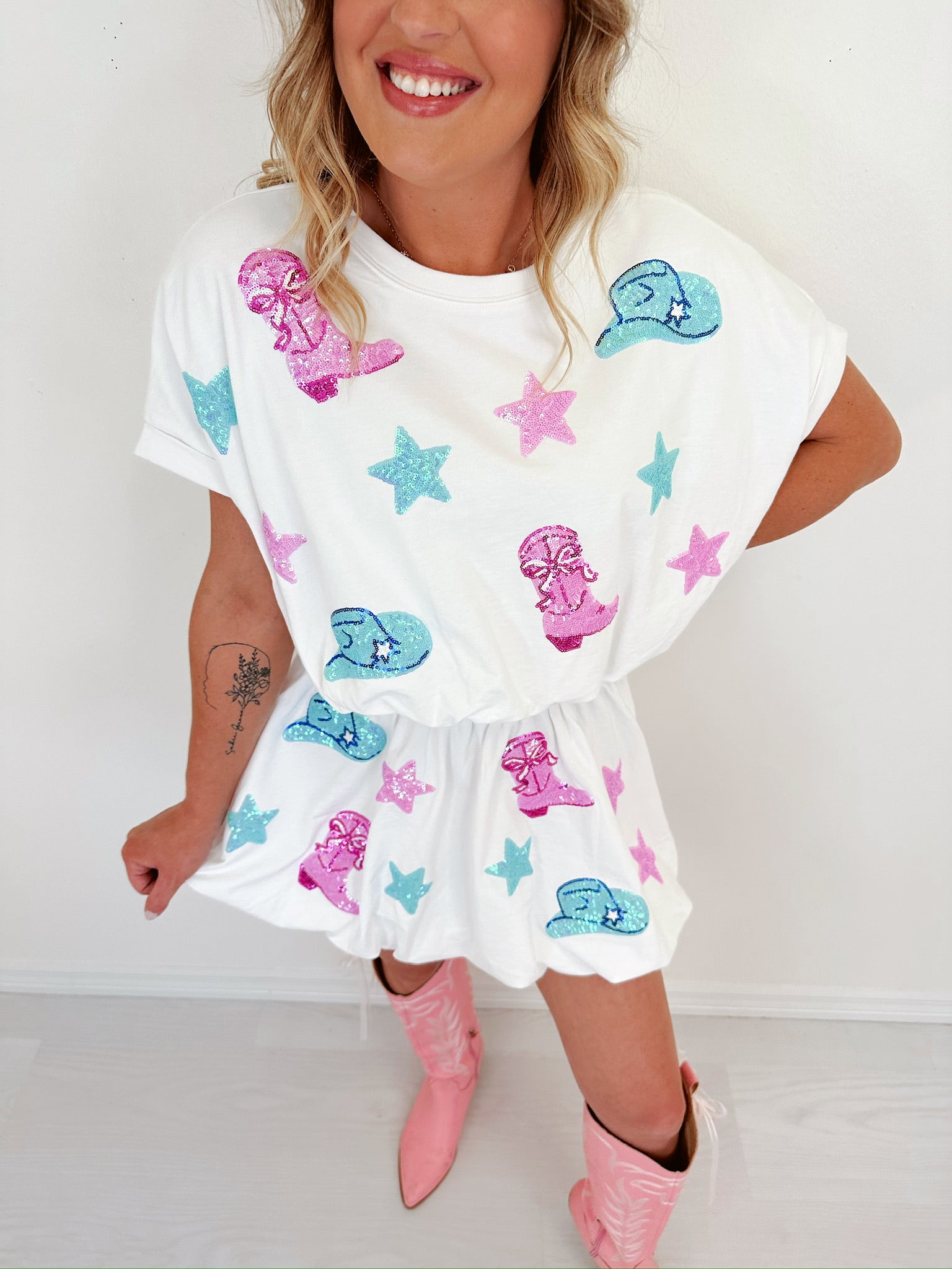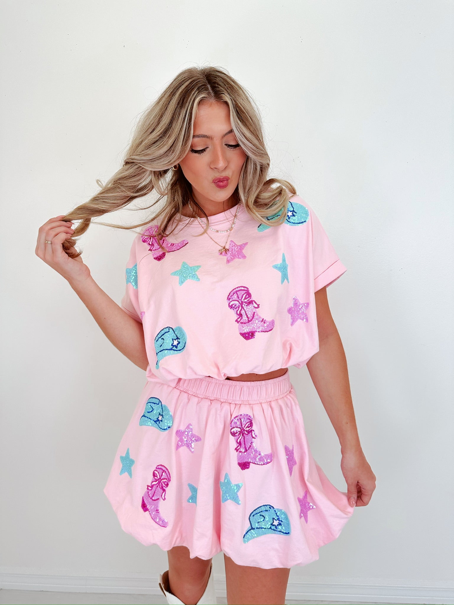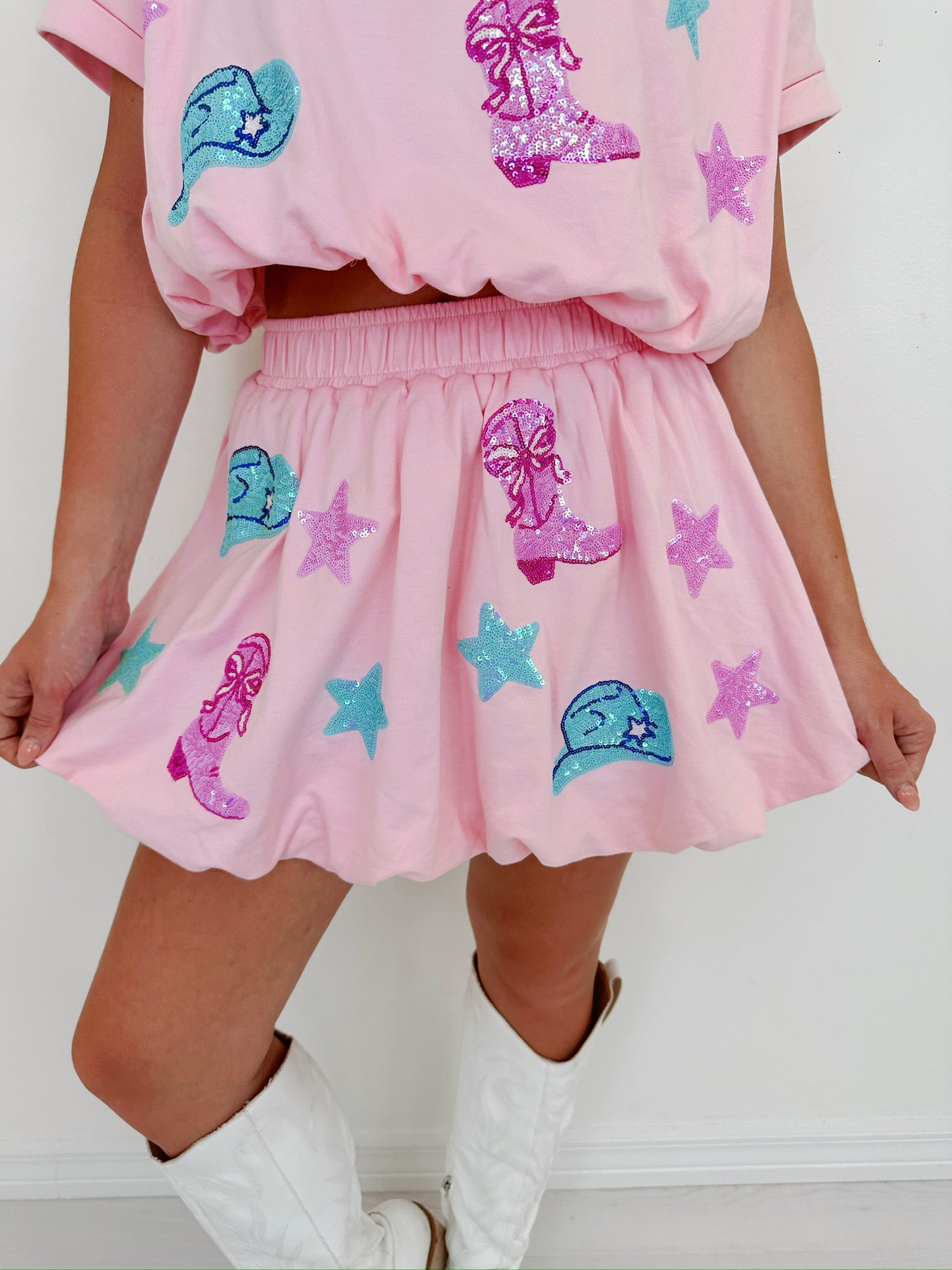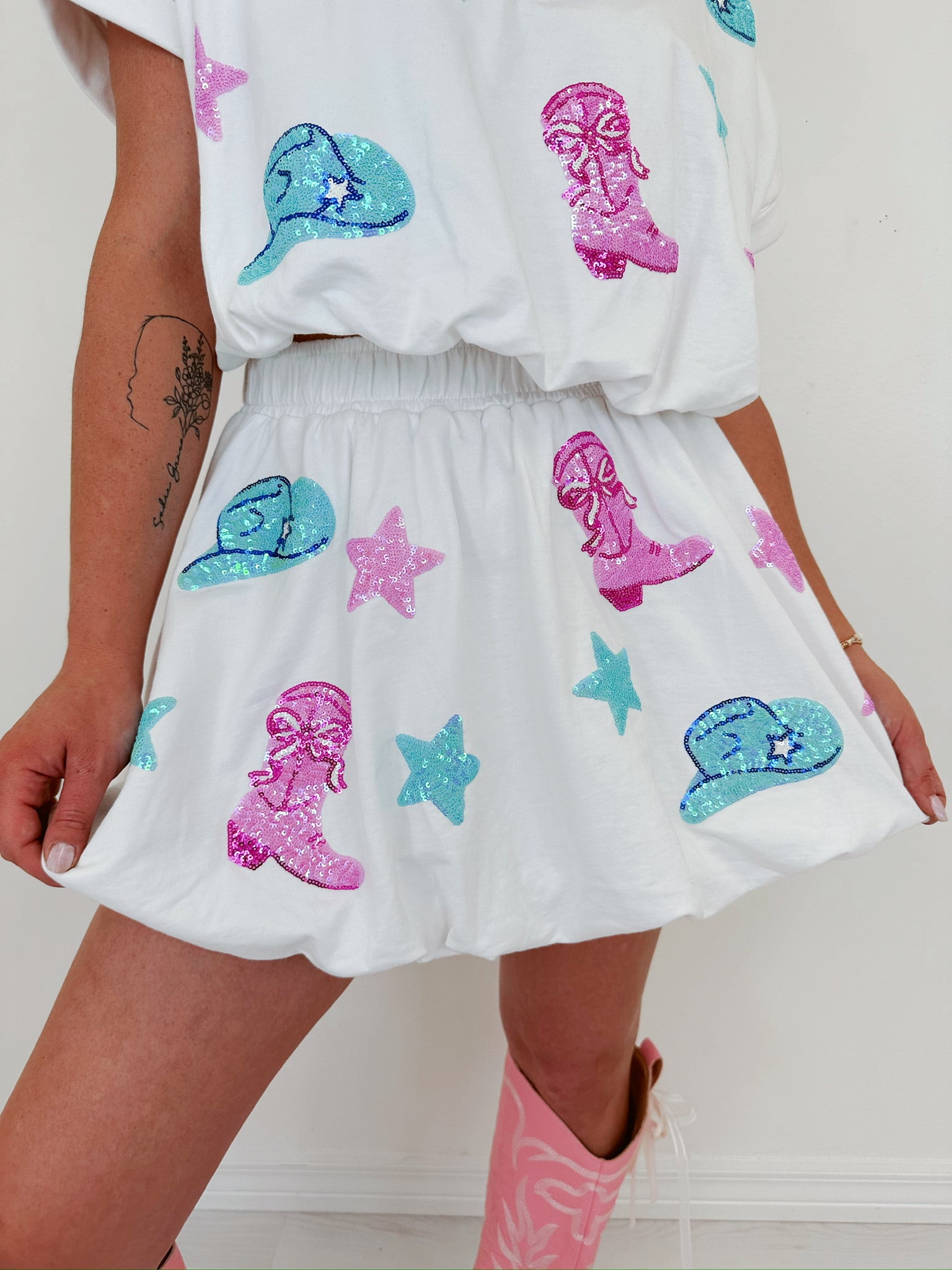 Cowgirl Sequin Patch Bubble Hem Mini Skirt