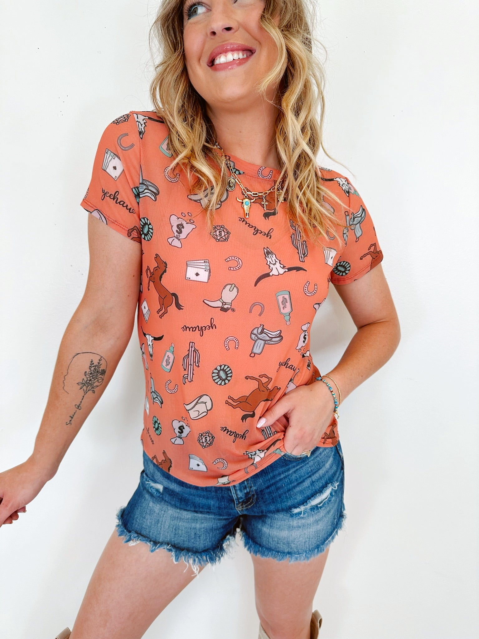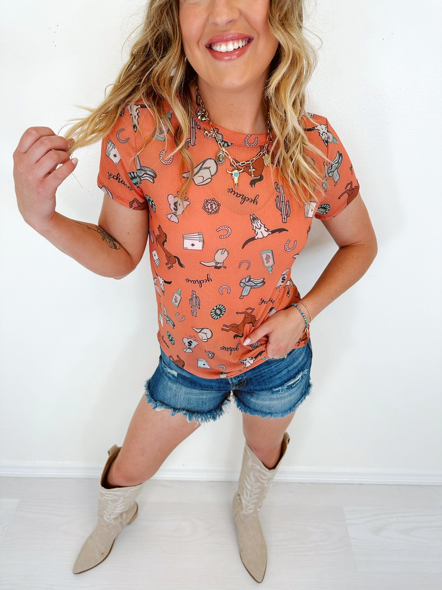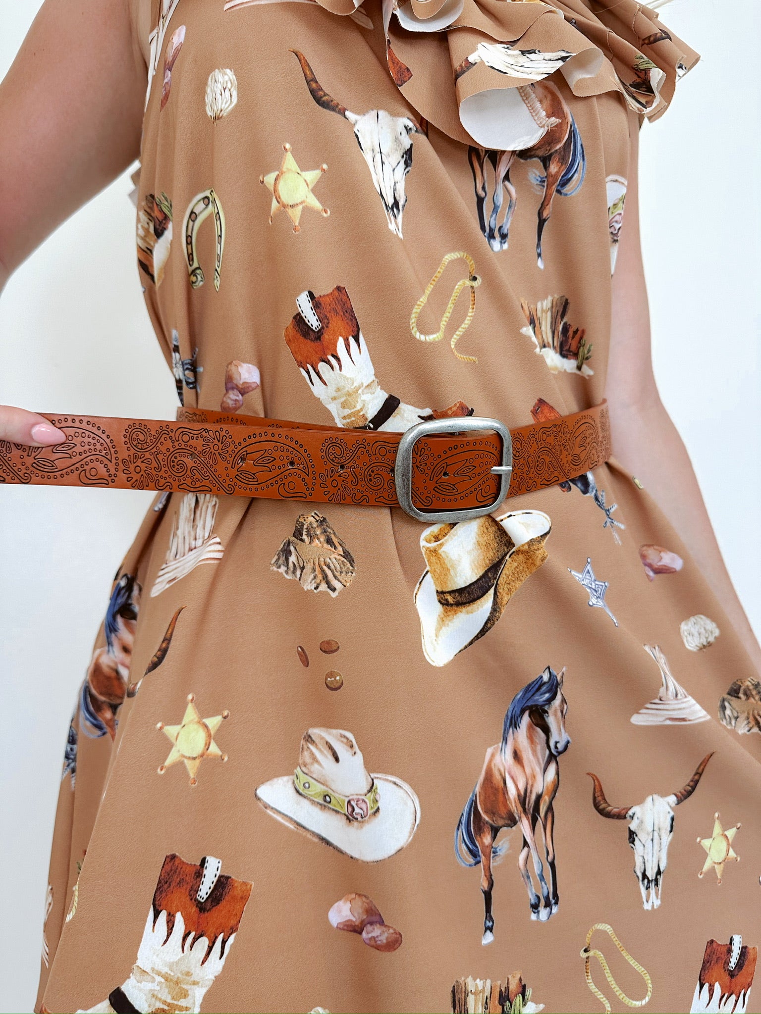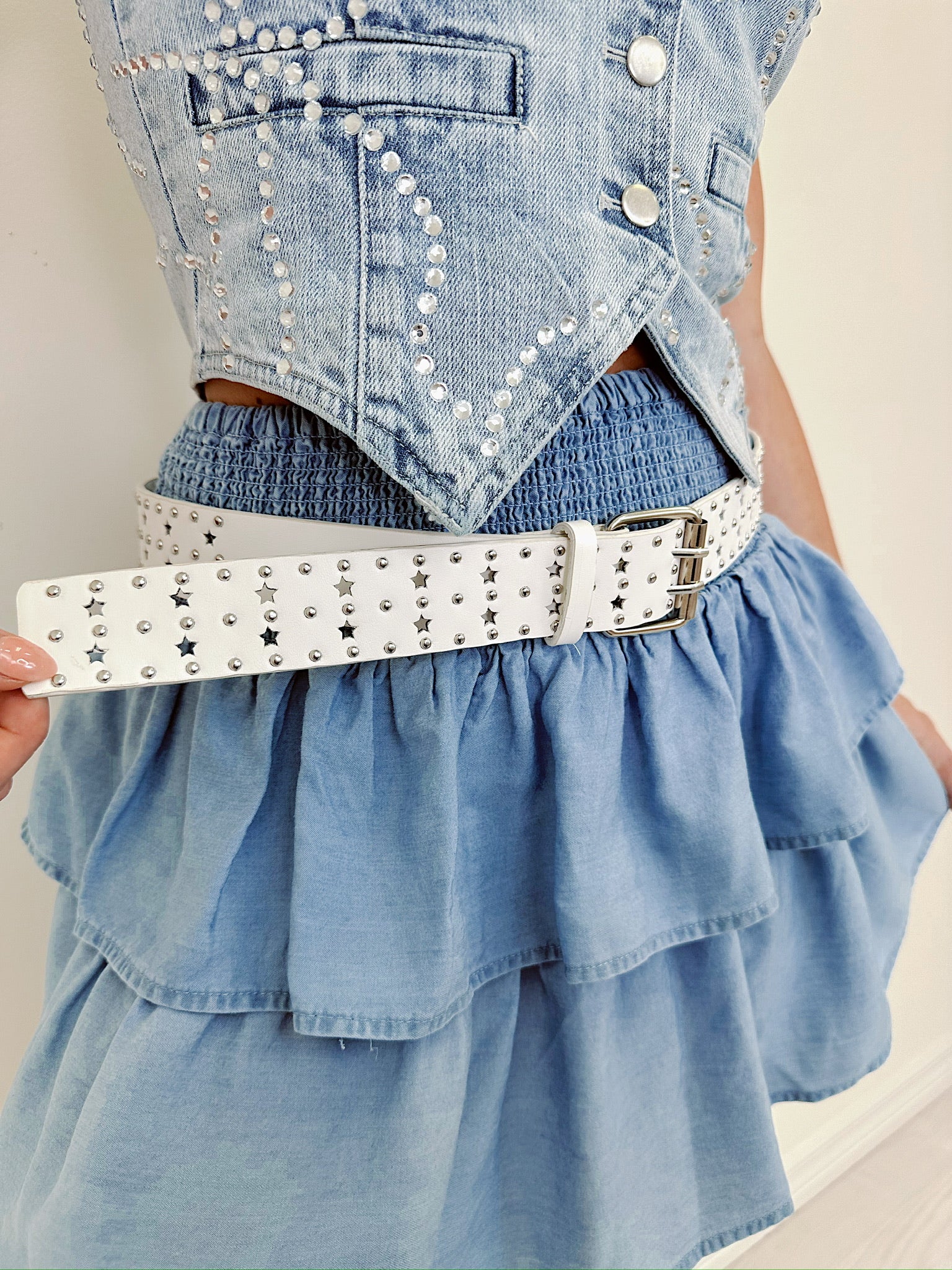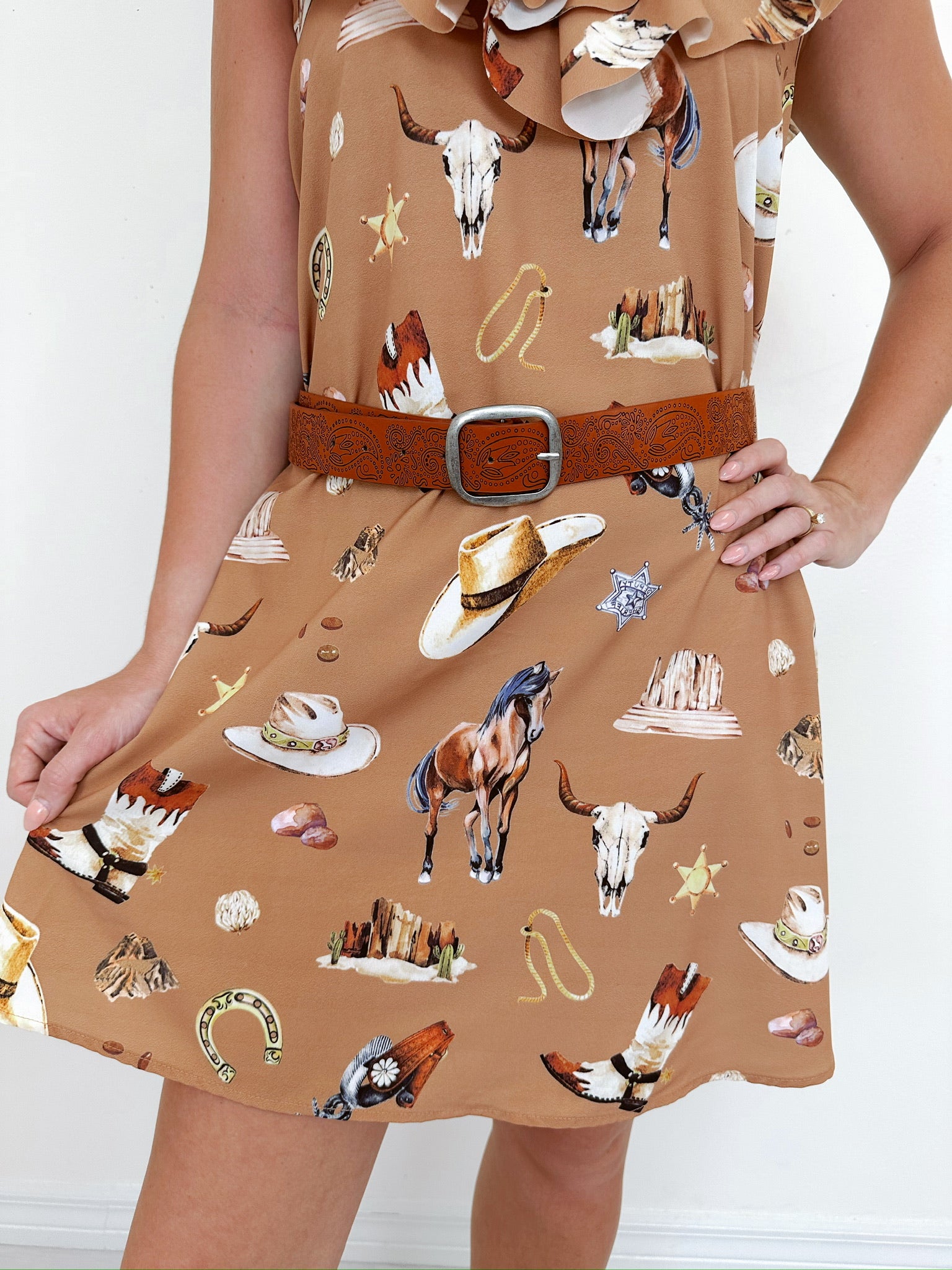 Cowgirl Sequin Patch Bubble Hem Mini Skirt