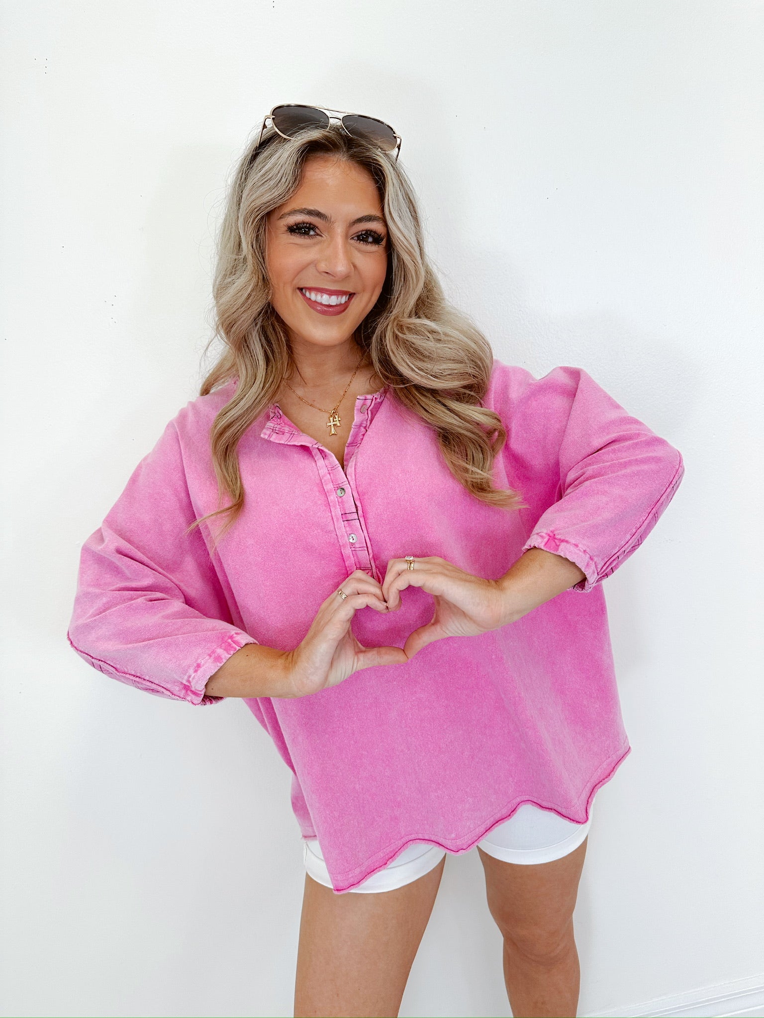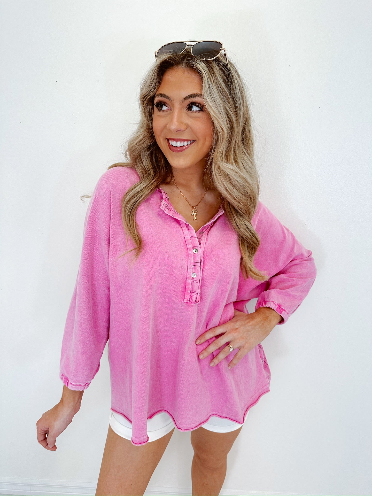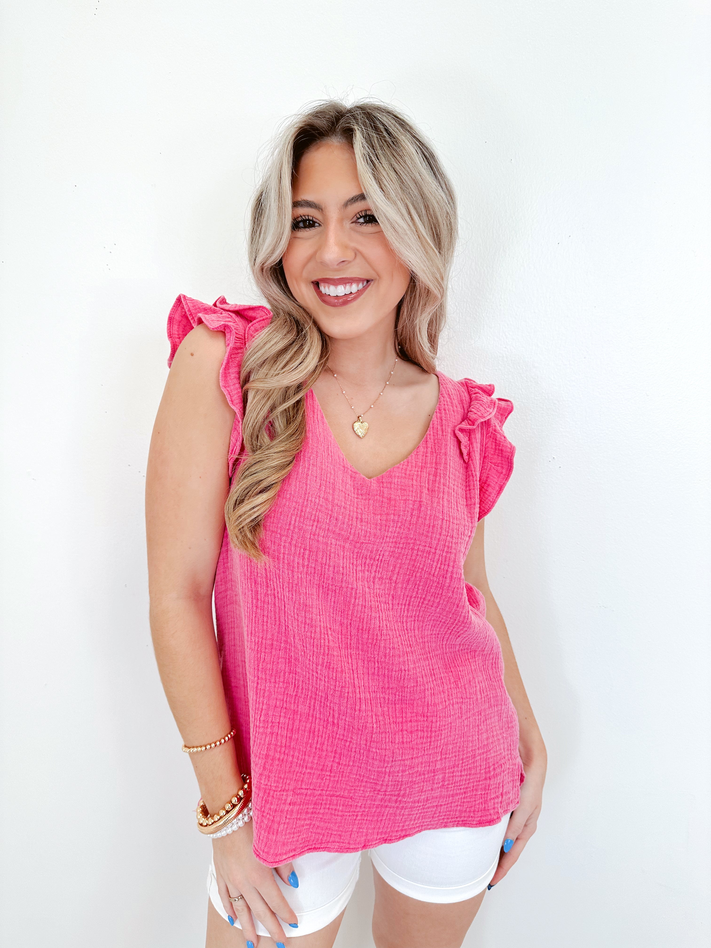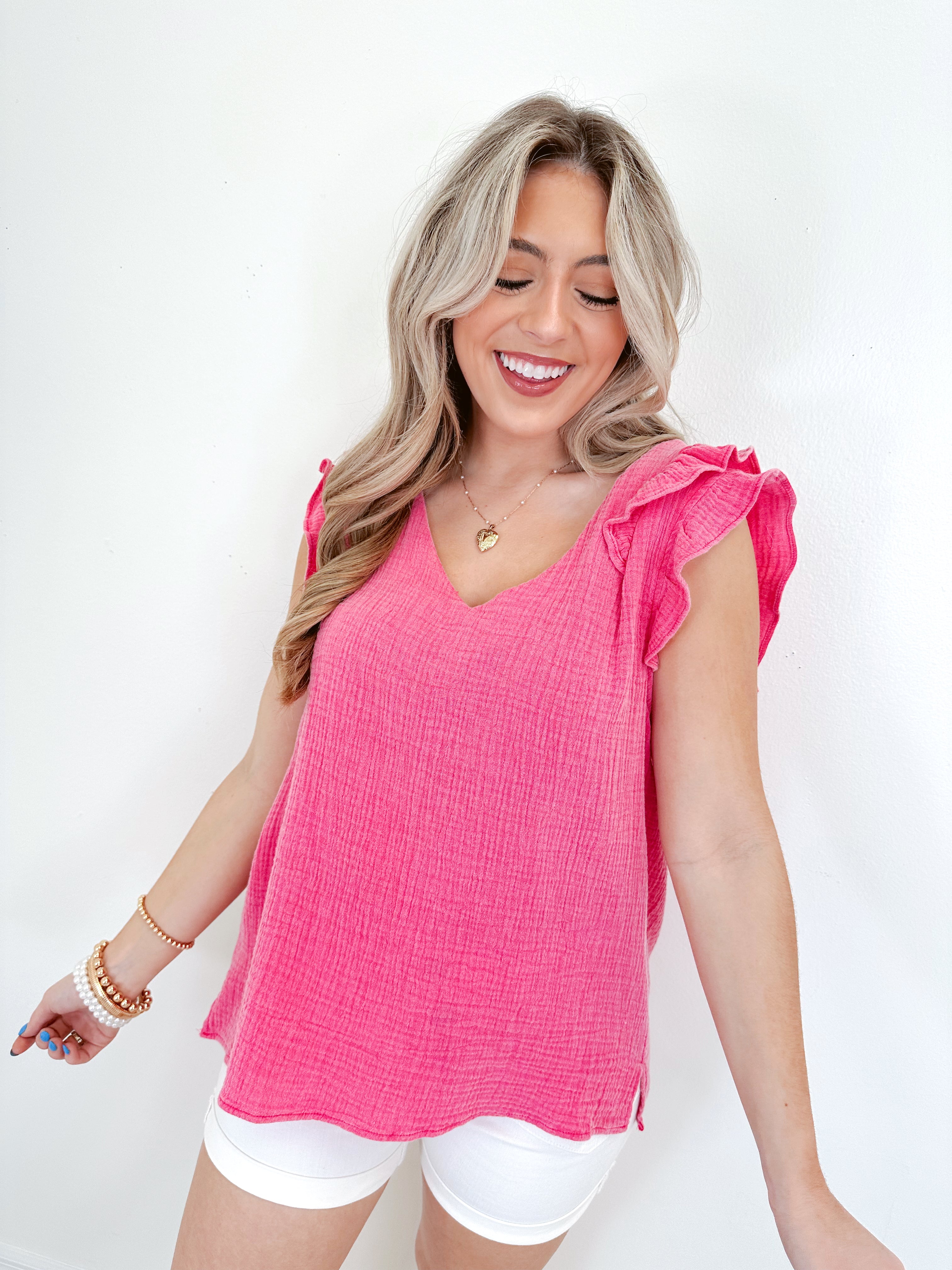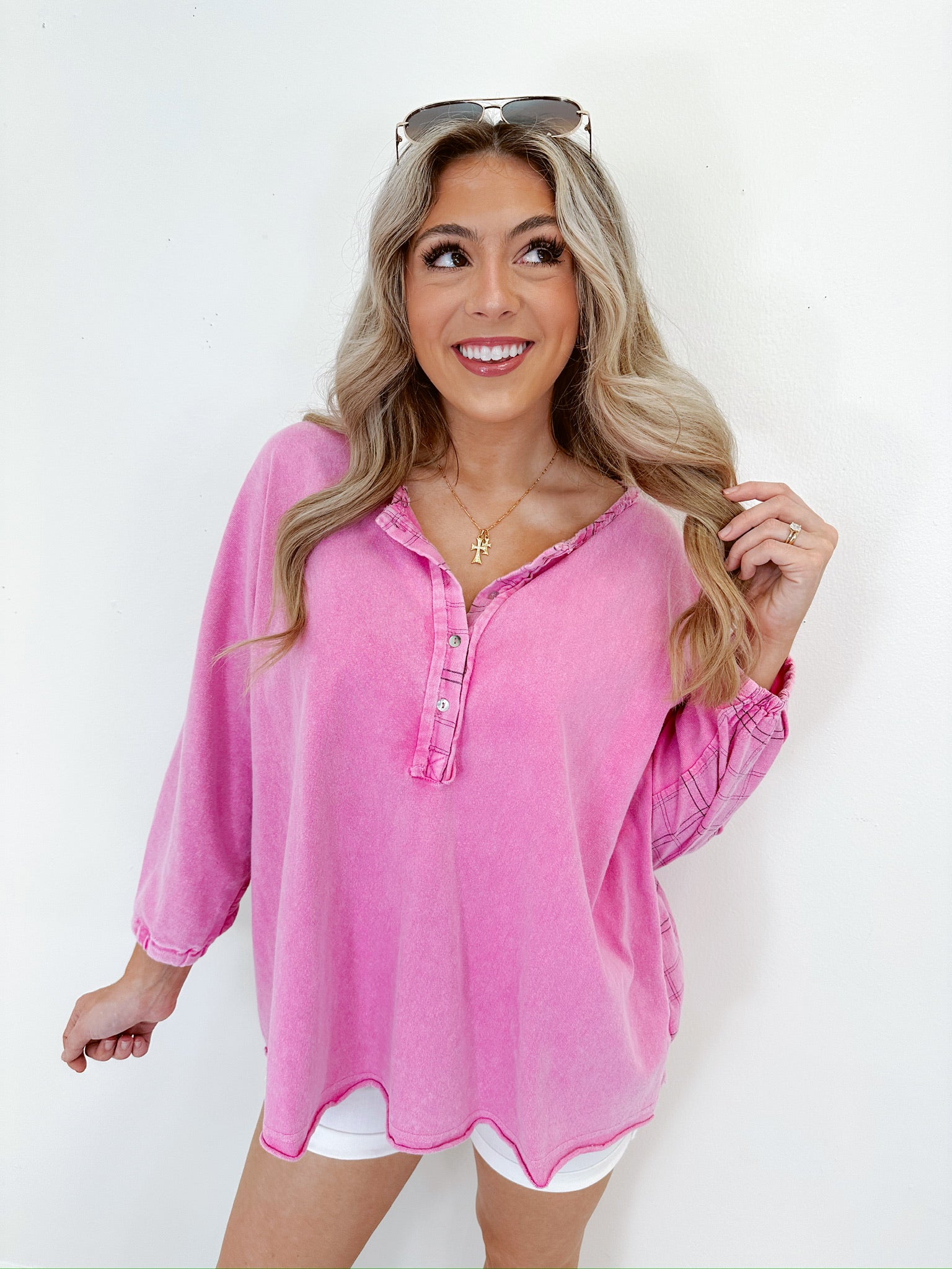 Charity Checkered Ruffle Sleeve Blouse - Pink/Blue
