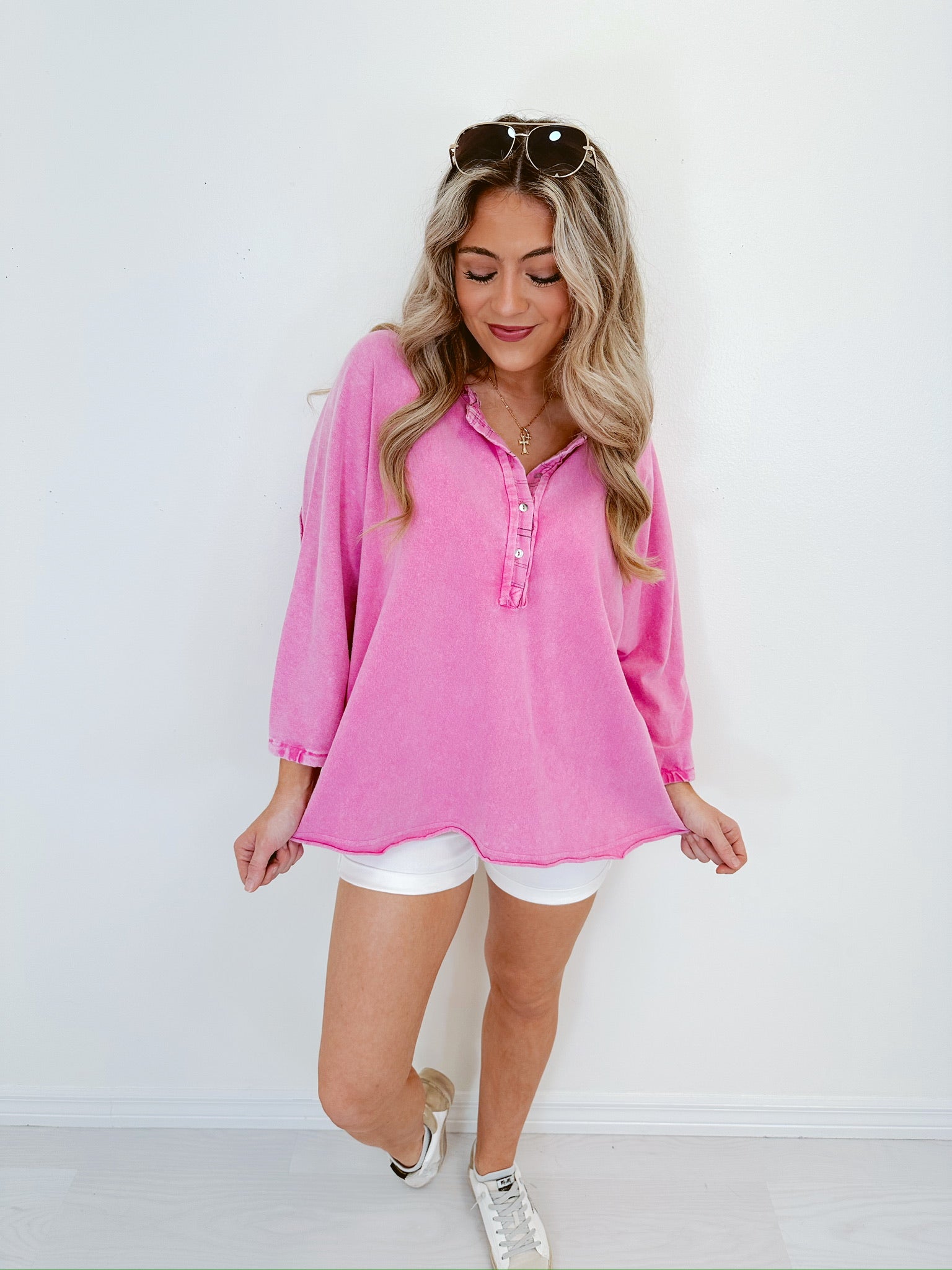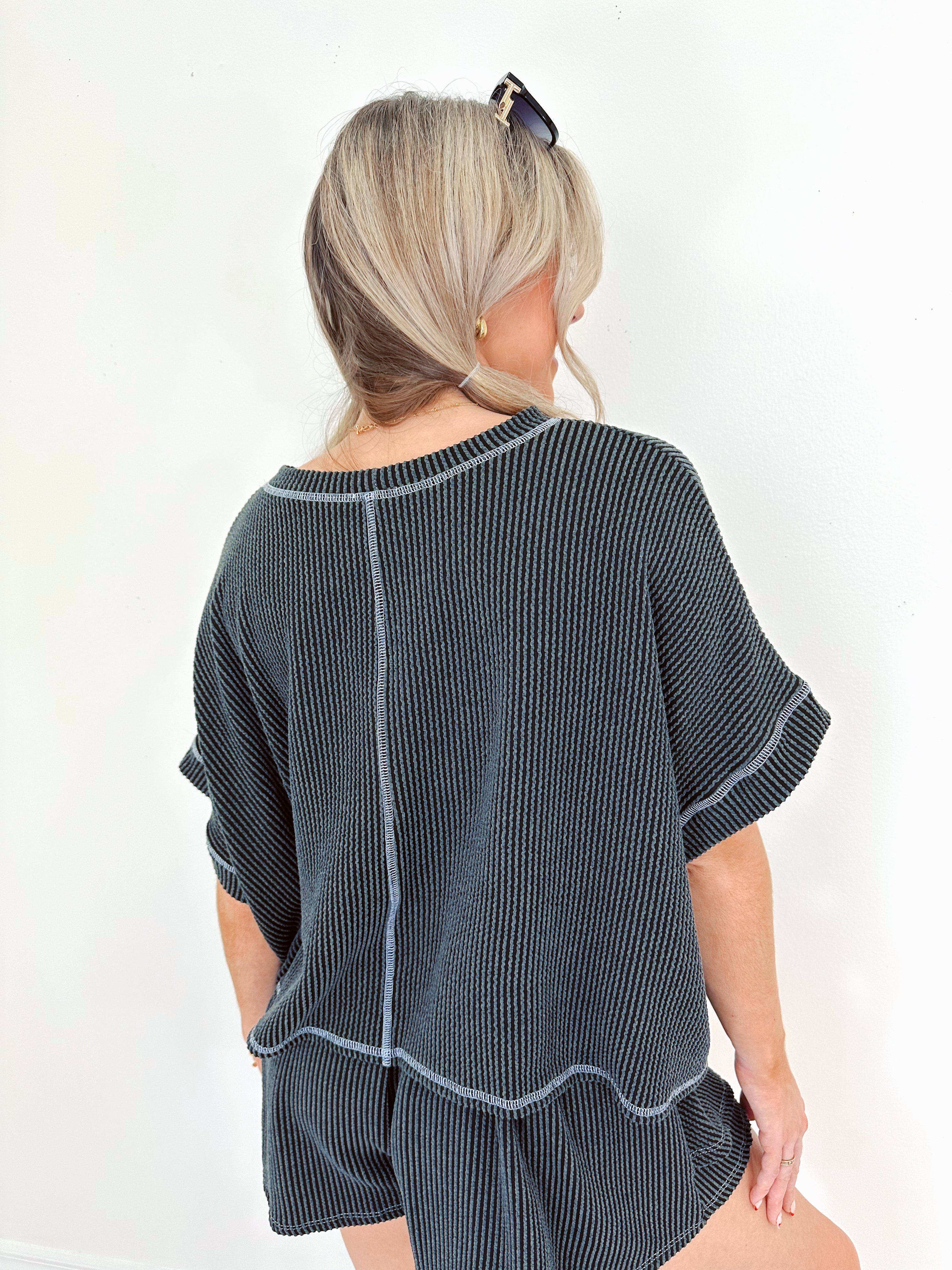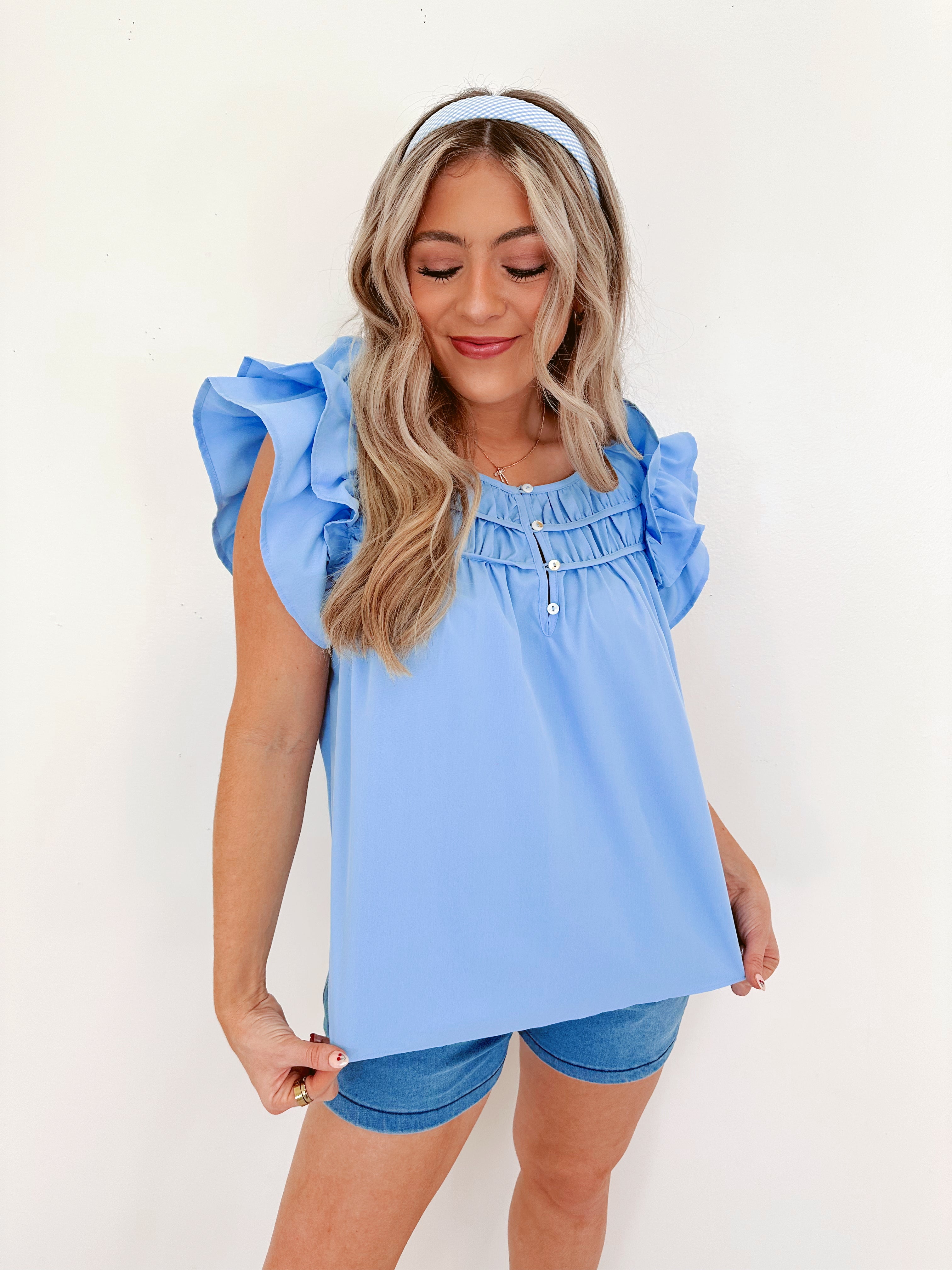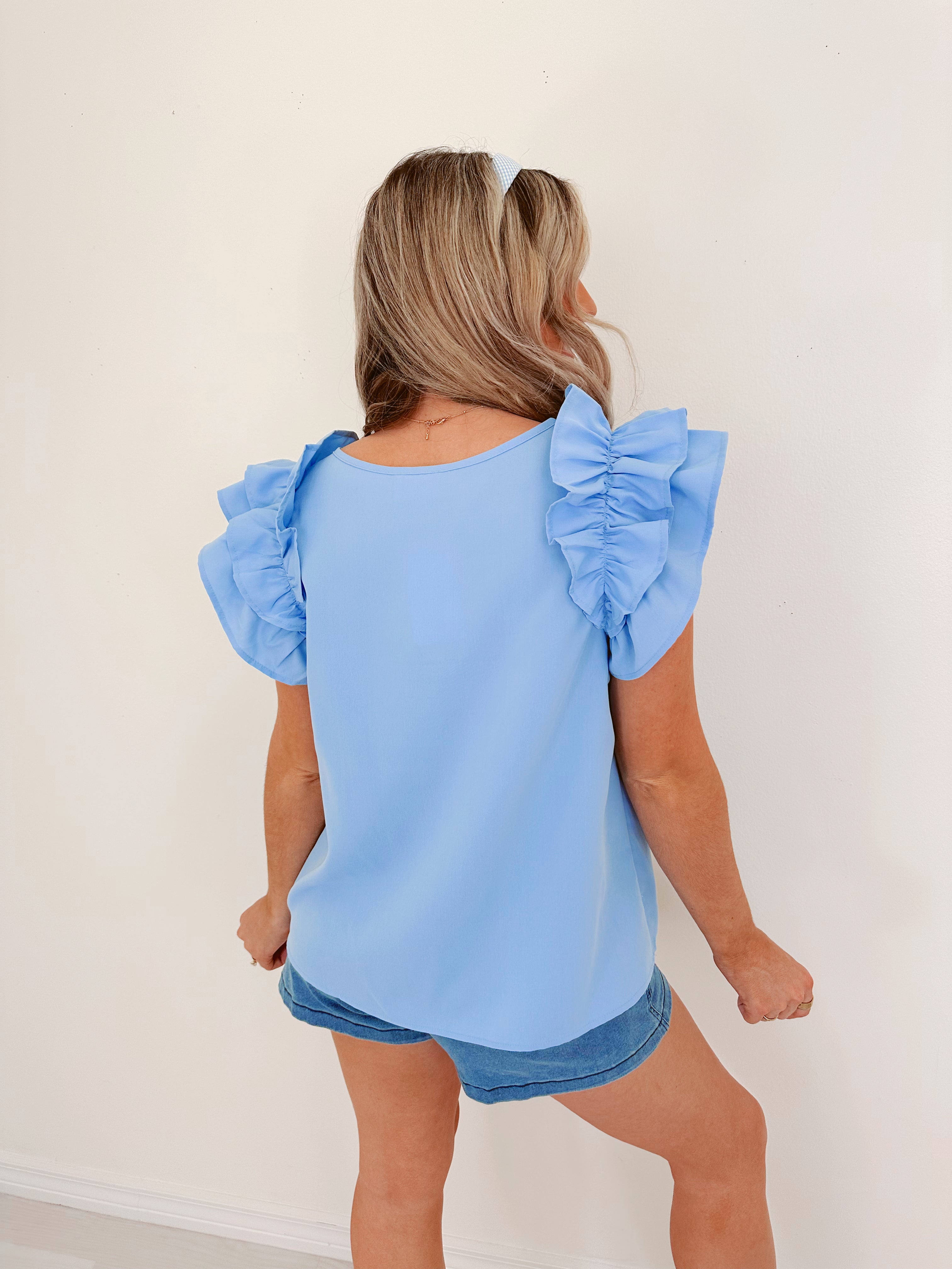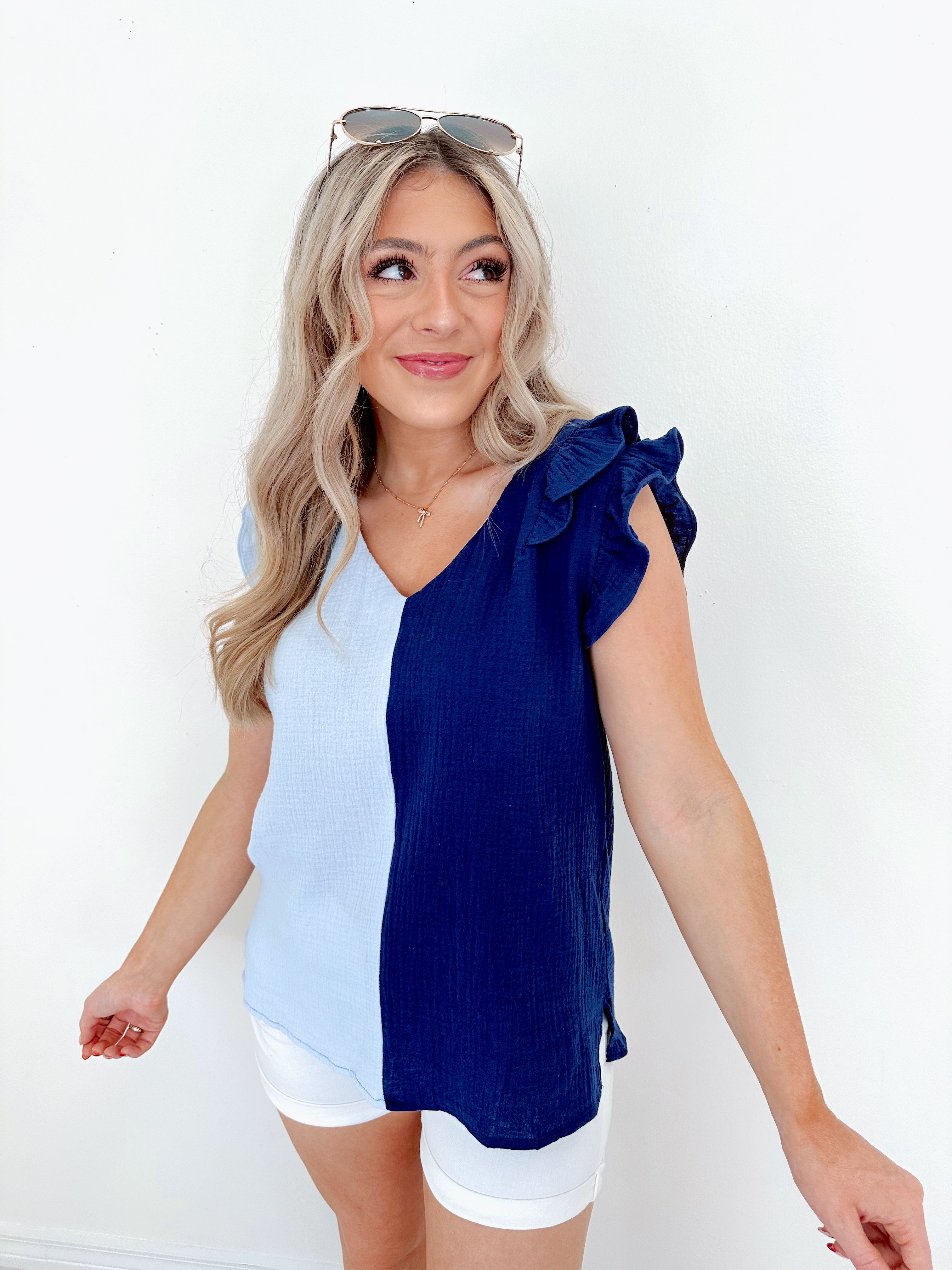 Tia Two-Tone Gauze V-Neck Top - Blue