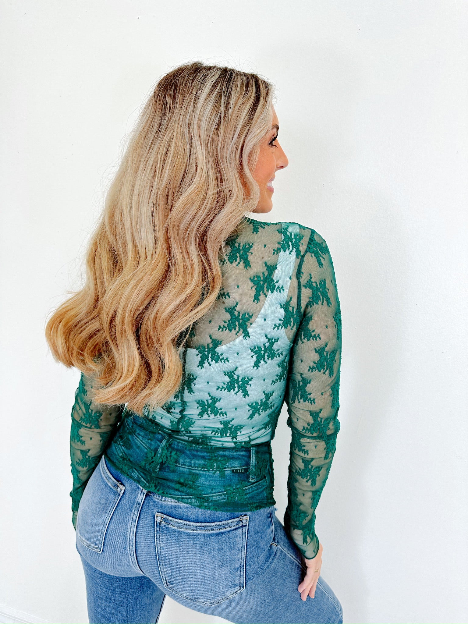 Harmony V-Neck Floral Hoodie Top By POL- Sage