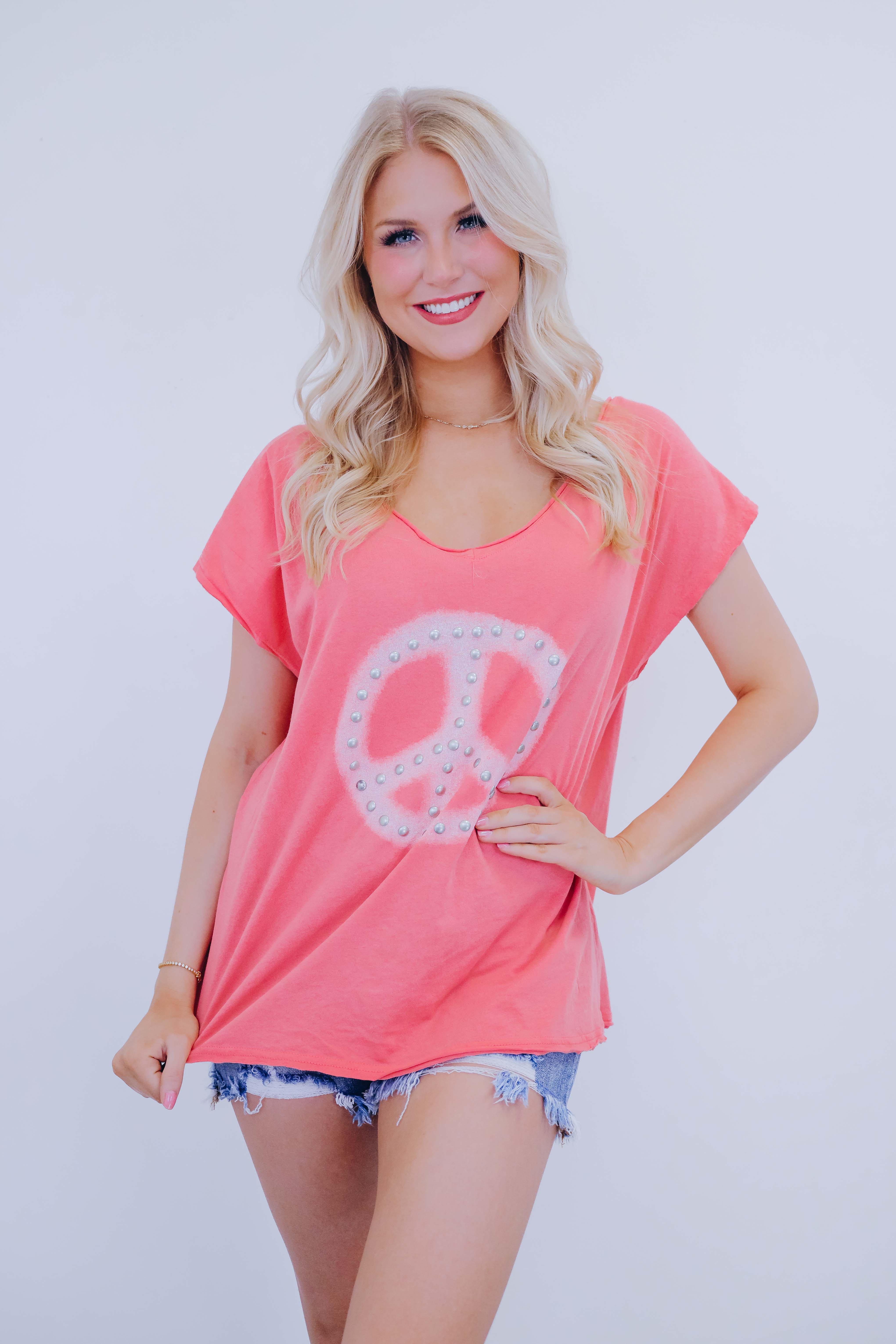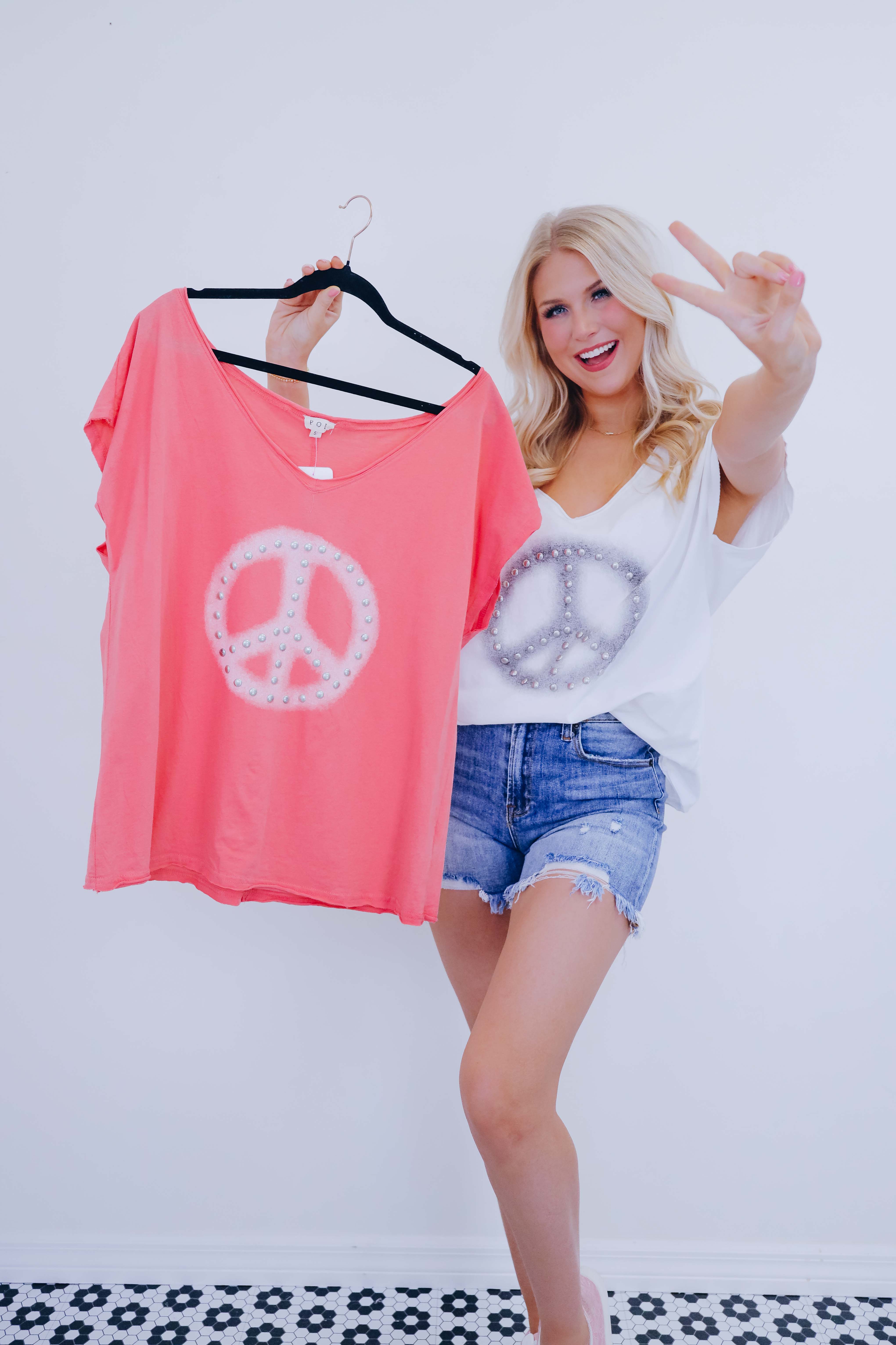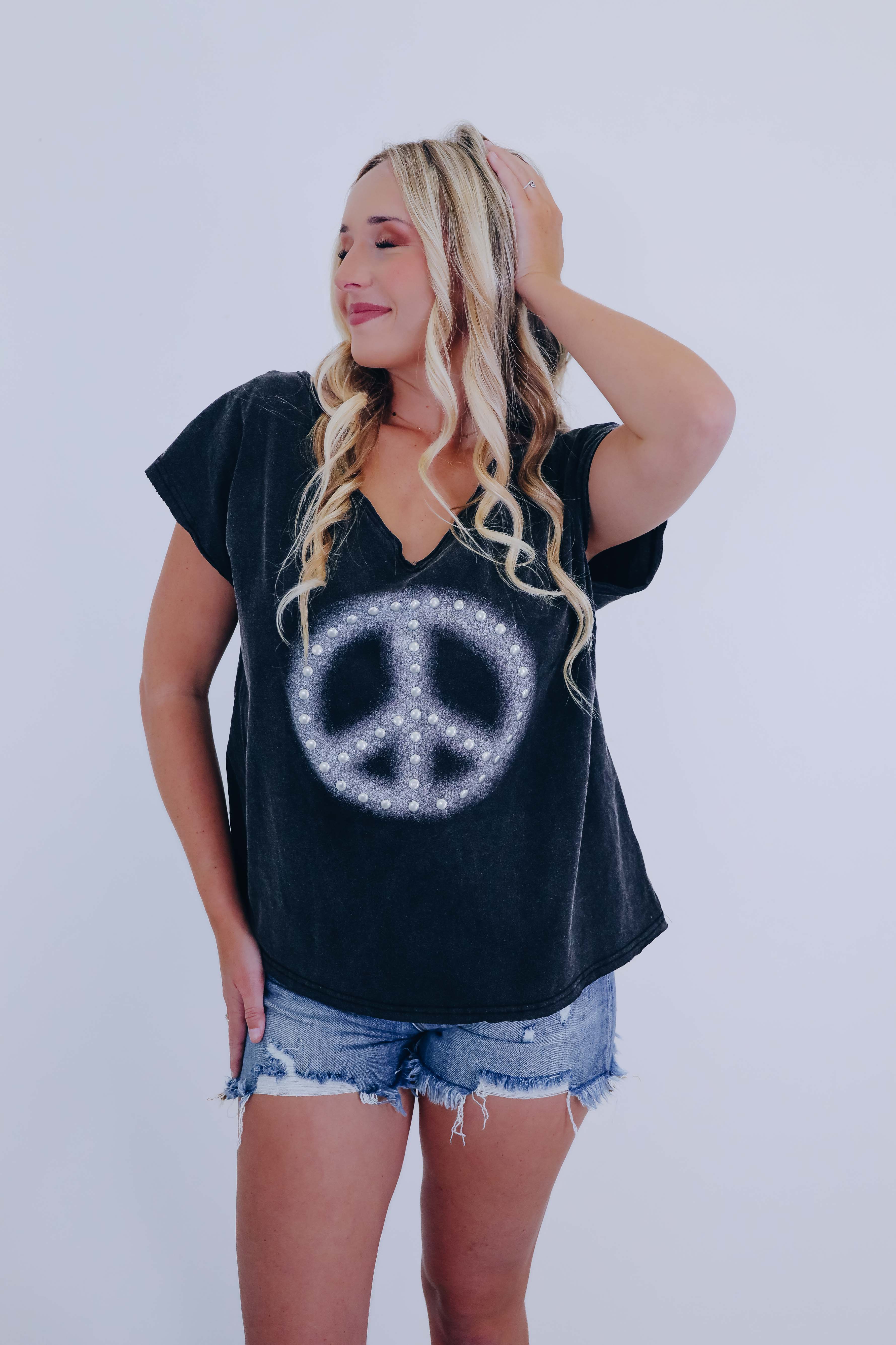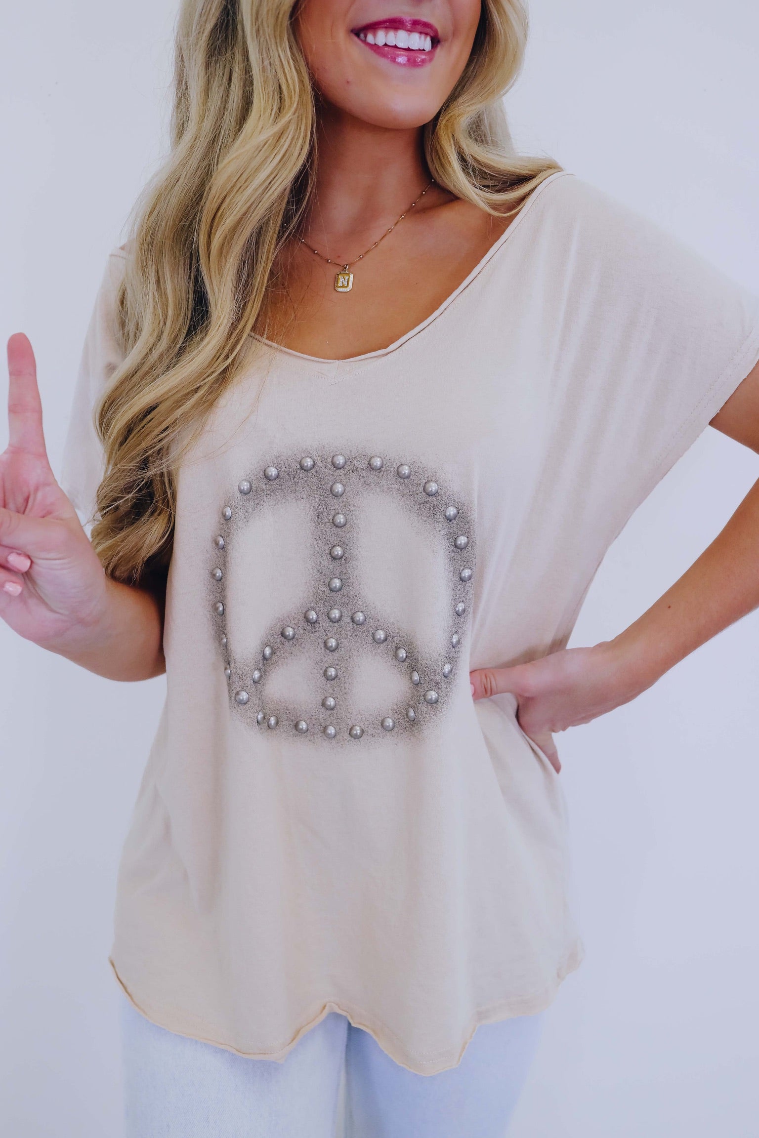 Jordan Peace Sign Studded T-Shirt By POL - 5 Colors