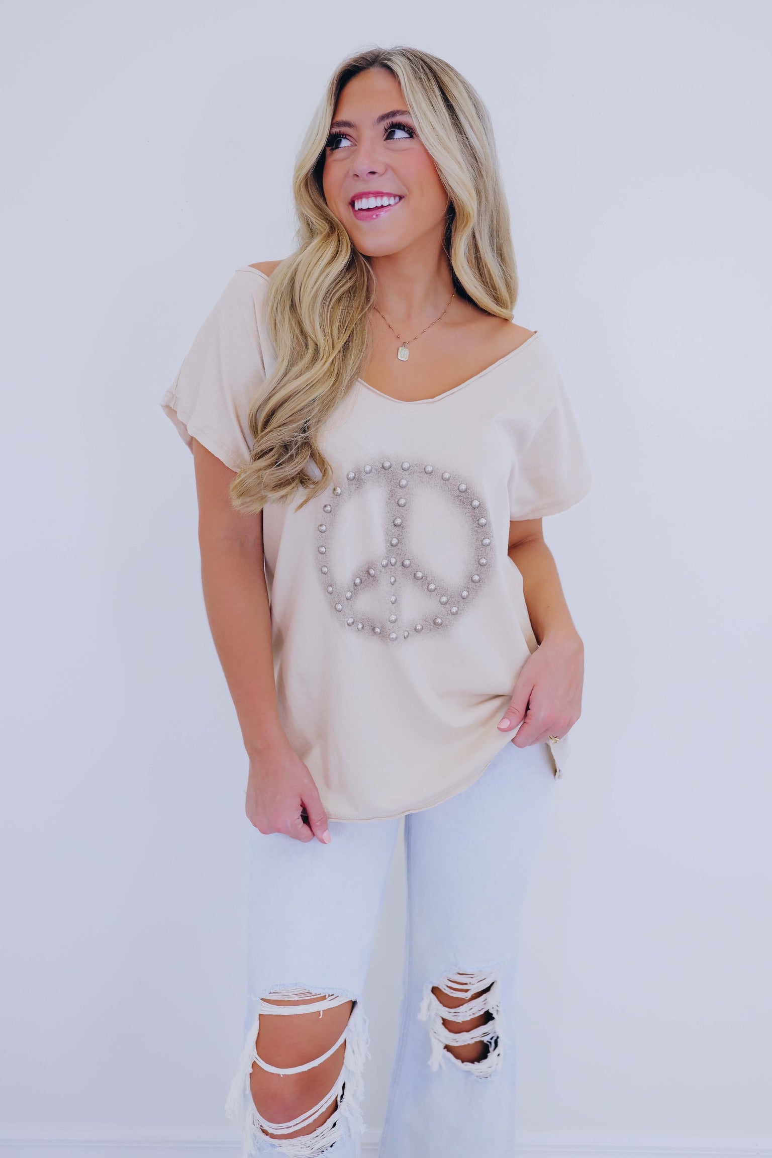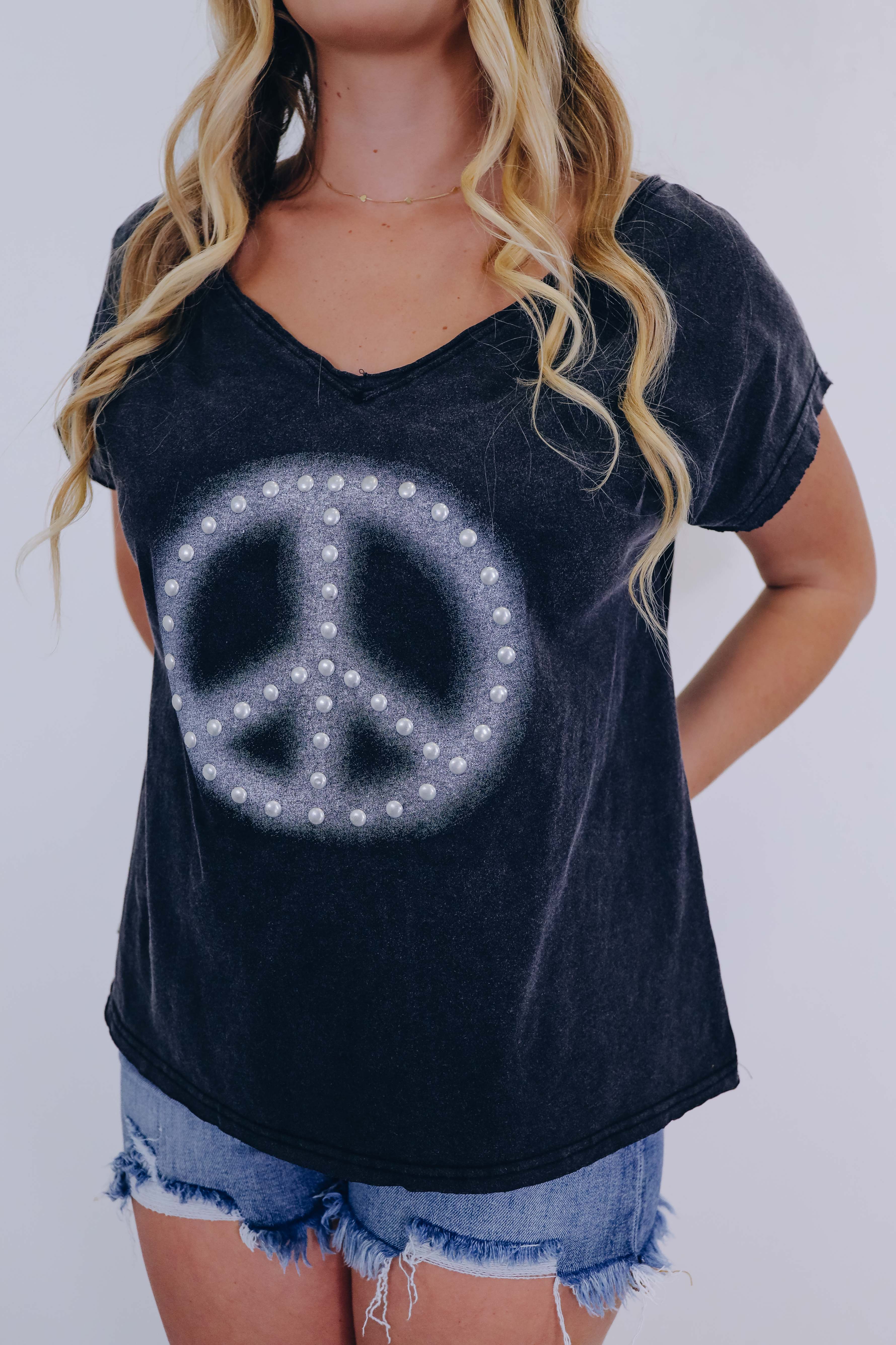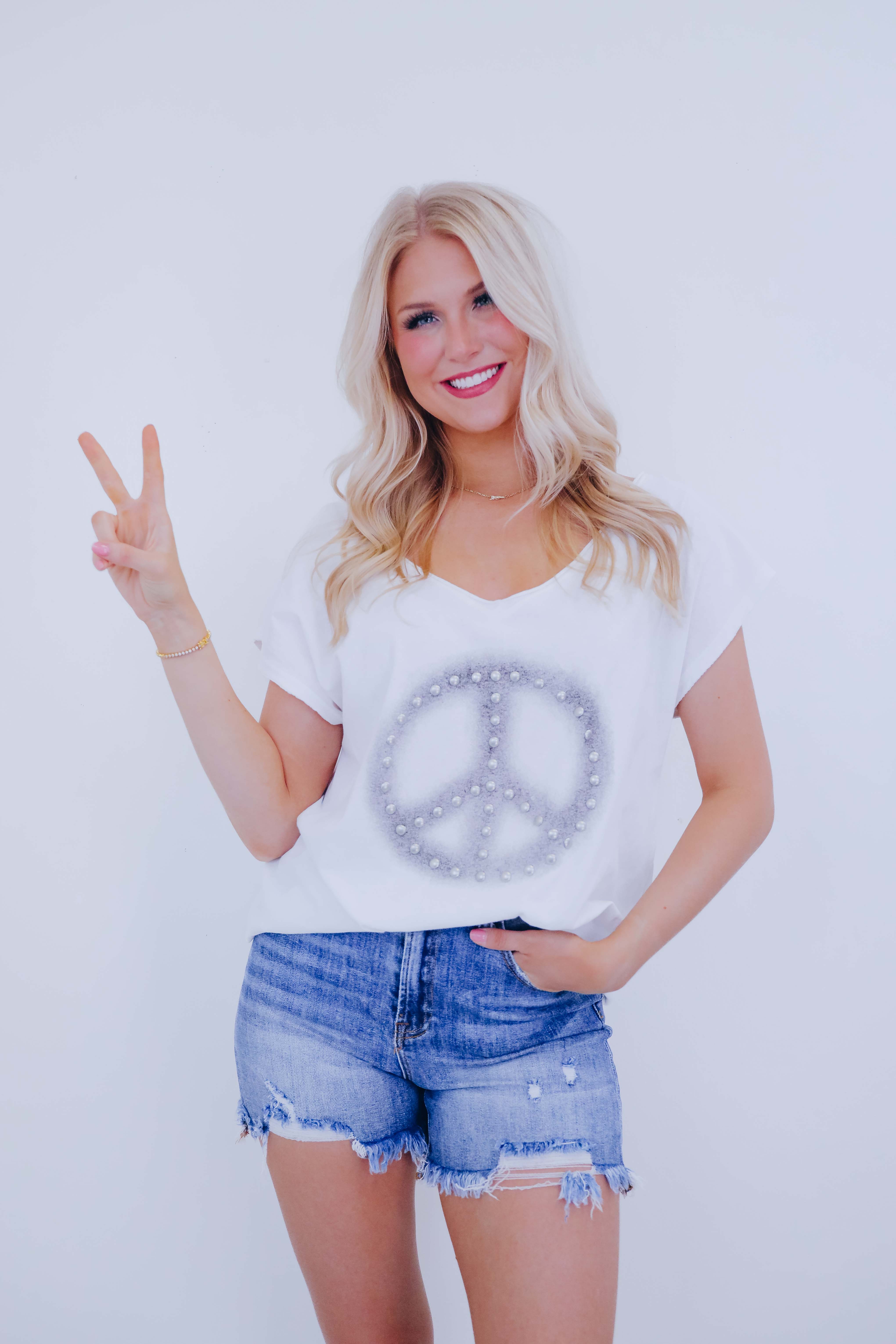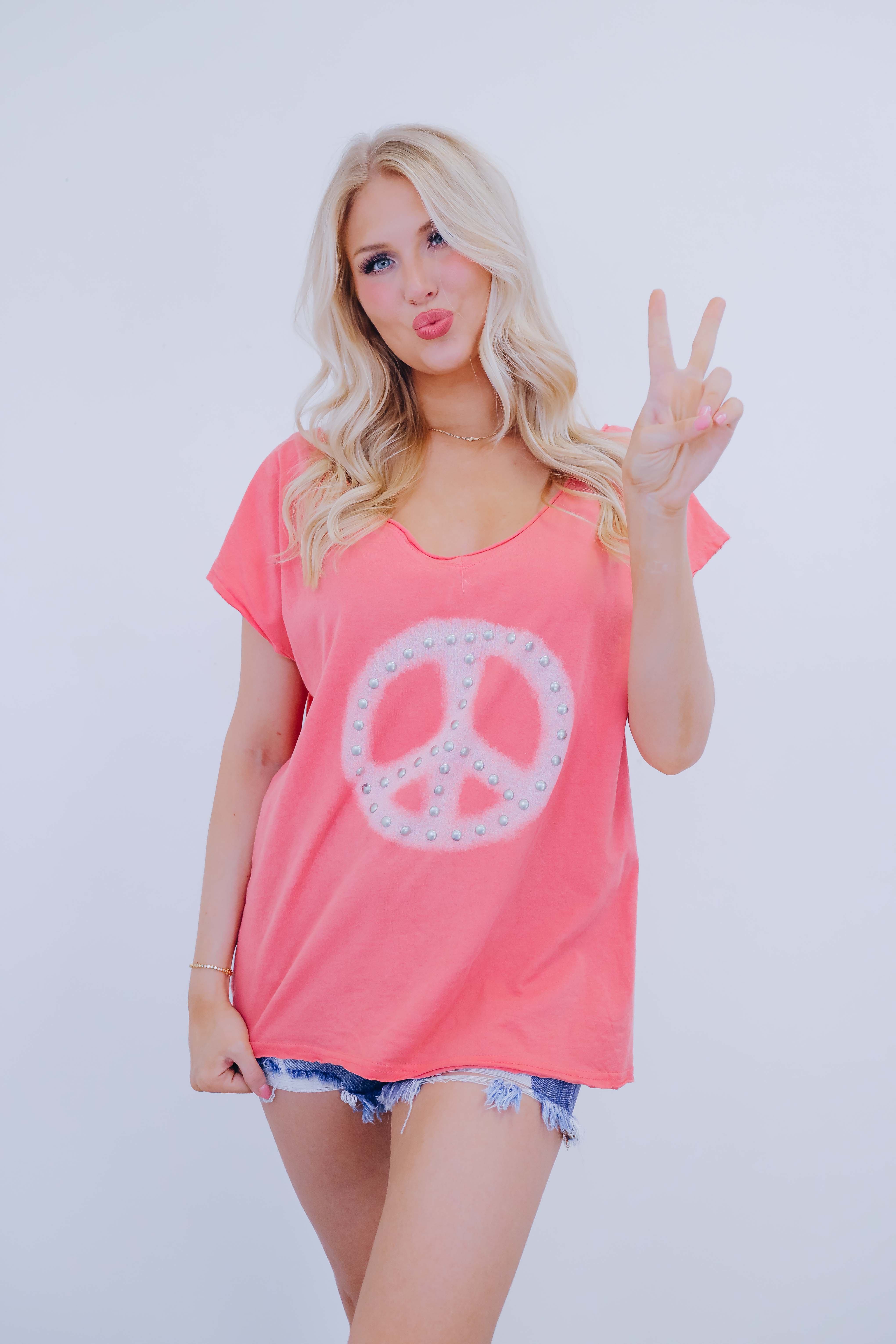 Jordan Peace Sign Studded T-Shirt By POL - 5 Colors