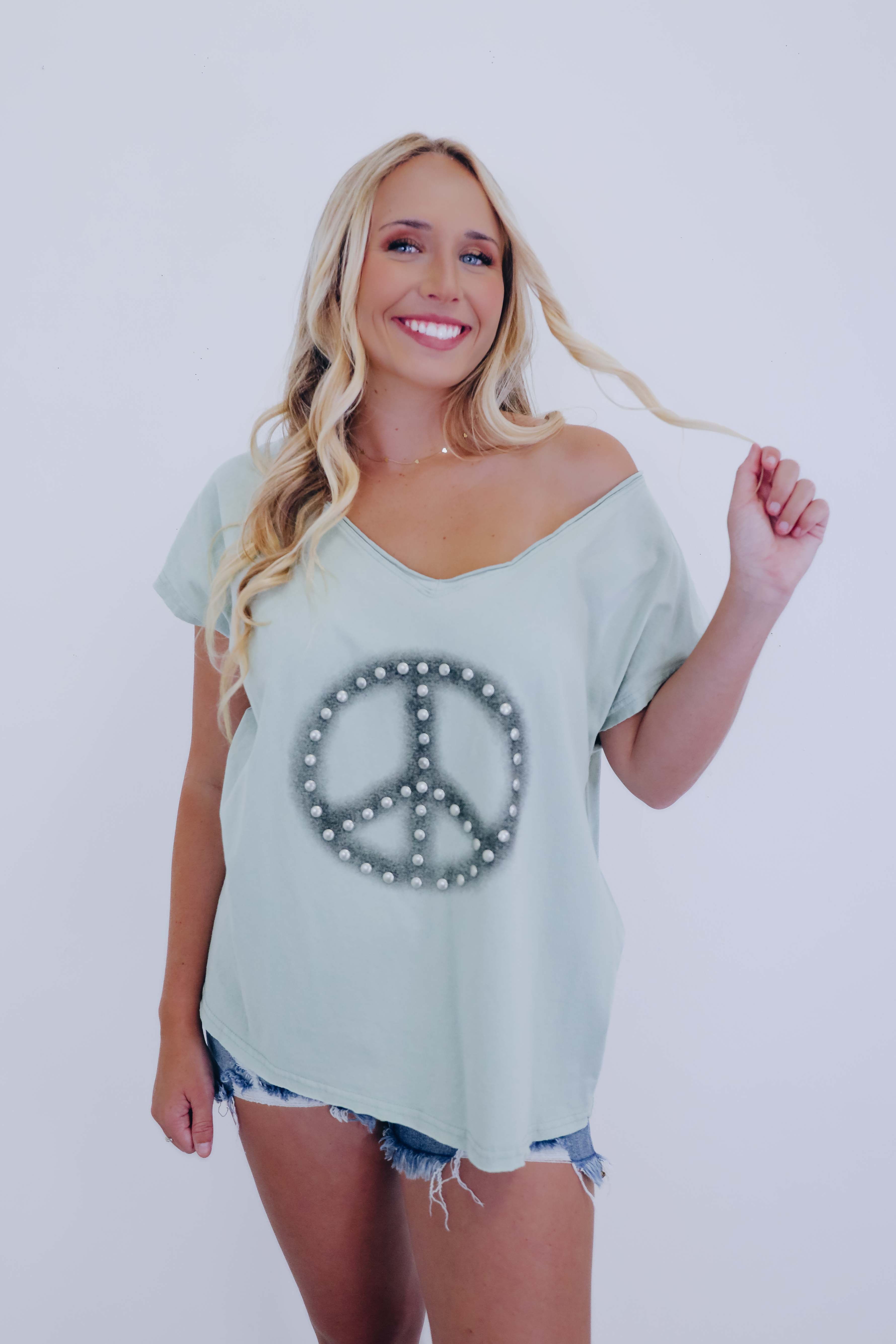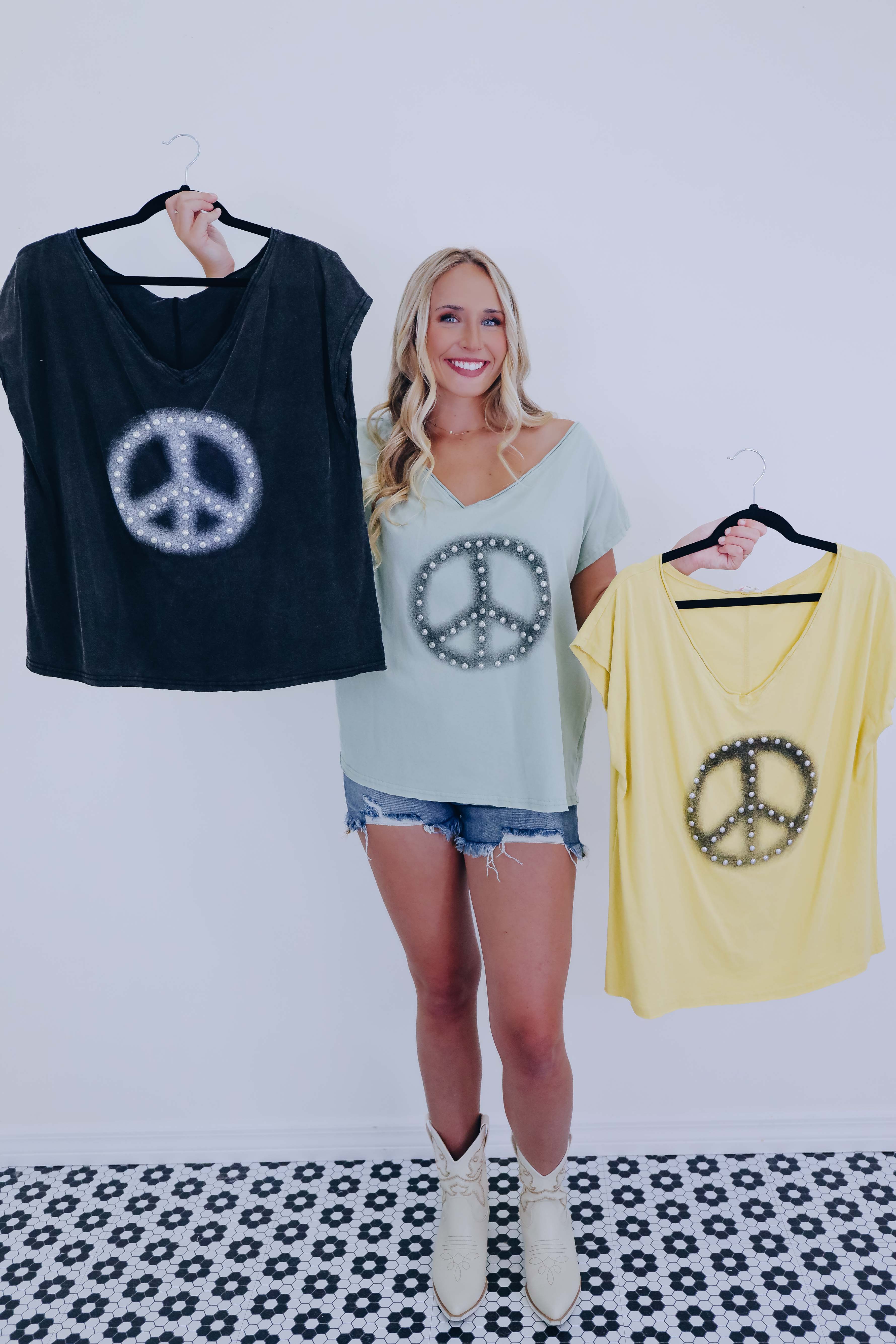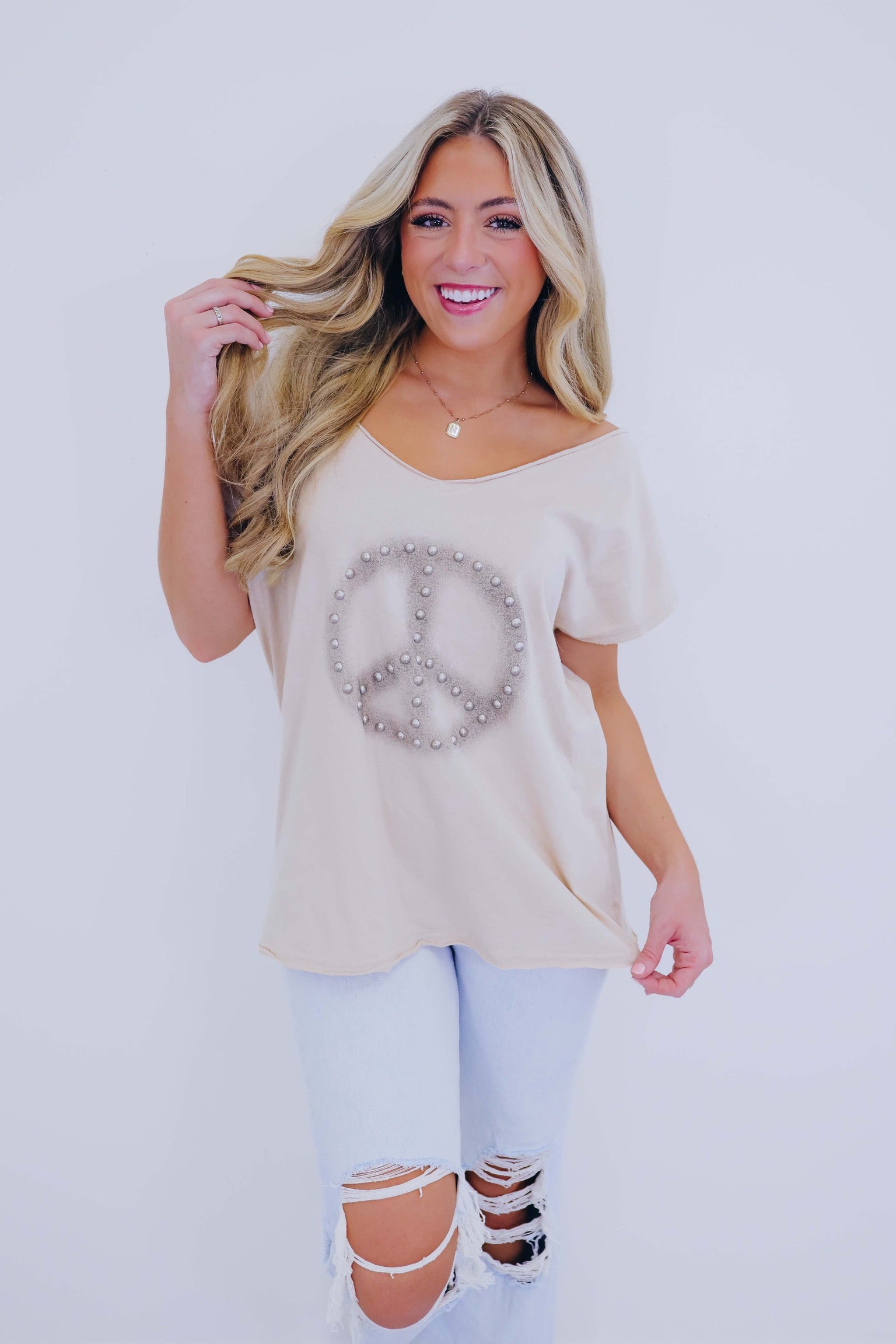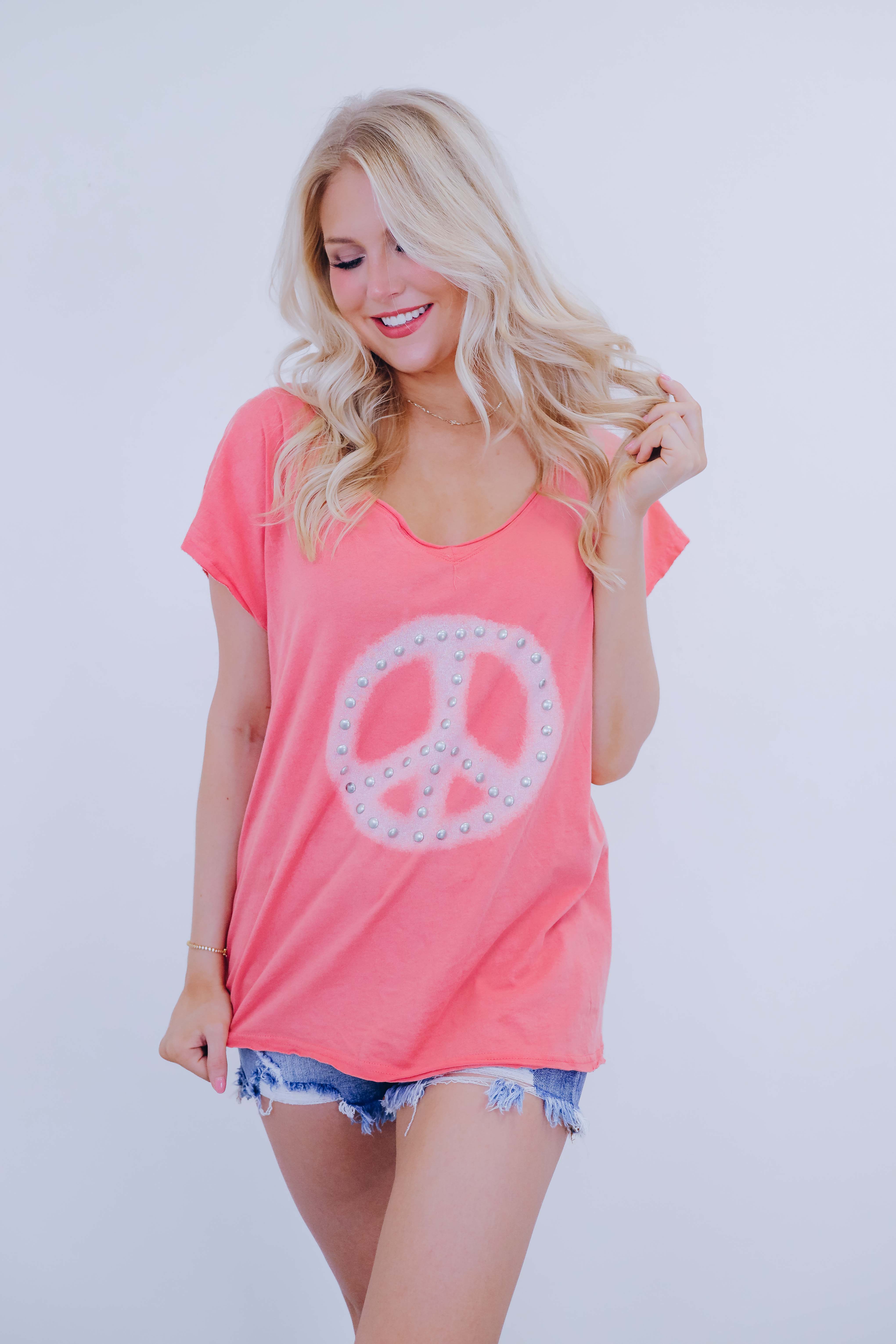 Jordan Peace Sign Studded T-Shirt By POL - 5 Colors