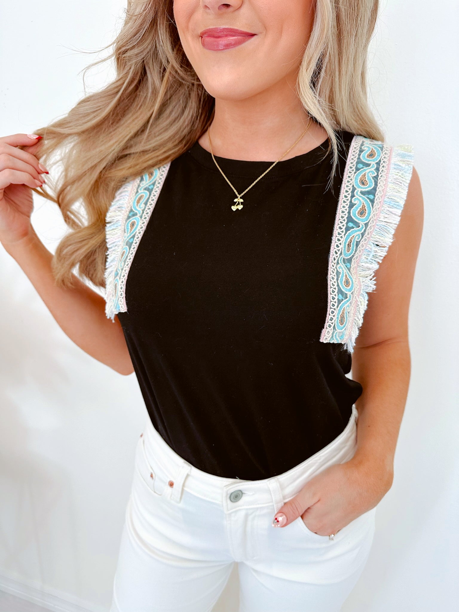 Elise Embroidered Trim Top - Black