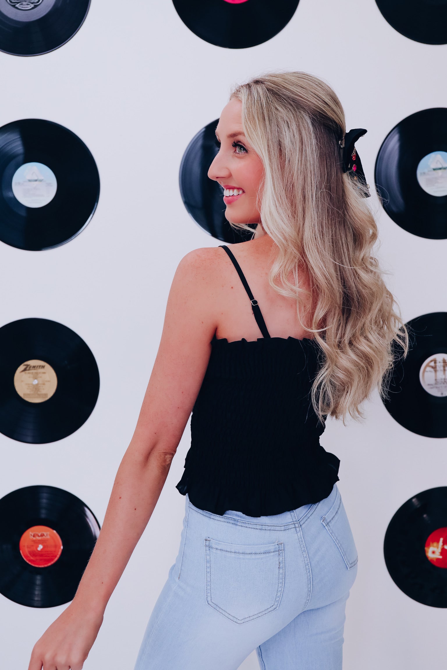 Tahari Smocked Crop Top - Black