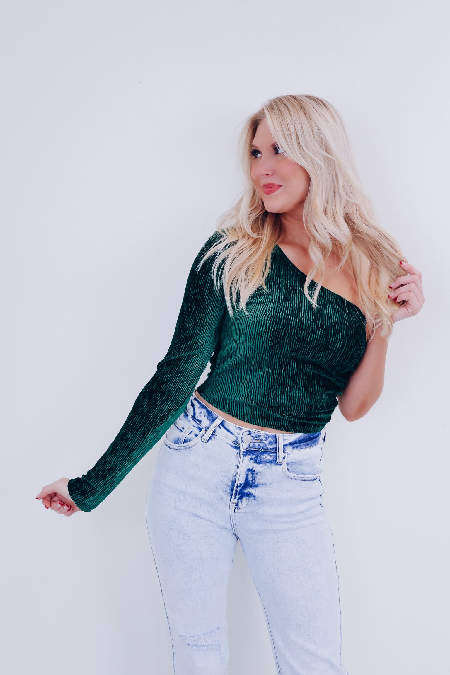 Valiant Velvety One Shoulder Top- Green