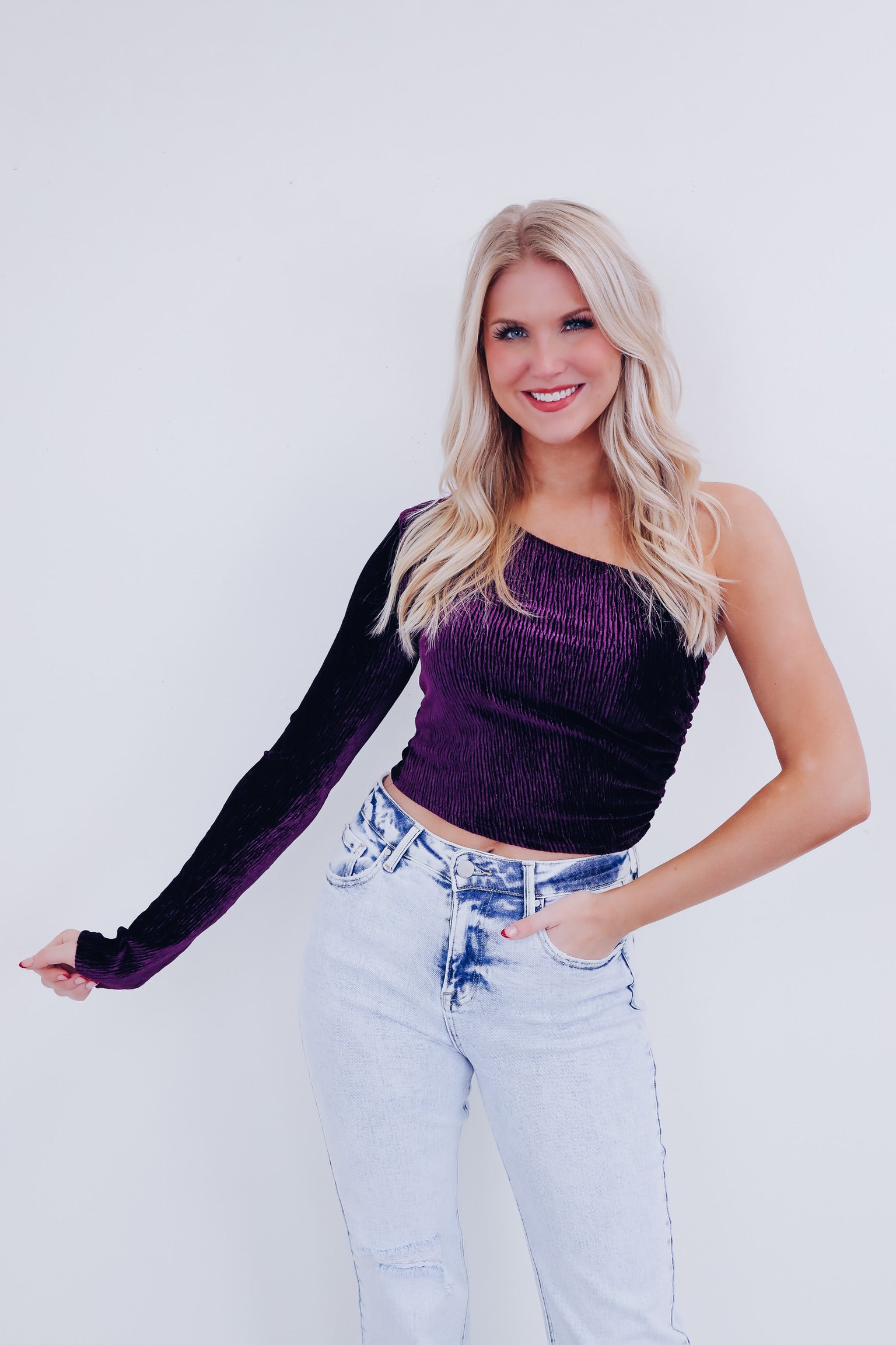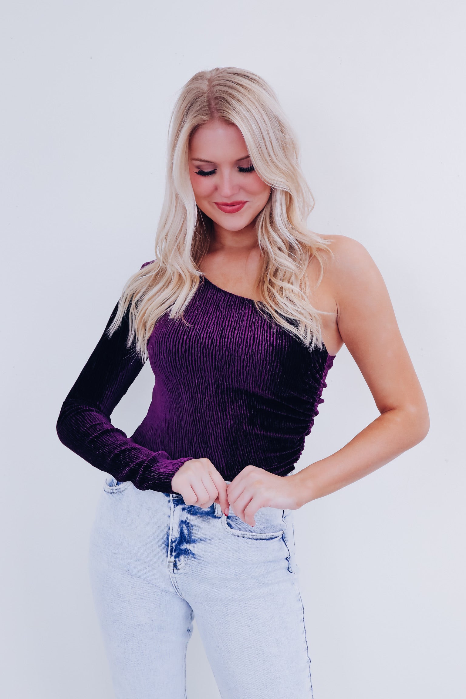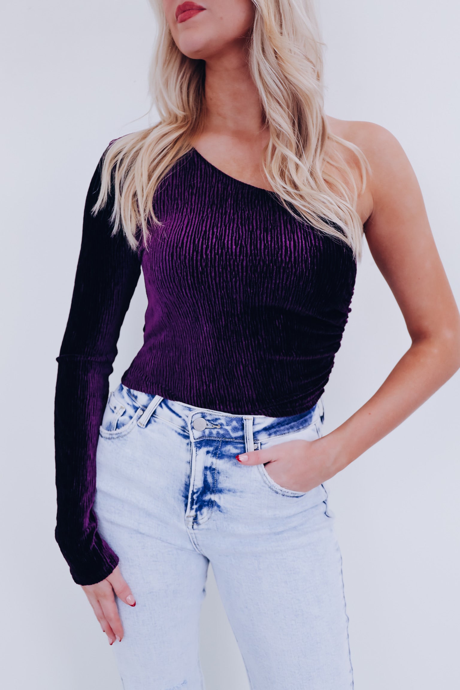 Valiant Velvety One Shoulder Top - Purple