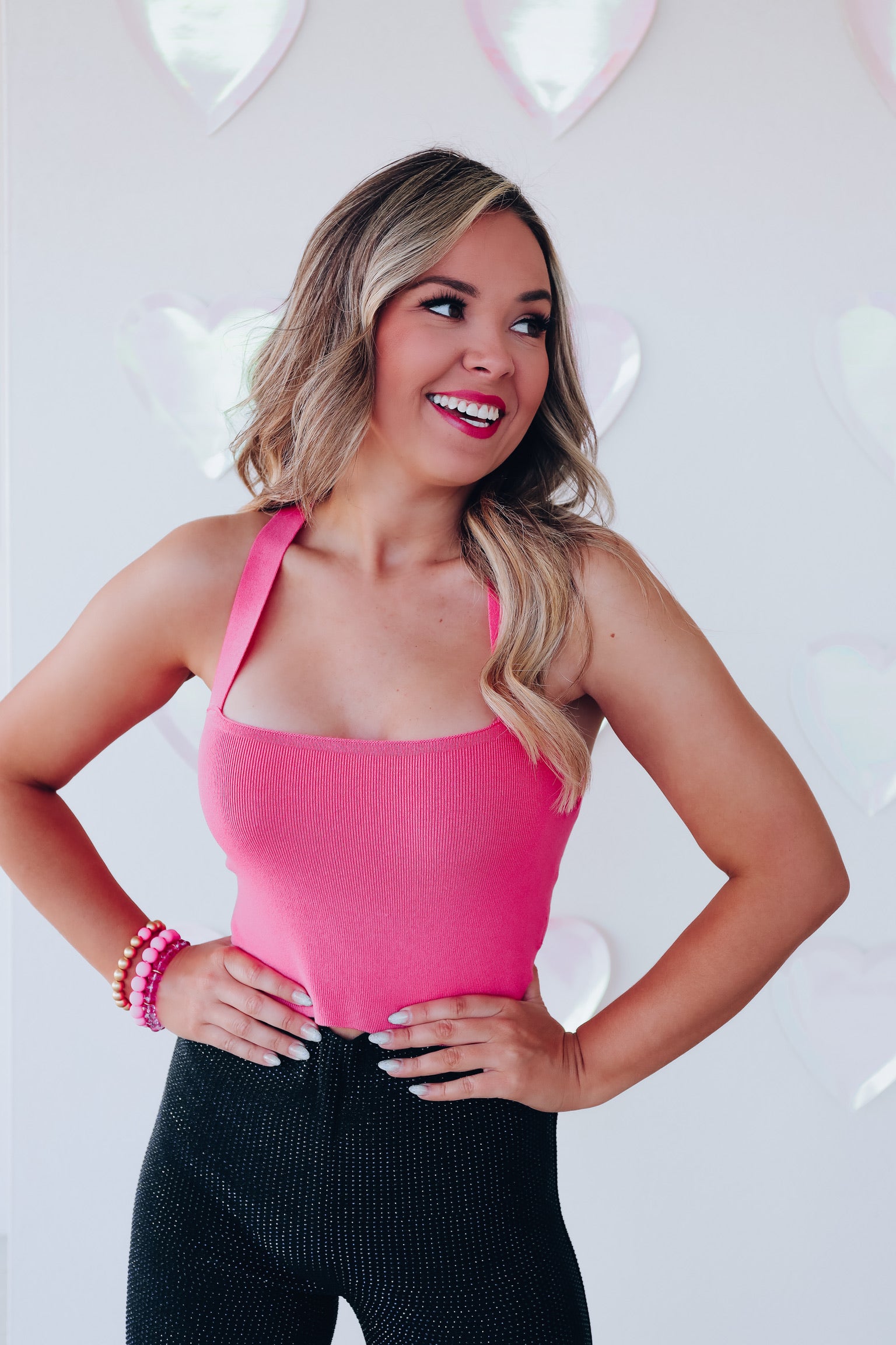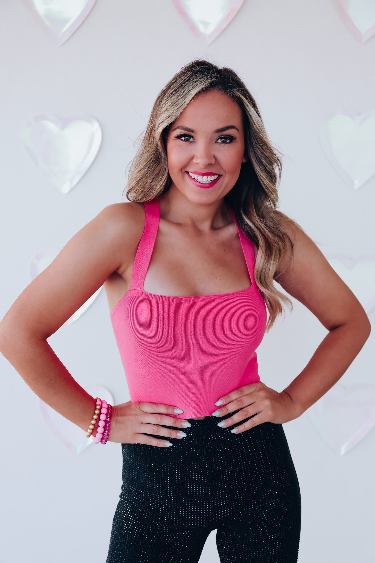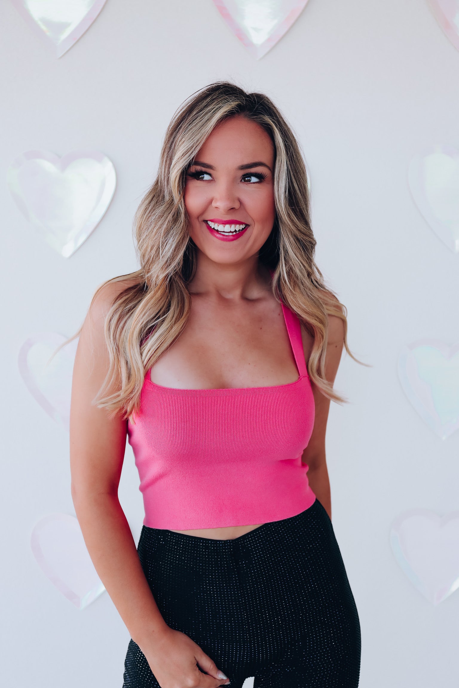 Cross Back Cropped Tank Top - Pink