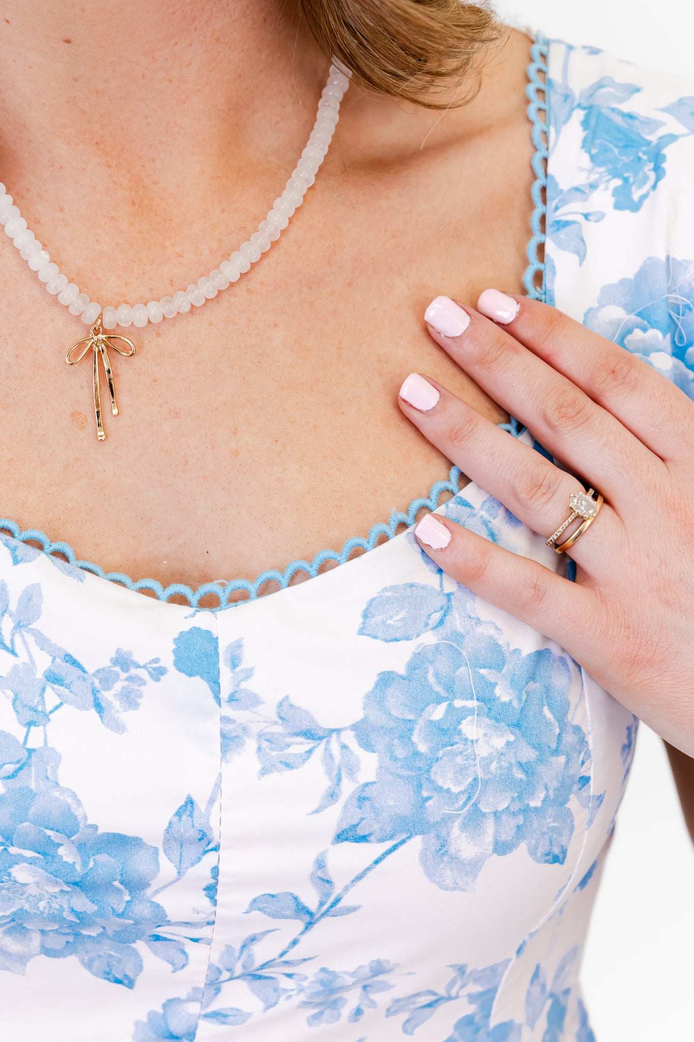 - Soft blue floral print