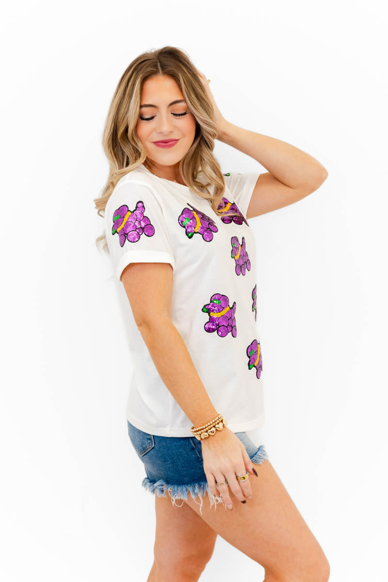 - Bring the sparkle to the celebration with the Mardi Paws Sequin Tee. This fun, festive tee features shimmering grape embellishments inspired by classic Mardi Gras colors for the perfect pop of glam. Made with a soft, comfortable feel and an easy, relaxed fit, it’s perfect for parades, parties, or everyday wear when you want a little extra flair.